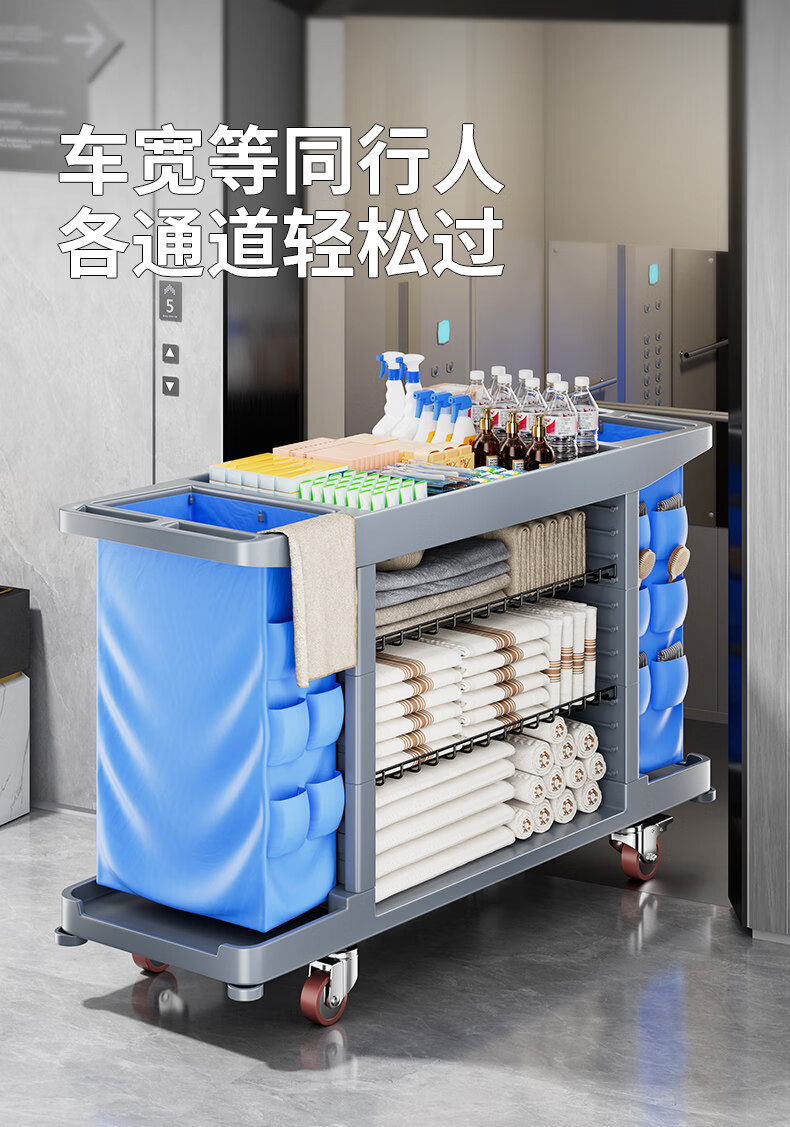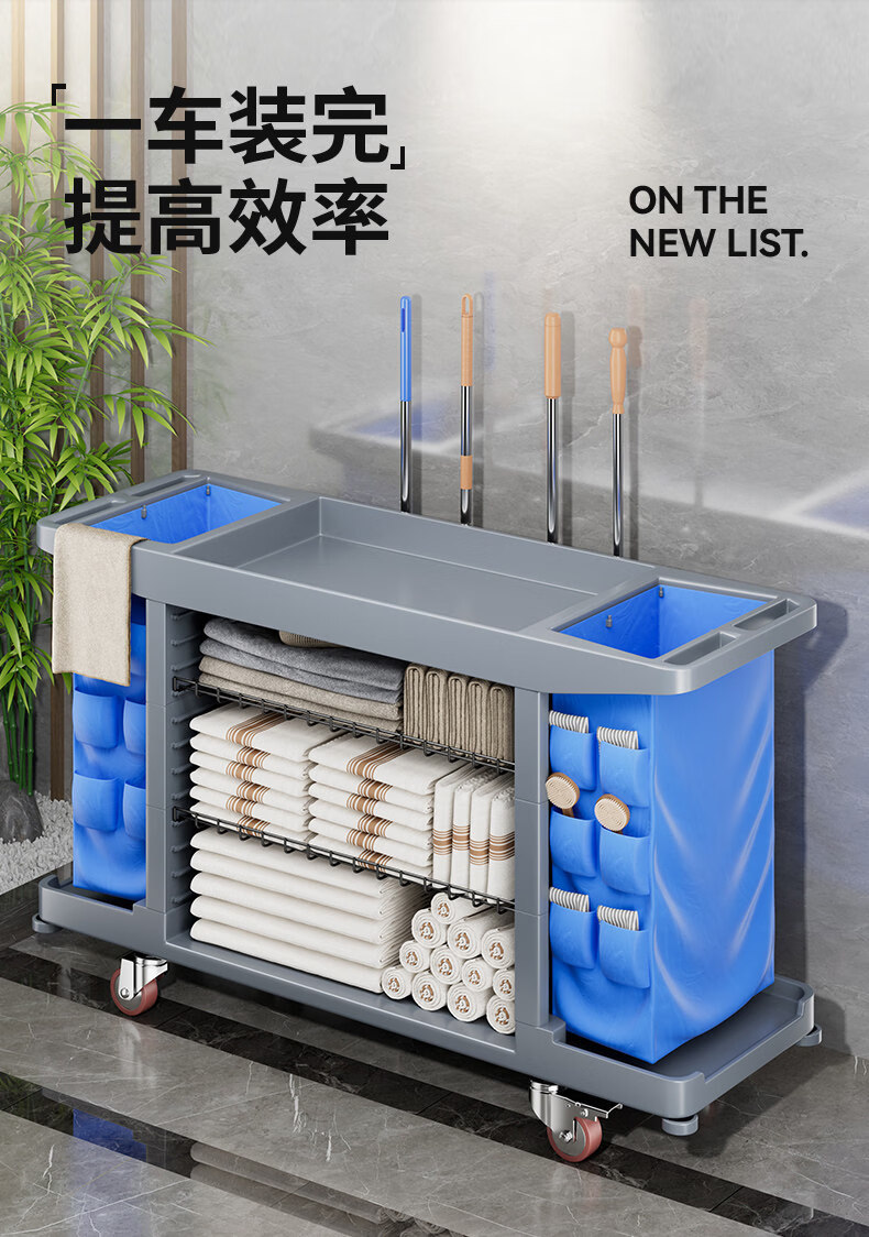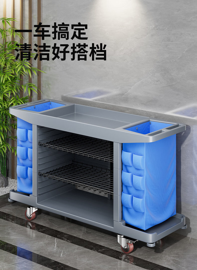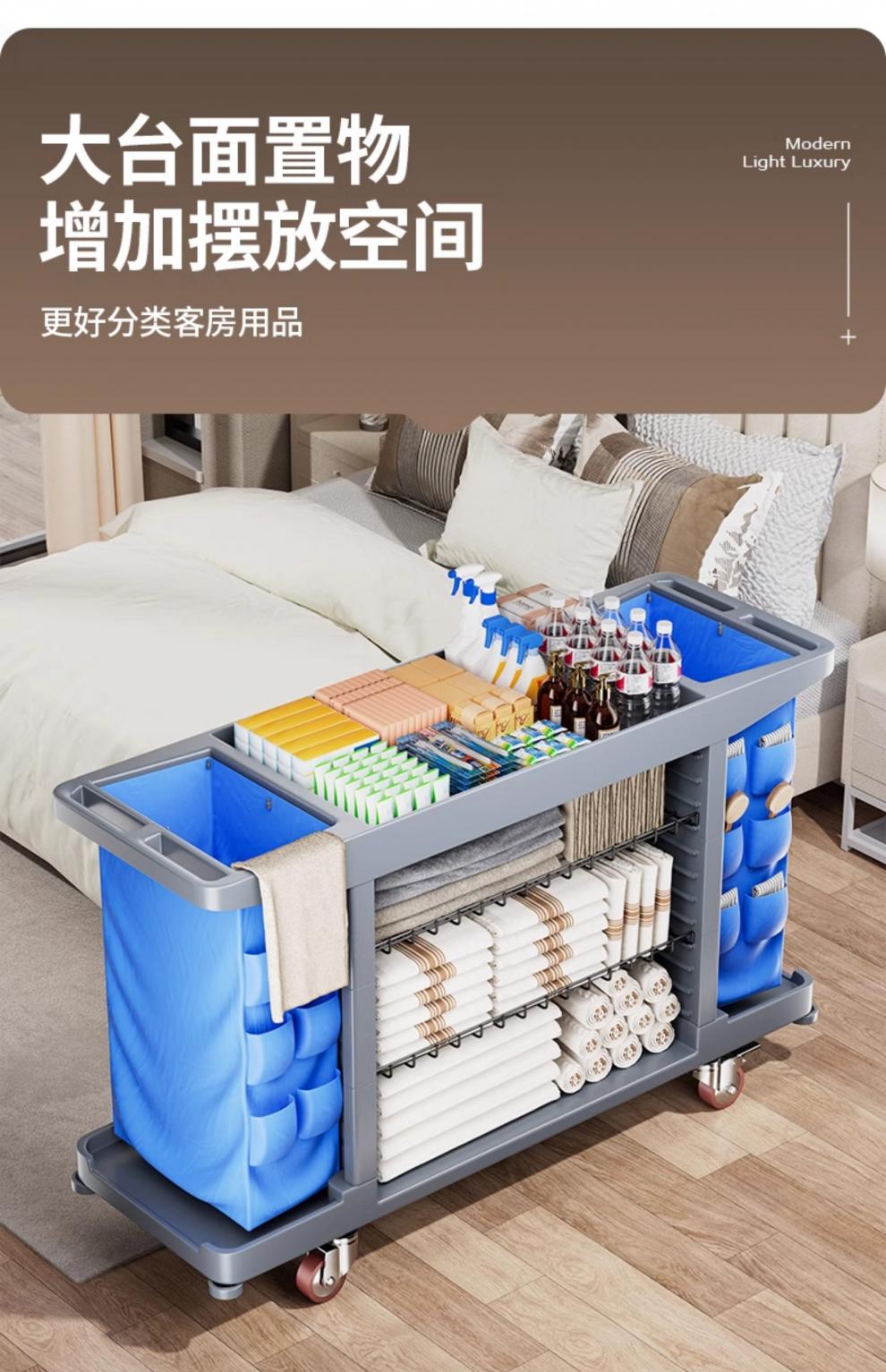Hotel linen cart, guest room special work cart, hotel room cleaning, multi-functional cleaning trolley, flagship three-layer, bilateral-wheel