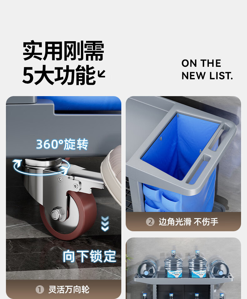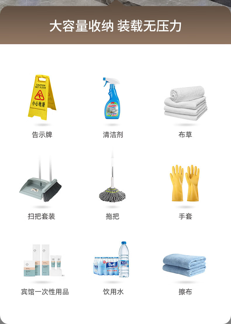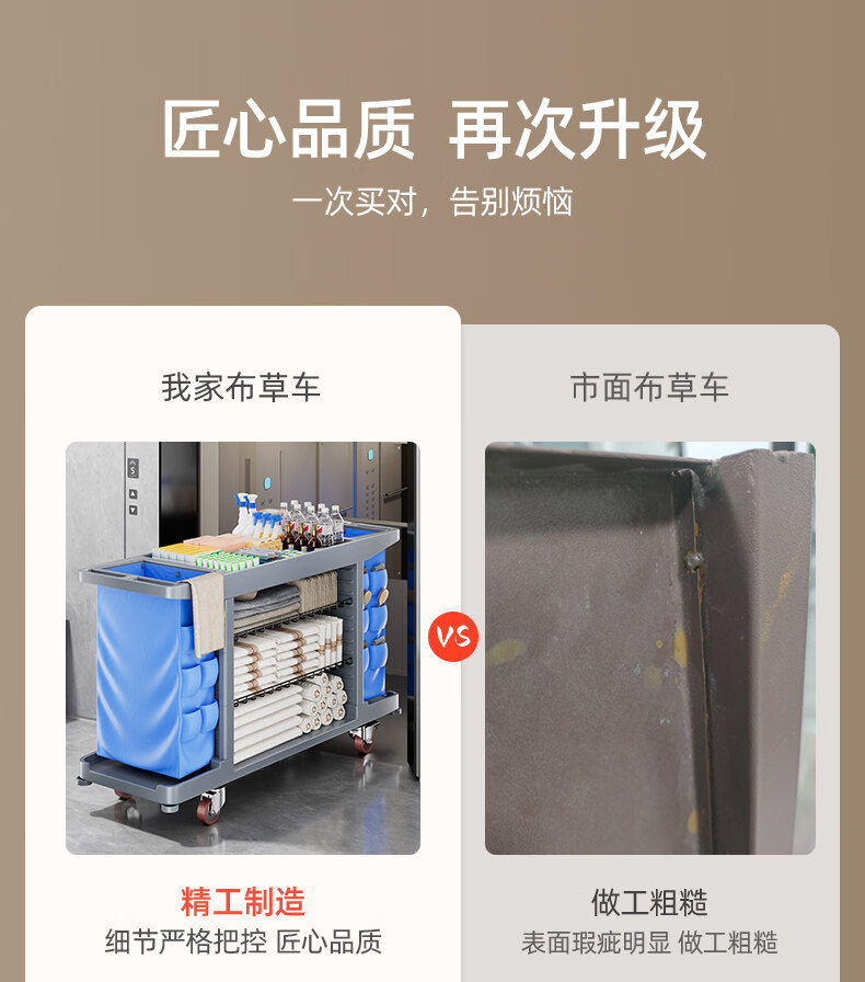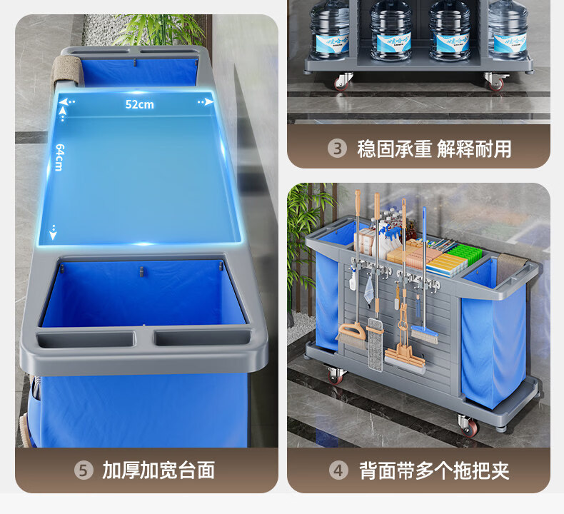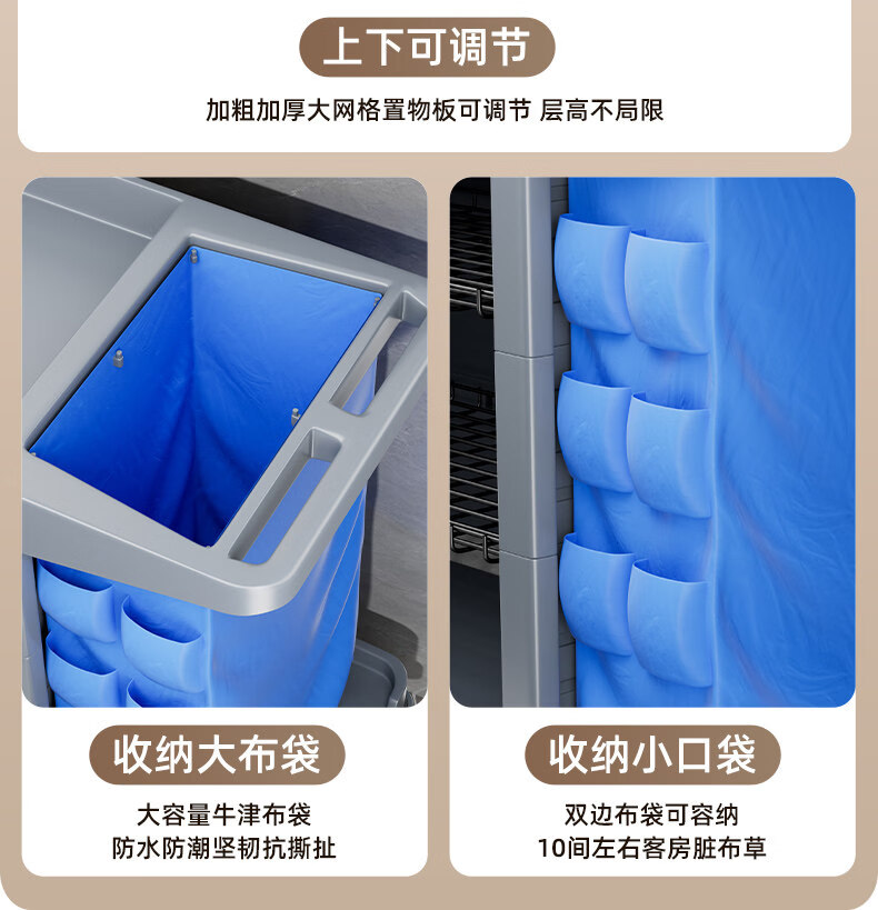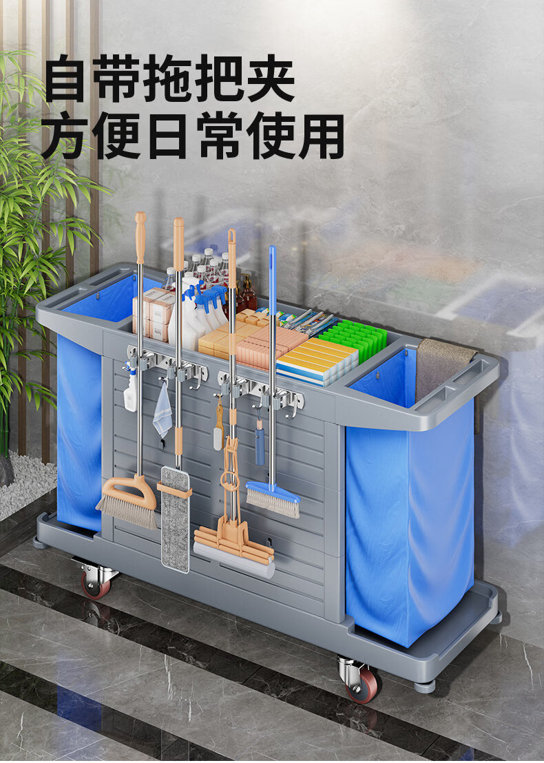 Hotel linen cart, guest room special work cart, hotel room cleaning, multi-functional cleaning trolley, flagship three-layer, bilateral-wheel