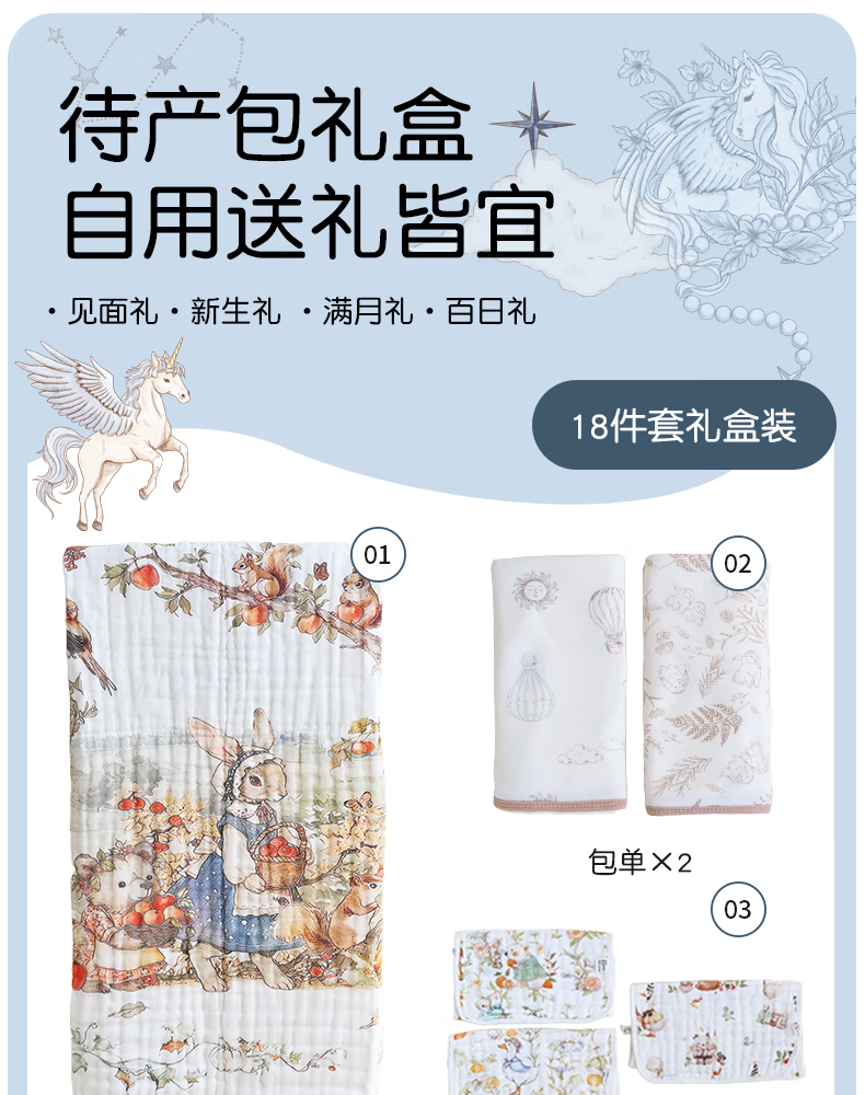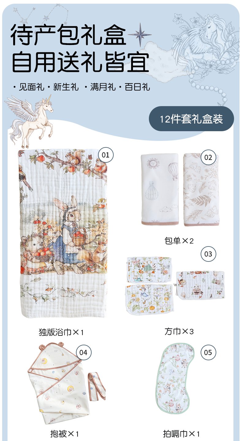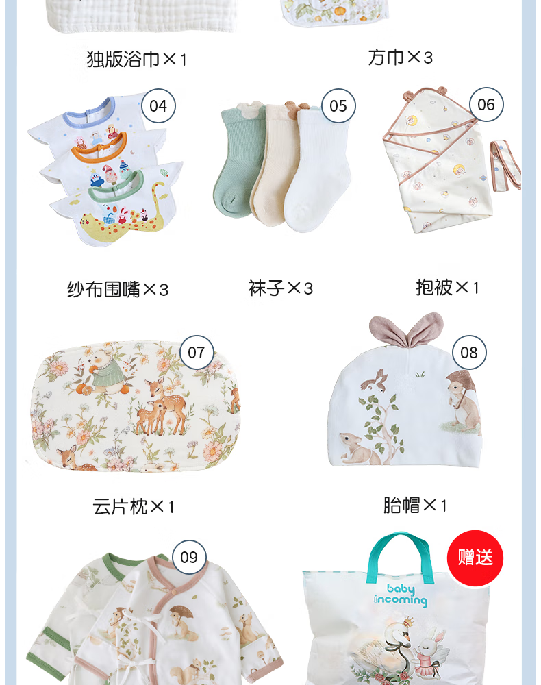 Babyincoming newborn baby gift box maternity bag baby fetal cap bag single quilt bath towel square towel clothes socks set gift maternity bag gift box delivery room cotton product 18-piece set