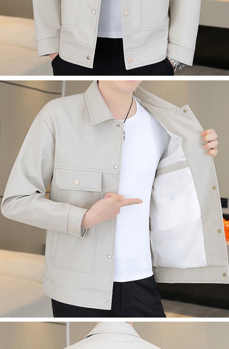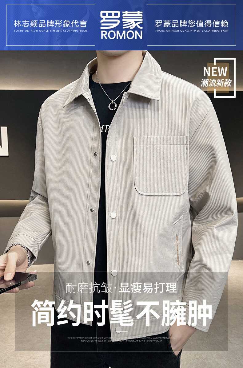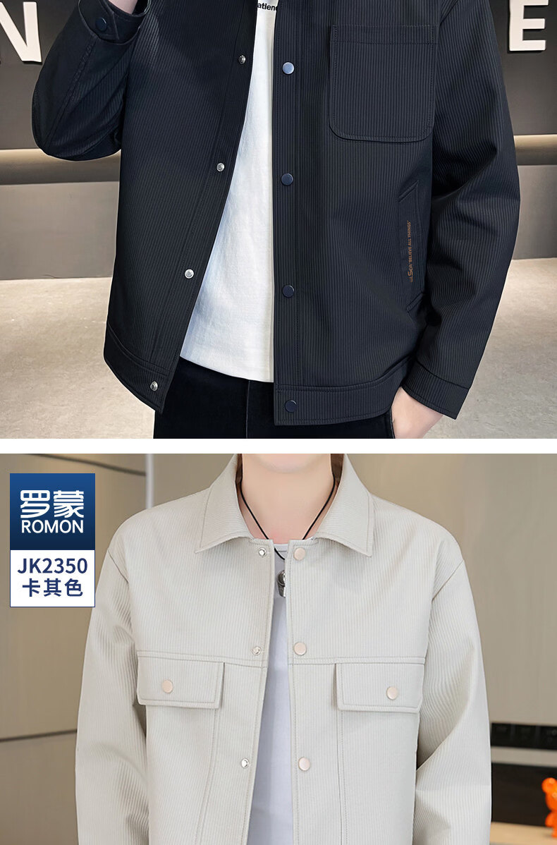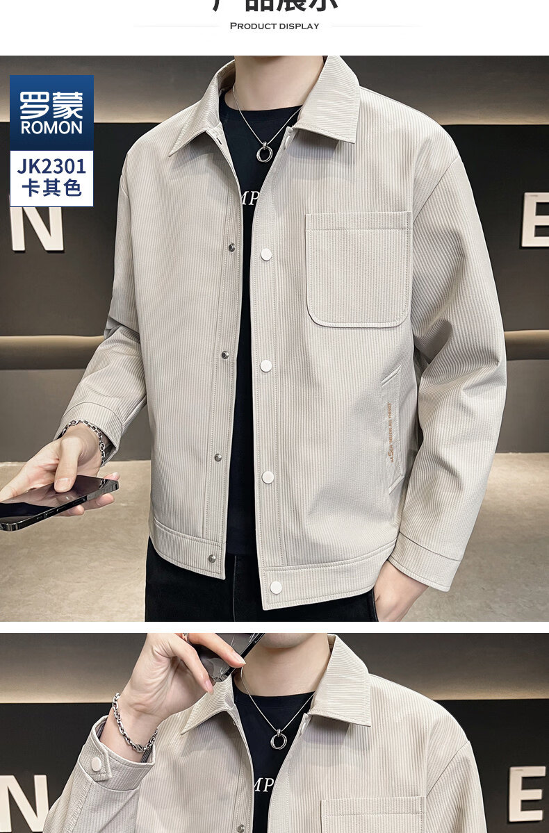 ROMON jacket men's work jacket men's spring 2025 new spring and autumn men's casual lapel top khaki 2301R cotton style XL