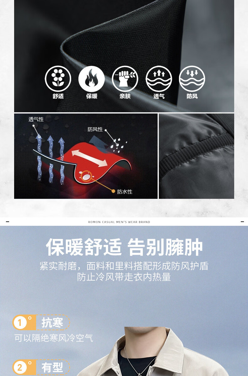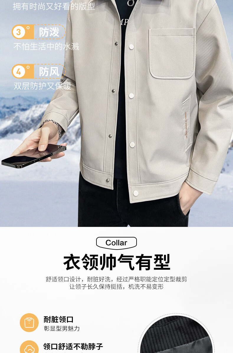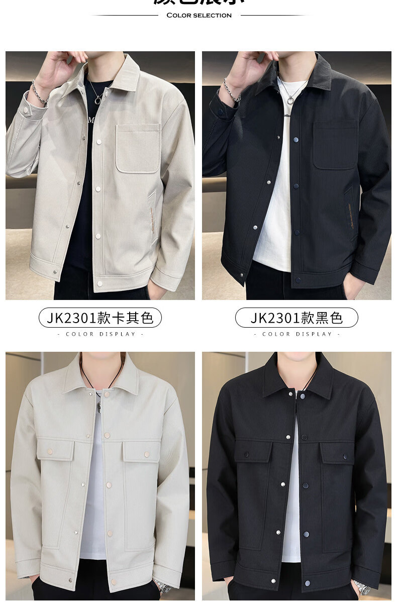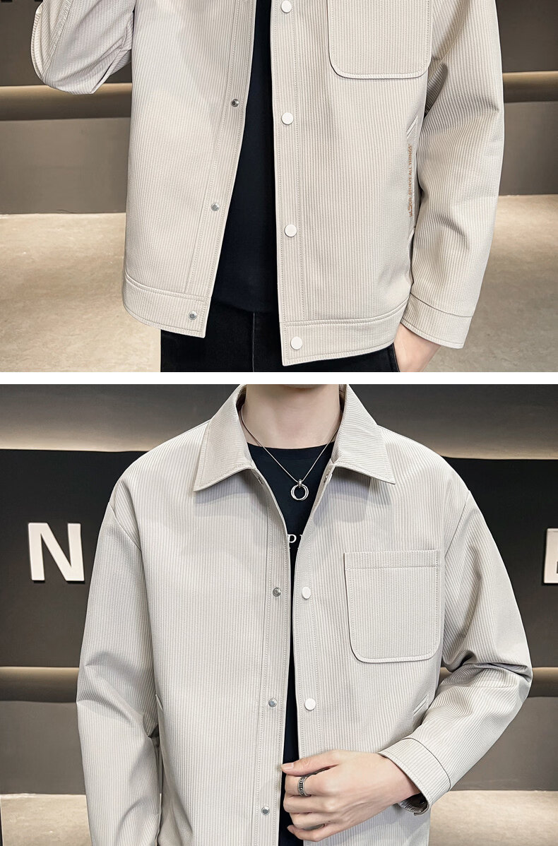 ROMON jacket men's work jacket men's spring 2025 new spring and autumn men's casual lapel top khaki 2301R cotton style XL