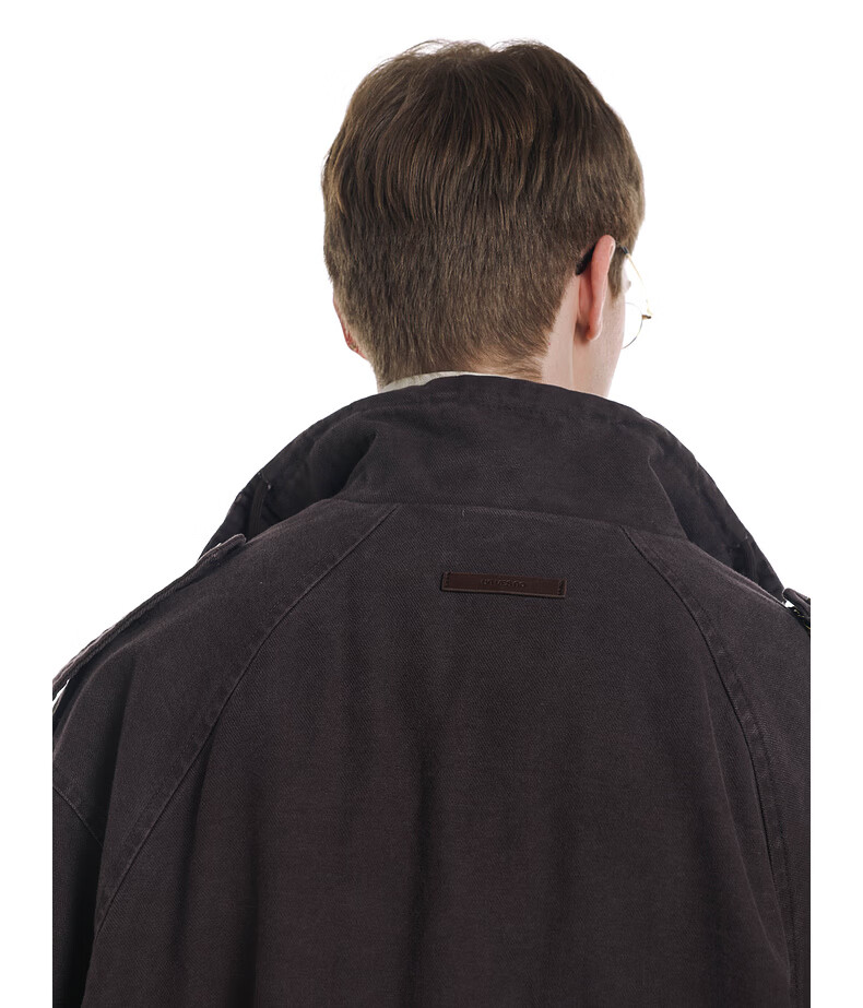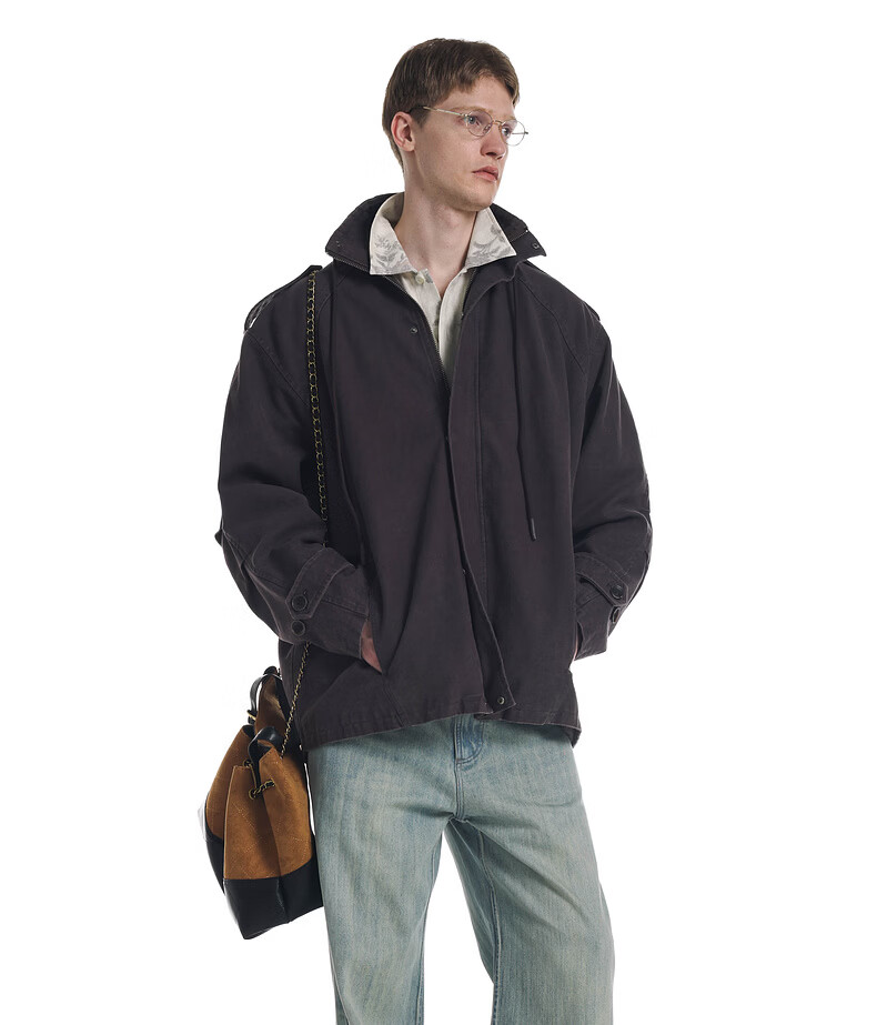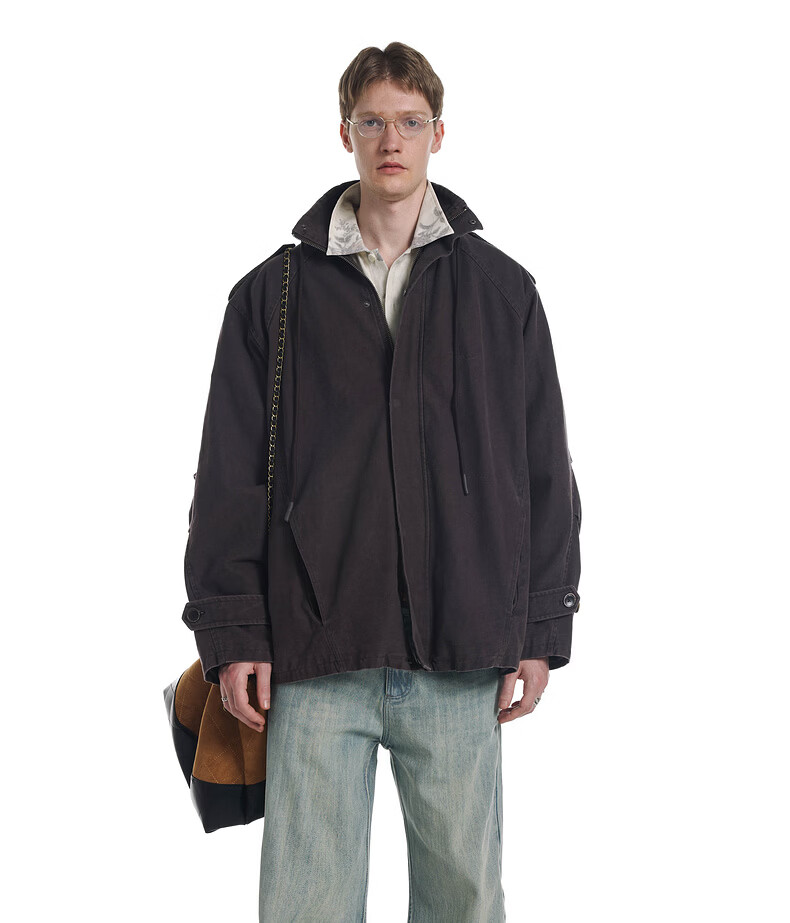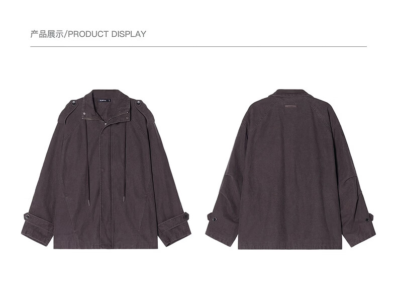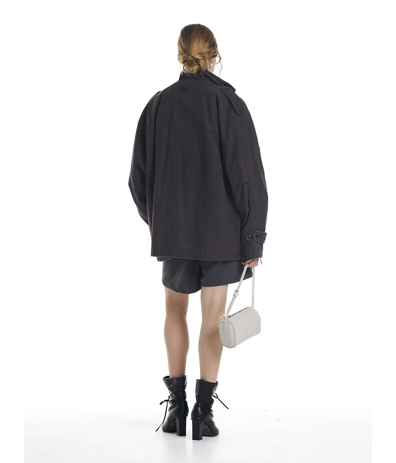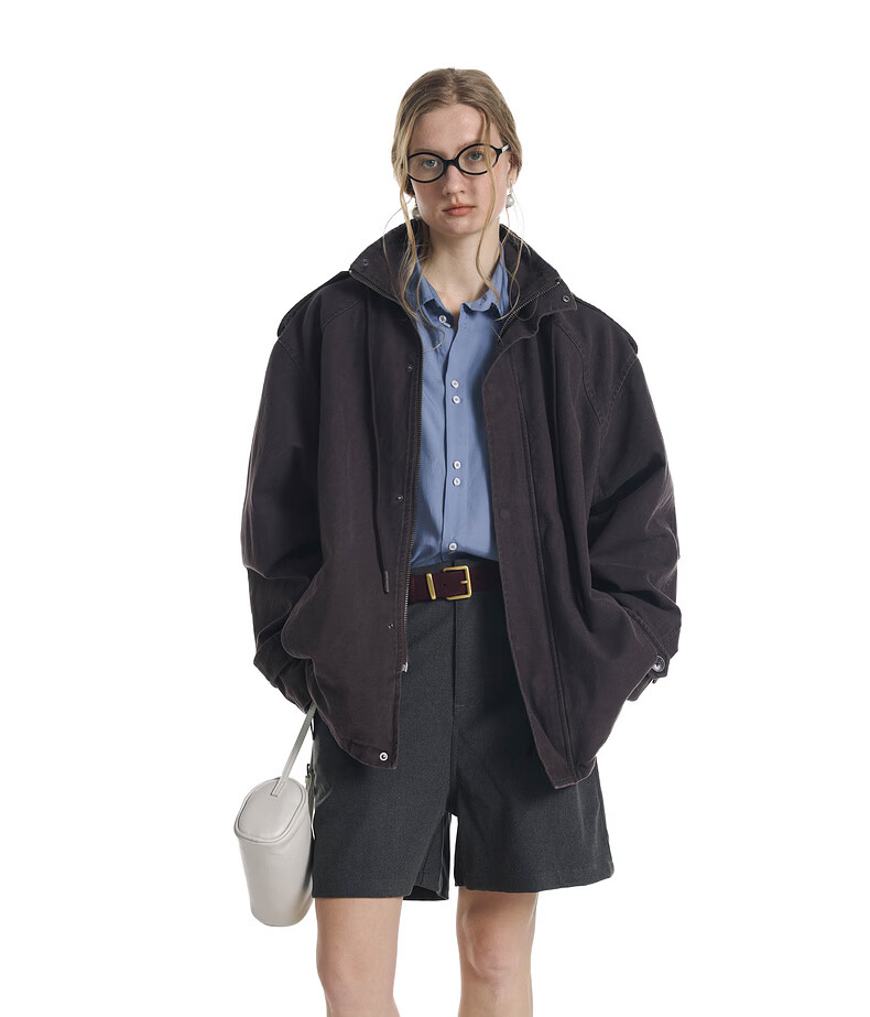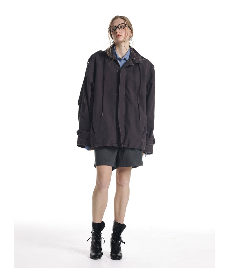 UNVESNO (UN) Gloxinia Purple Retro Mist Washed Cotton Distressed Stand Collar Design Silhouette Jacket Gloxinia Purple S