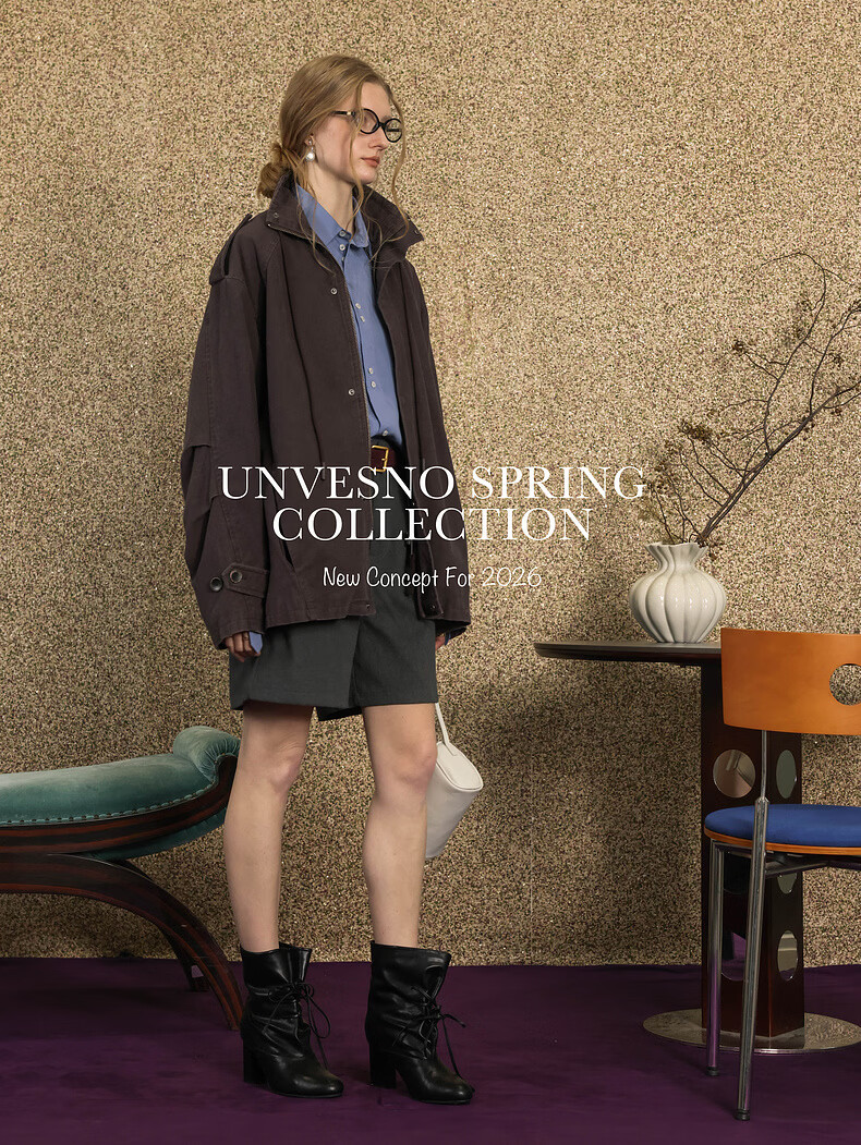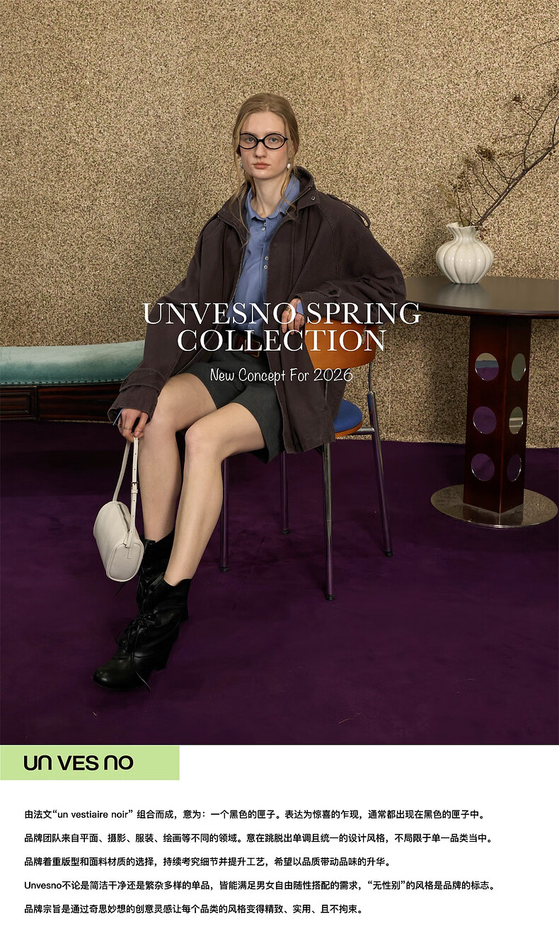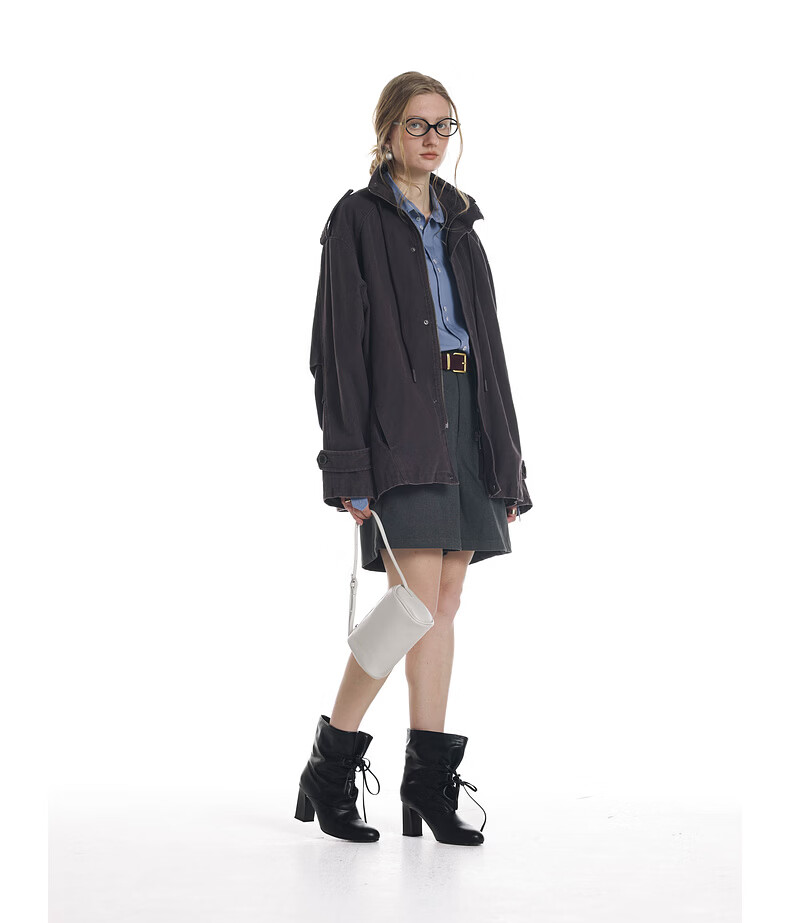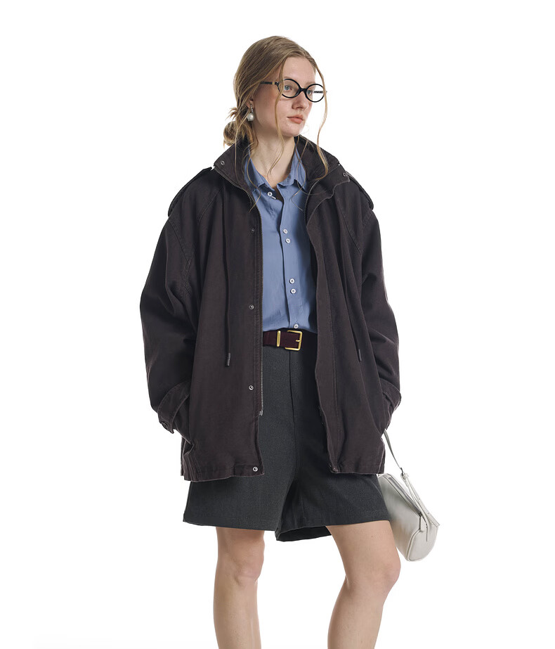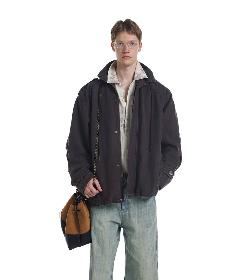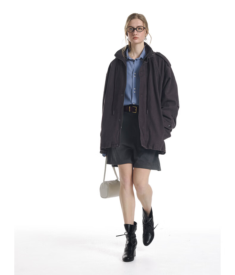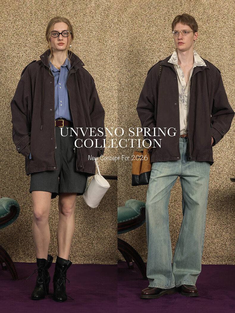 UNVESNO (UN) Gloxinia Purple Retro Mist Washed Cotton Distressed Stand Collar Design Silhouette Jacket Gloxinia Purple S