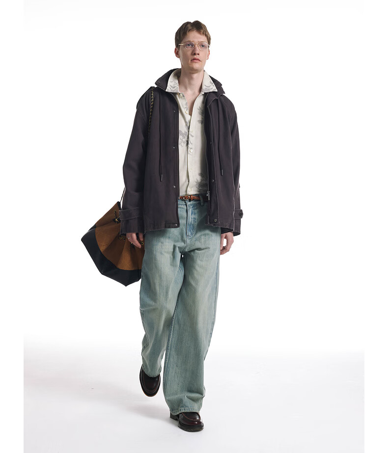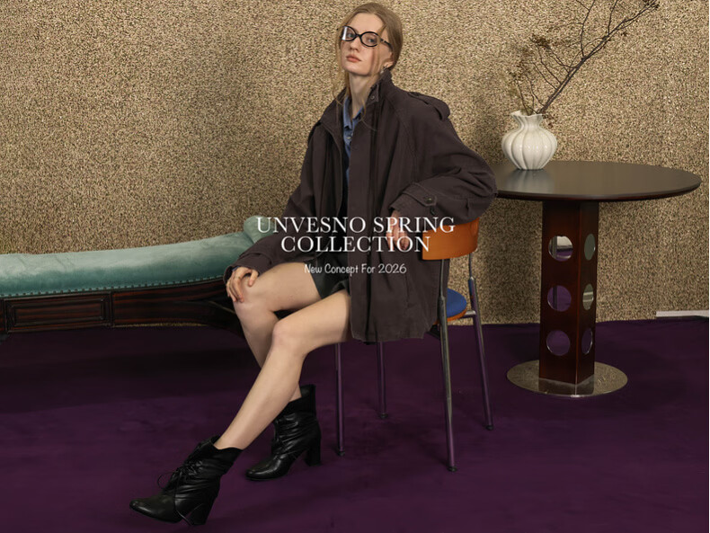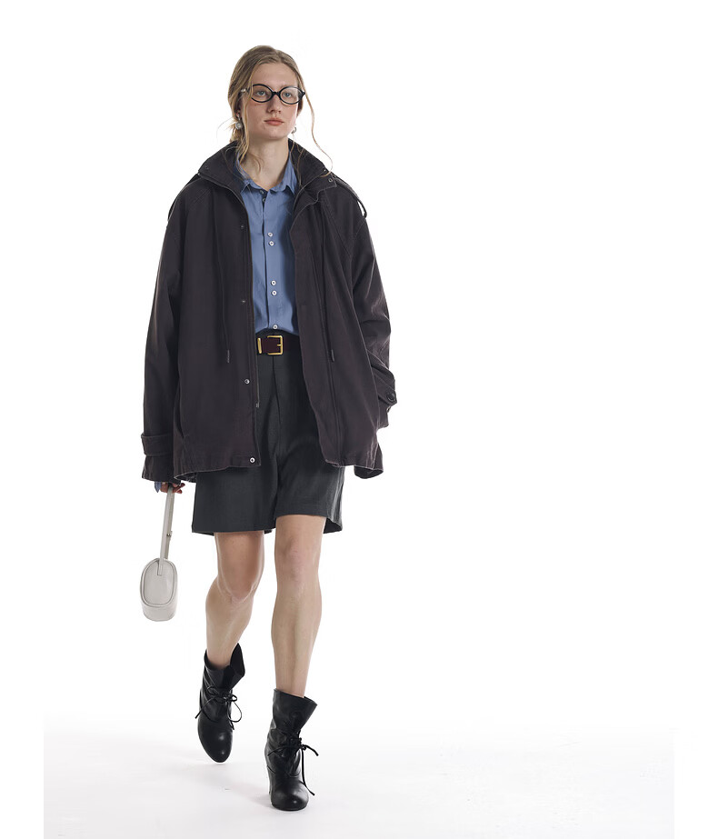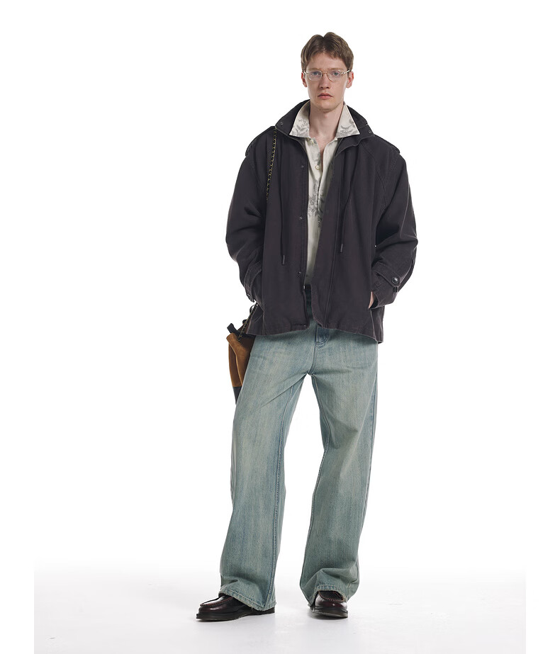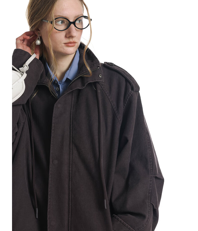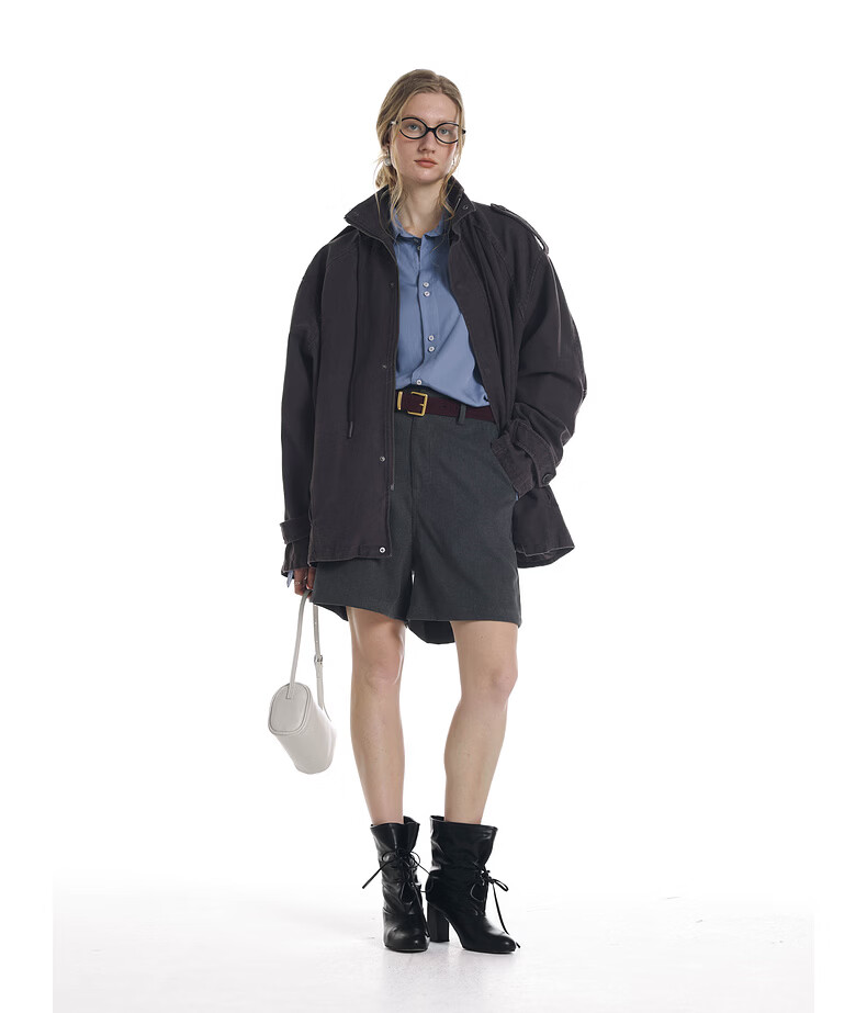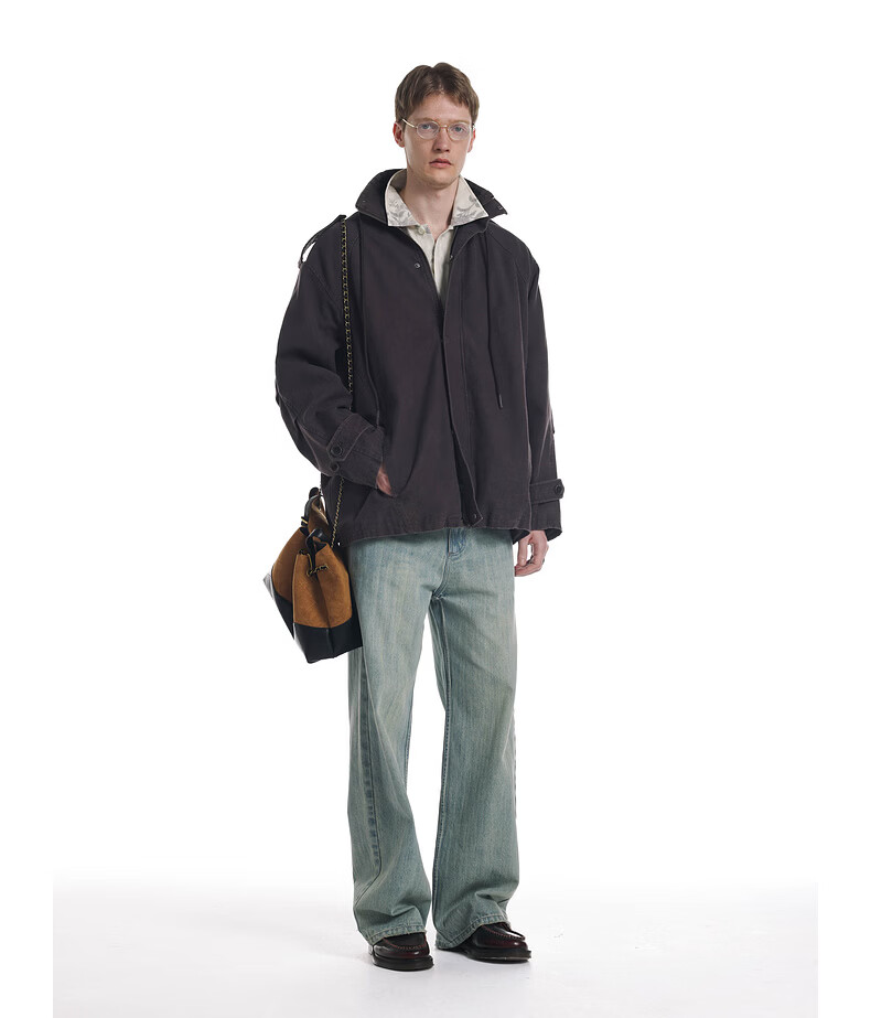 UNVESNO (UN) Gloxinia Purple Retro Mist Washed Cotton Distressed Stand Collar Design Silhouette Jacket Gloxinia Purple S