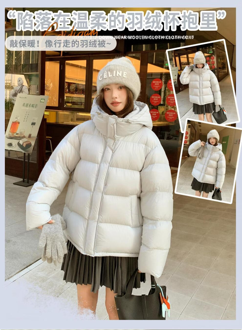 Bolison international first-line brand 95 white duck down jacket women's short 2025 new small thickened cloud puff light blue XS under 100 pounds