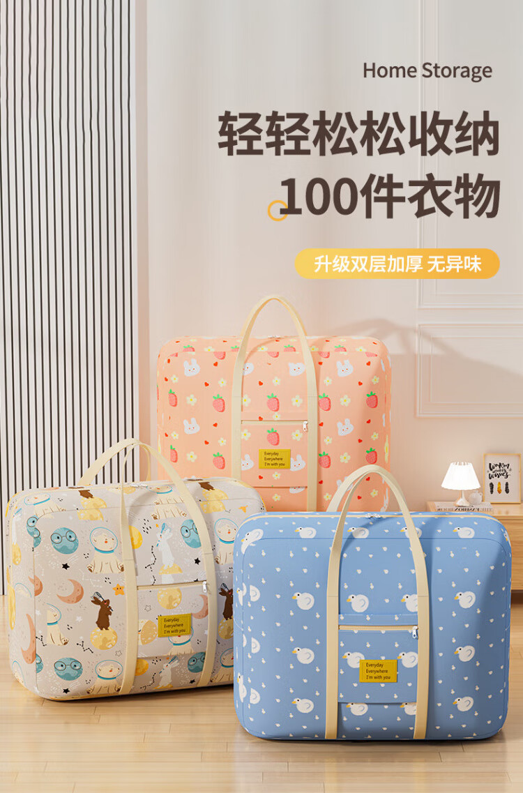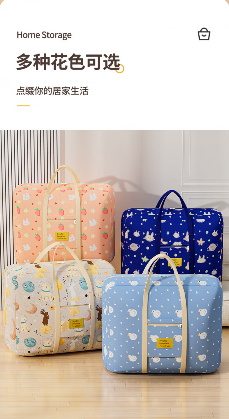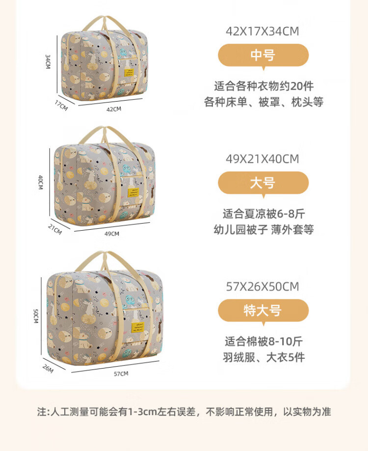 Midele Oxford cloth quilt storage bag, large capacity for clothing, luggage, moving, packing quilt finishing bag, moisture-proof, three-piece set, gray plaid upgraded Oxford, wear-resistant and durable