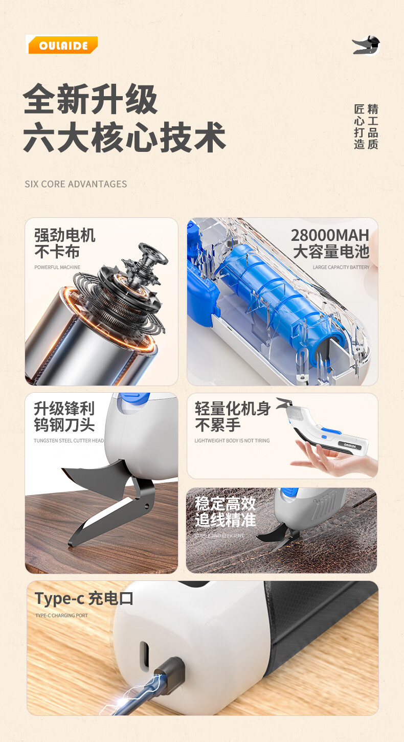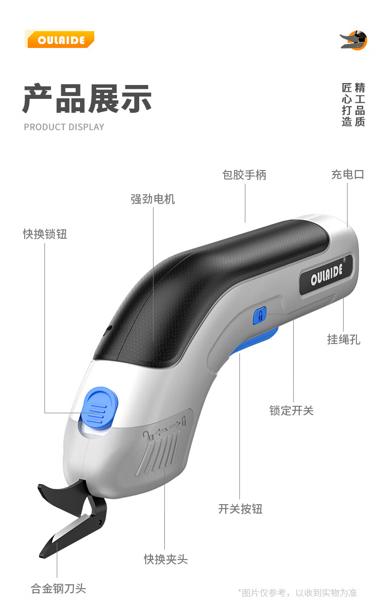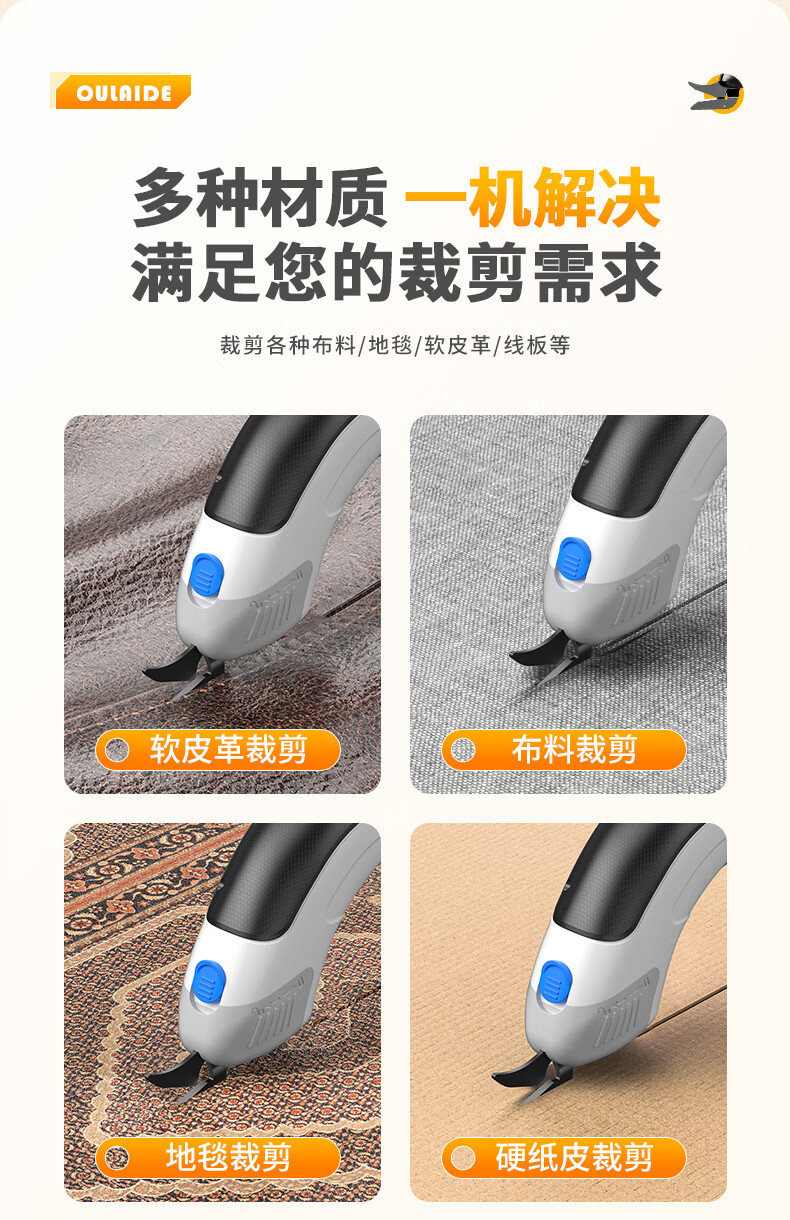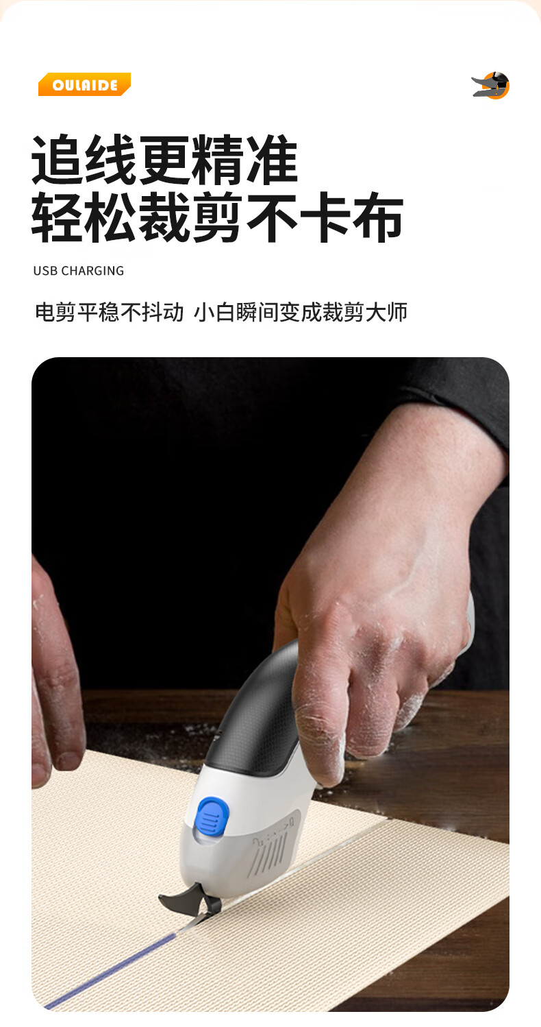 OULAIDE multifunctional electric scissors, cloth cutting artifact, hand-held cutting knife, small cloth cutting machine, clothing electric scissors