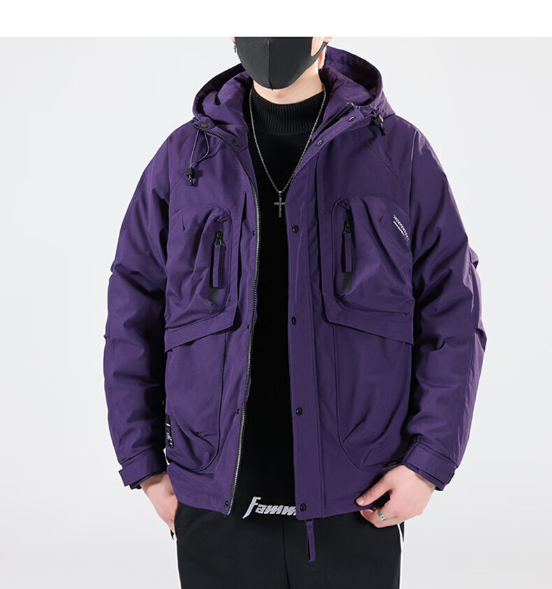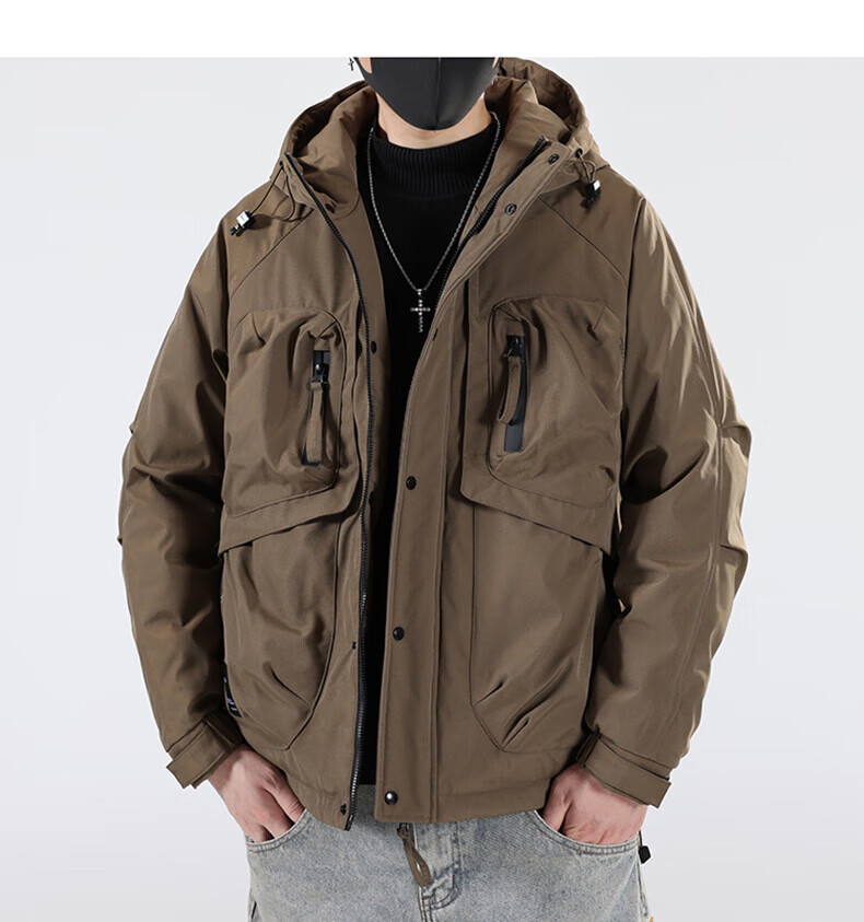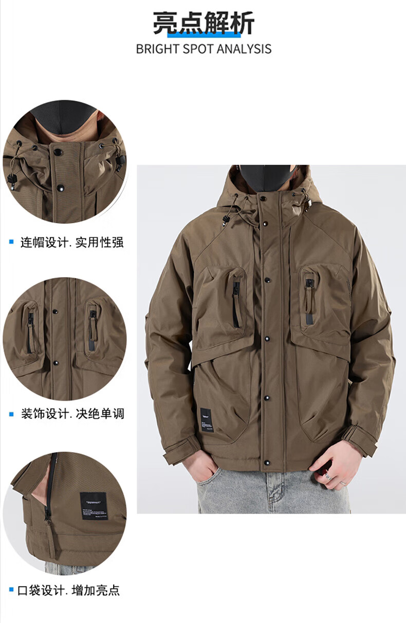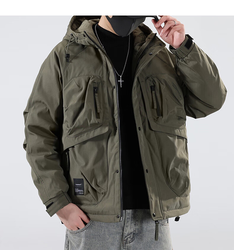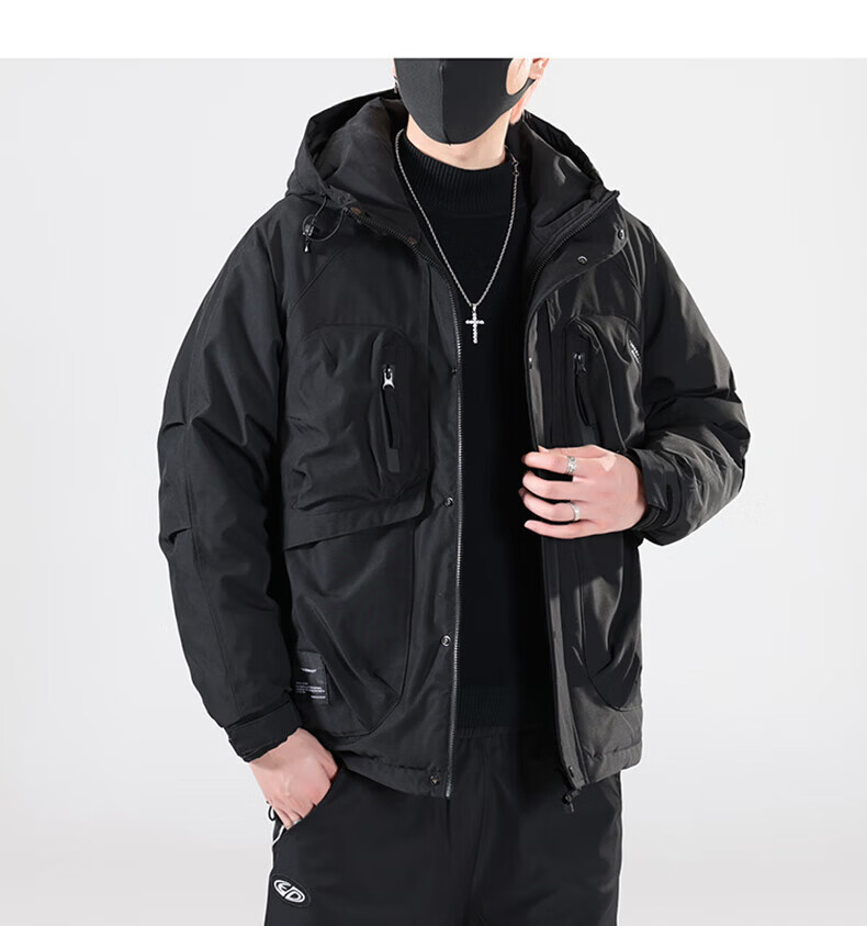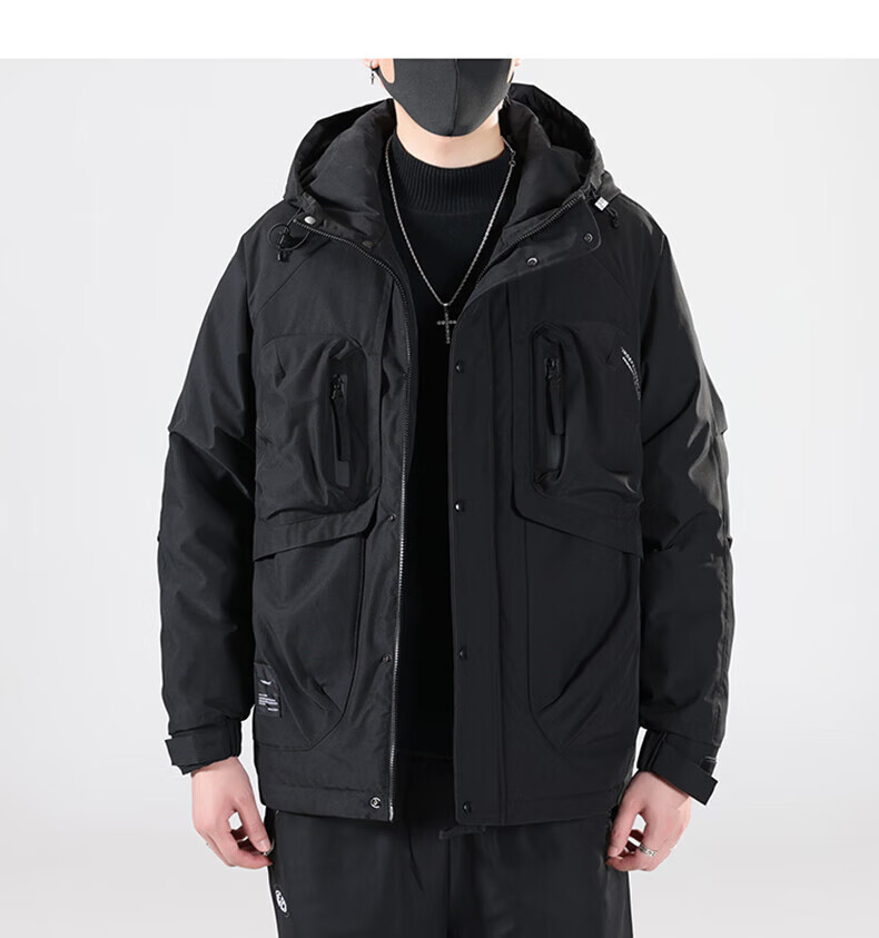 Jeanswest Jeanswest Down Jacket Men's 2024 Autumn and Winter New Trendy Fashion Loose Workwear Warm and Cold-proof Duck Down Jacket 913 Obsidian Black XL