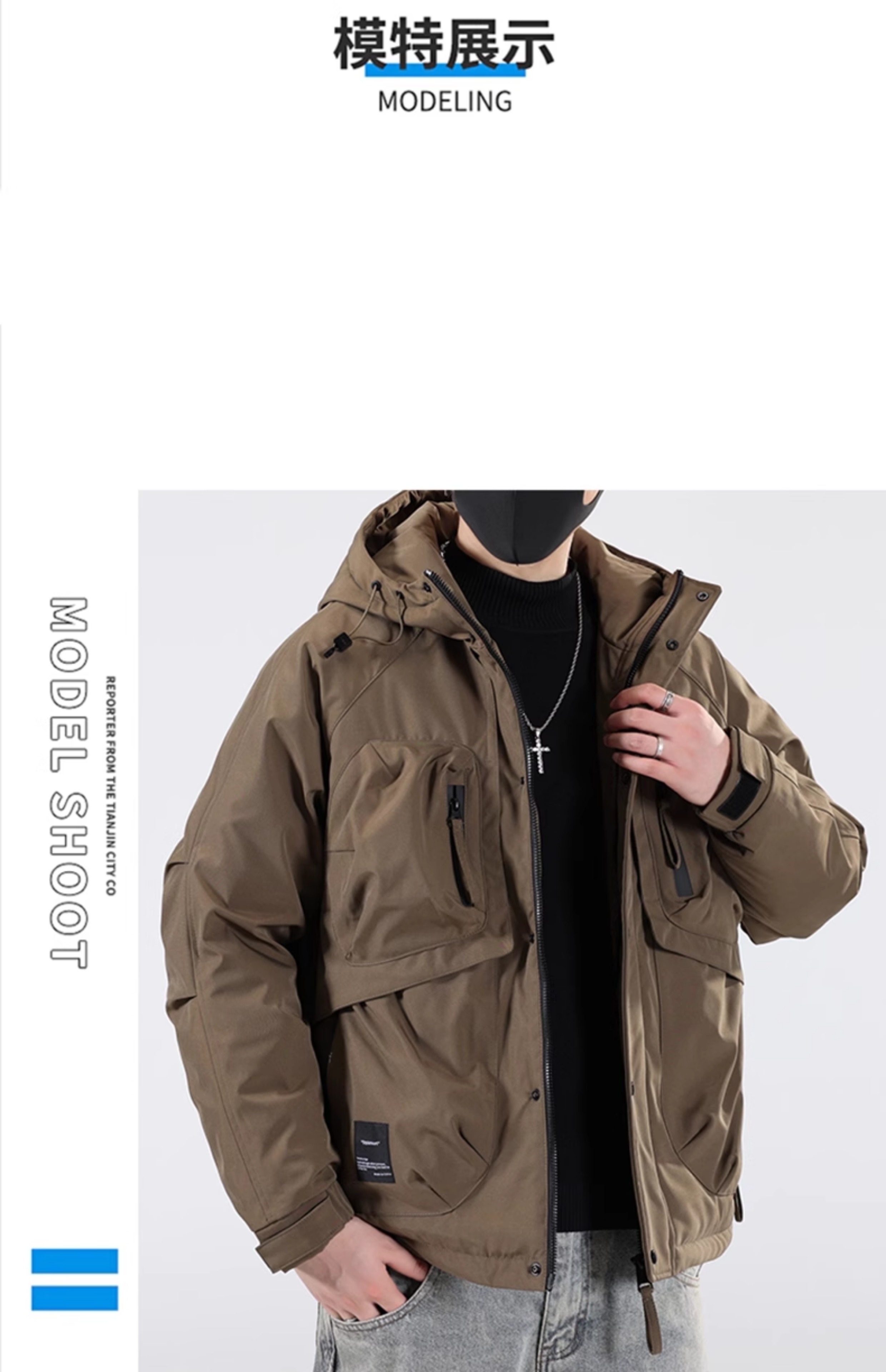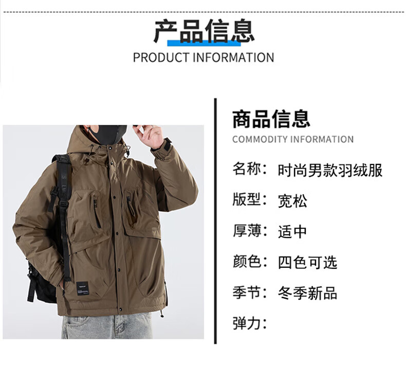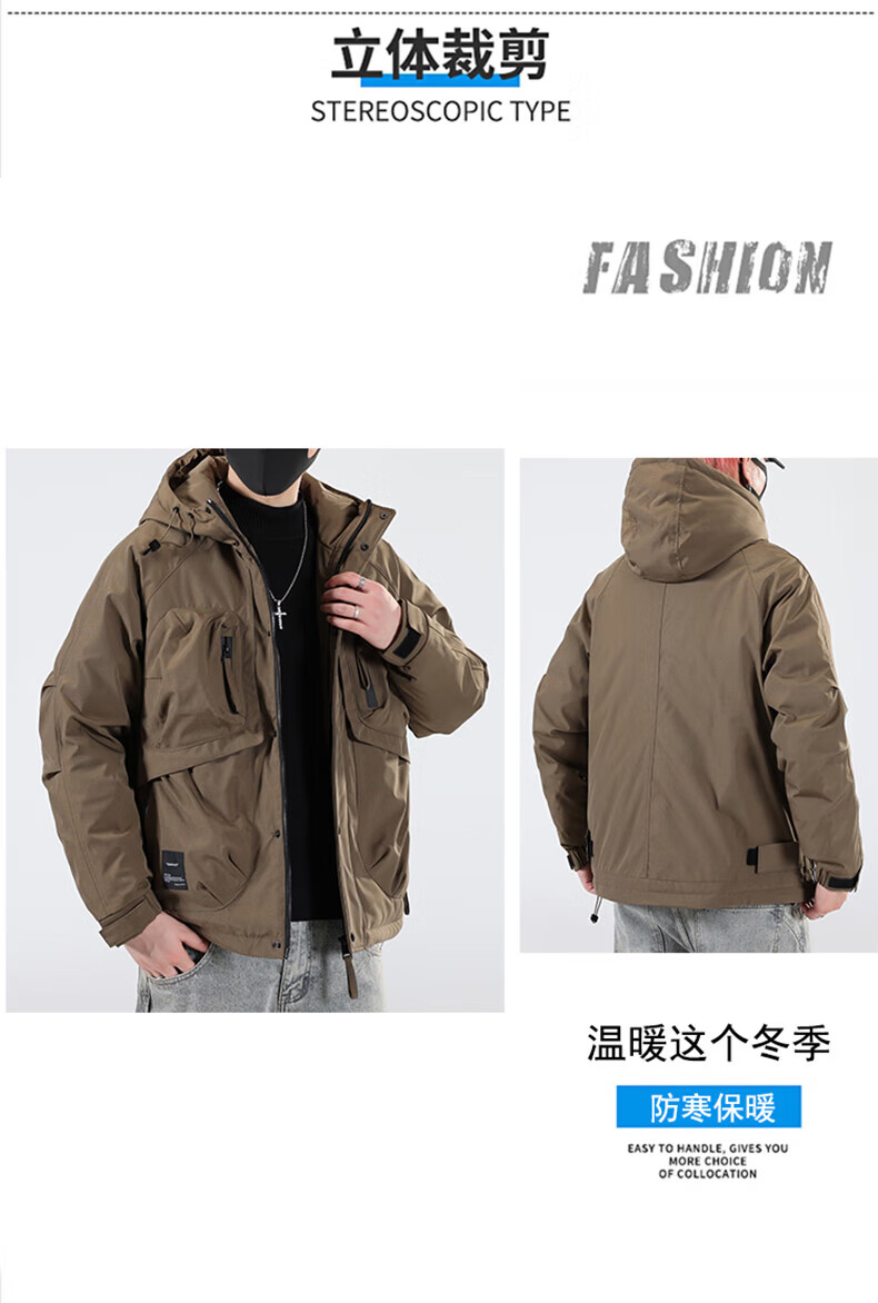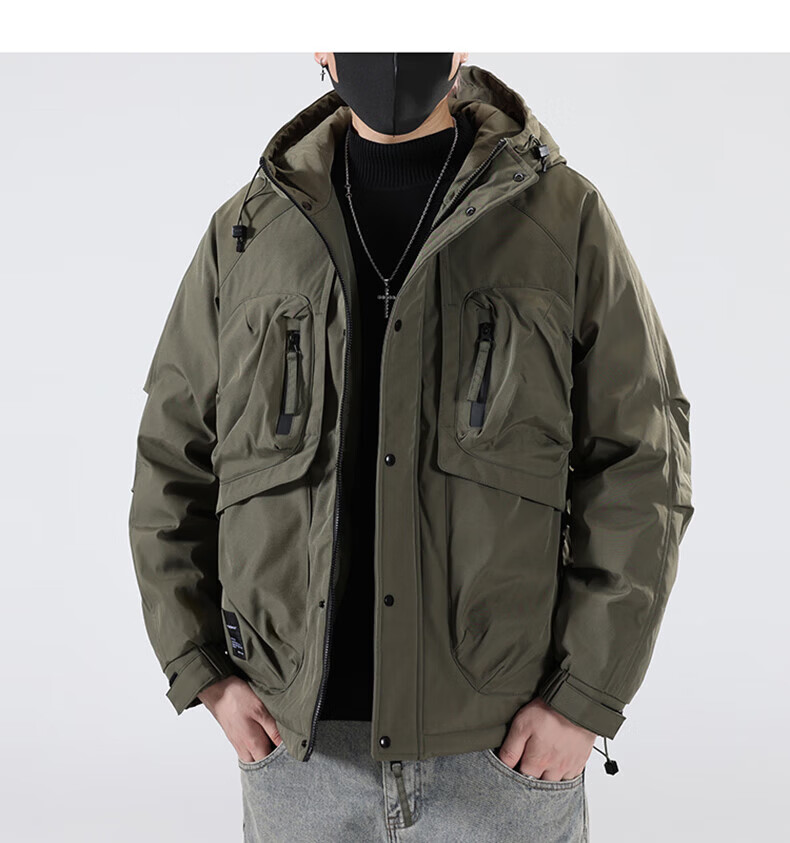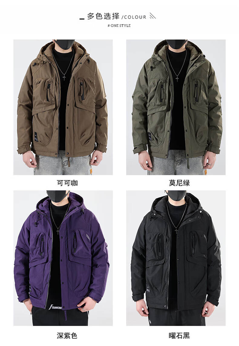 Jeanswest Jeanswest Down Jacket Men's 2024 Autumn and Winter New Trendy Fashion Loose Workwear Warm and Cold-proof Duck Down Jacket 913 Obsidian Black XL