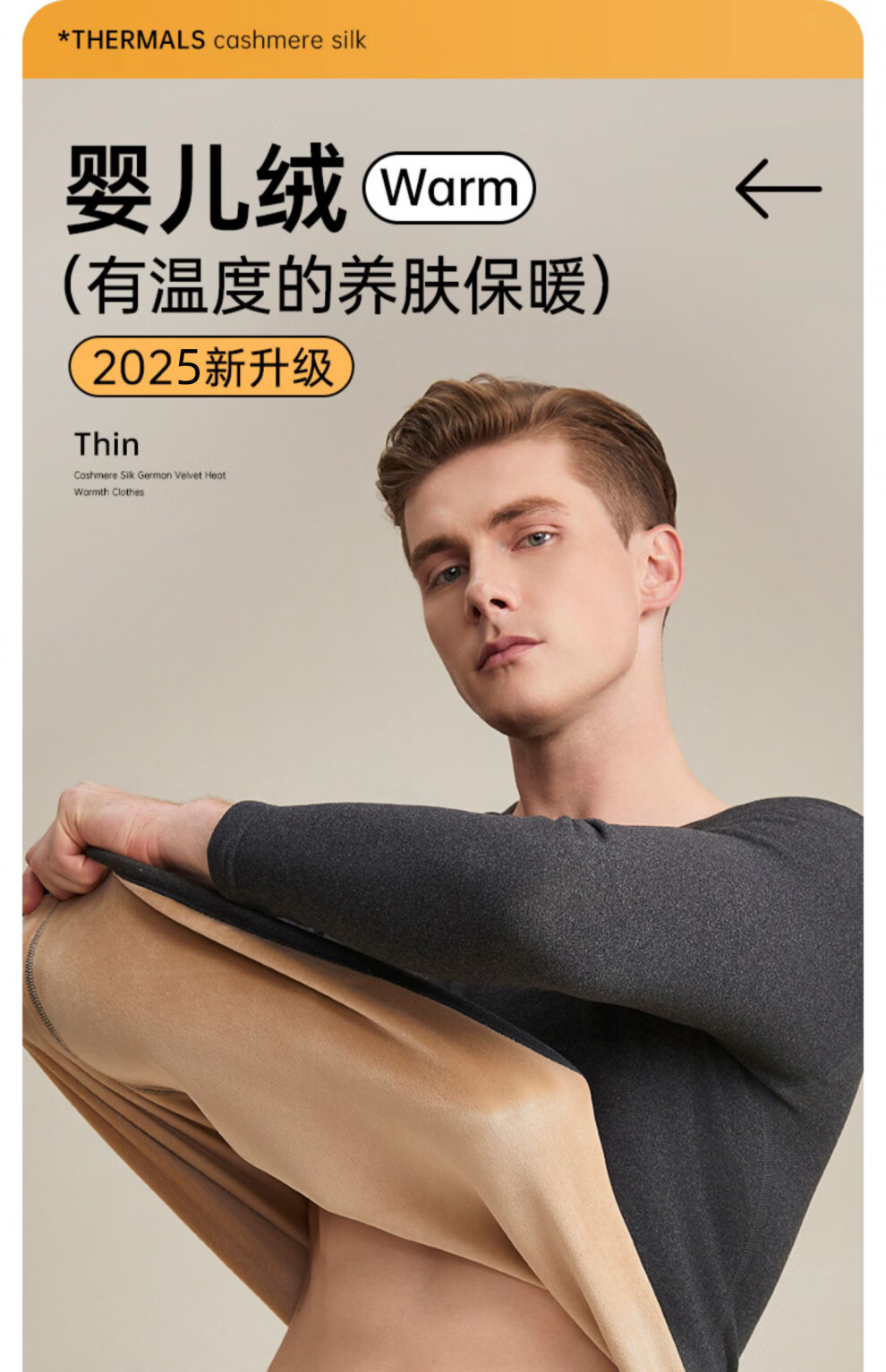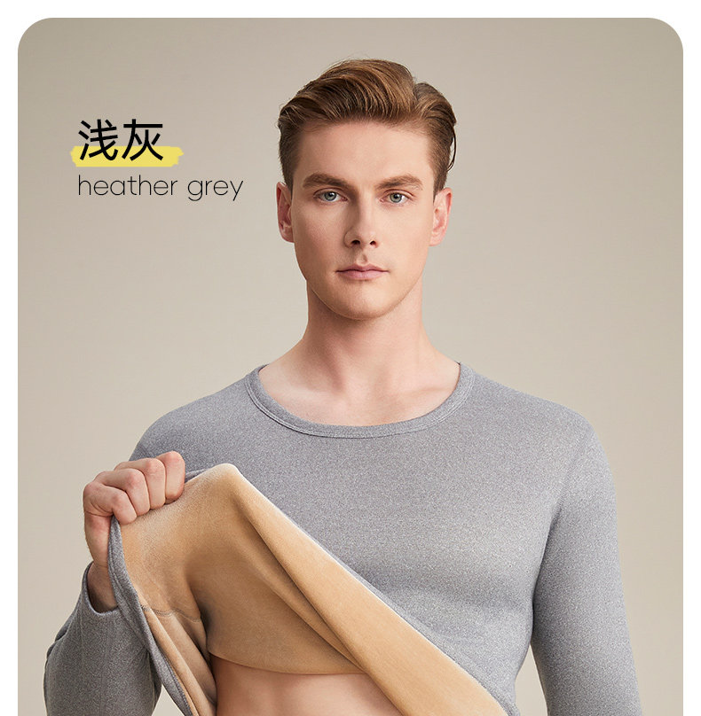 Yalu 2026 Men's Velvet Thickened Thermal Underwear Men's German Velvet Heated Lamb Velvet Autumn Clothes Autumn Pants Set Bottoming Shirt Middle Collar Red Velvet Thickened Lamb Velvet L 85-105 Jin