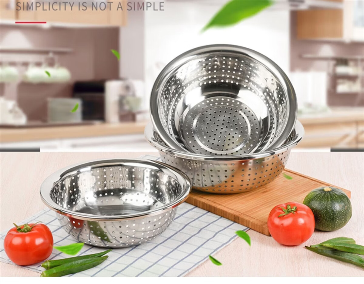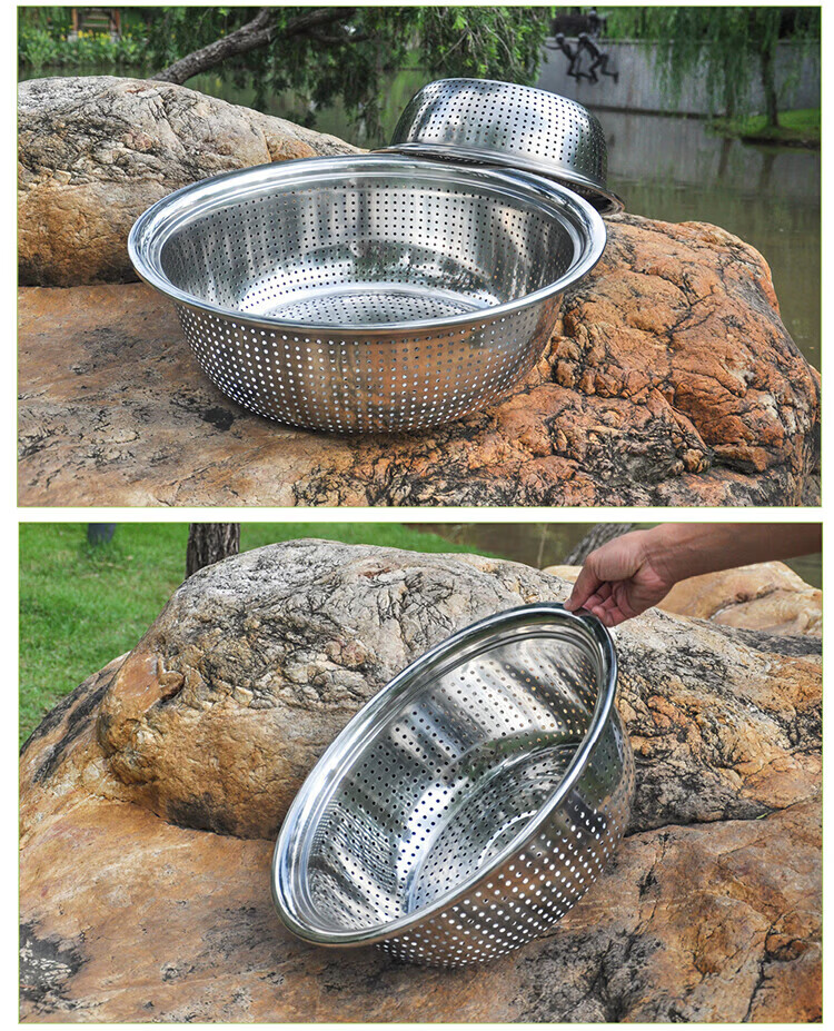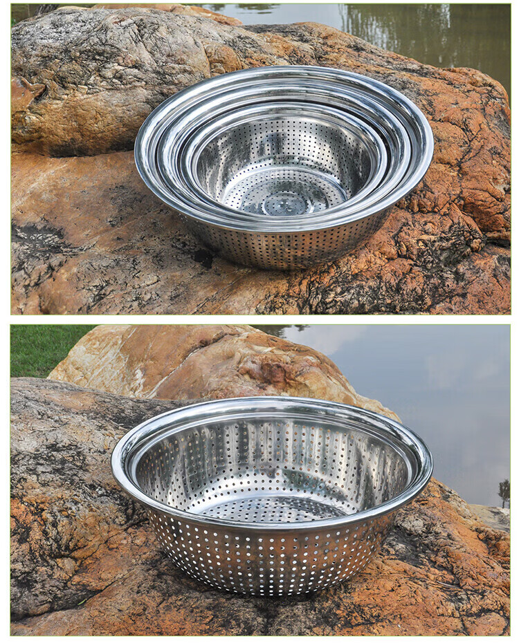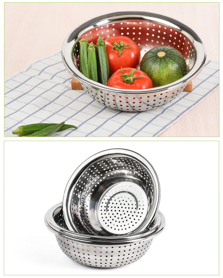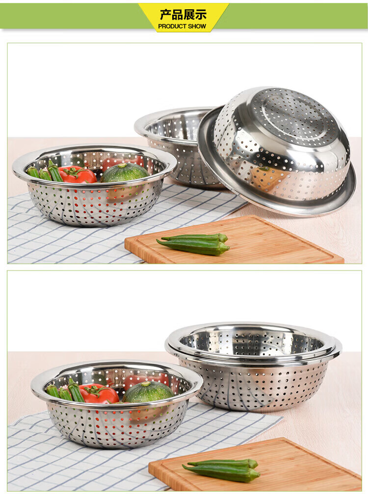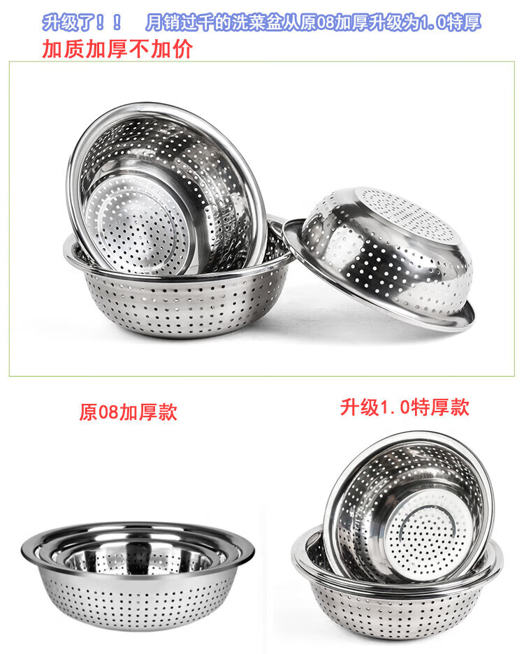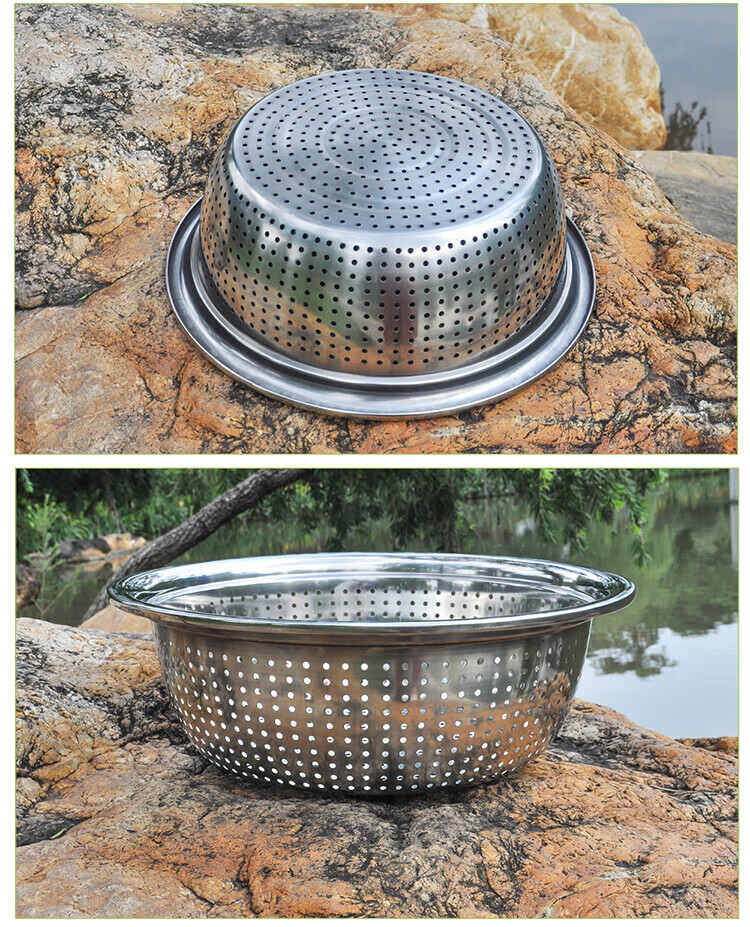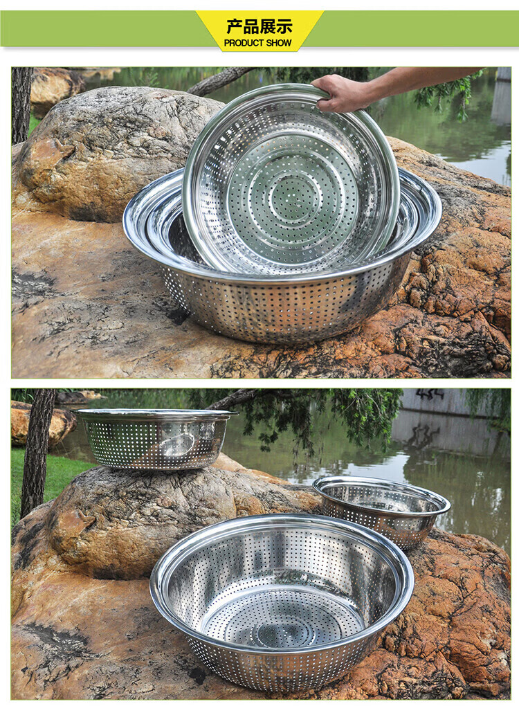 He Jiagong stainless steel large leaky vegetable sink 28-70 washed fruit basin vegetable basket drain basin rice basin drain basket 60 extra thick vegetable drain basin + thick steel solid basin