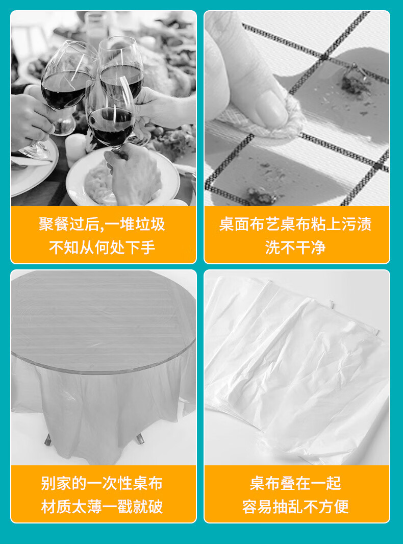 Elastic mouth table cover, disposable thickened PE transparent tablecloth, waterproof and oil-proof, no-wash tablecloth, tie-shaped table cover, red festive, 20 pieces, round table with diameter of 1.3 meters/square table with length and width of 2 meters