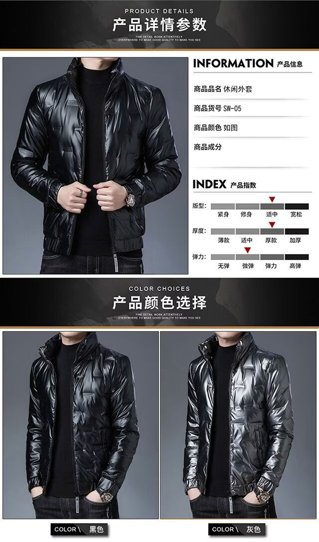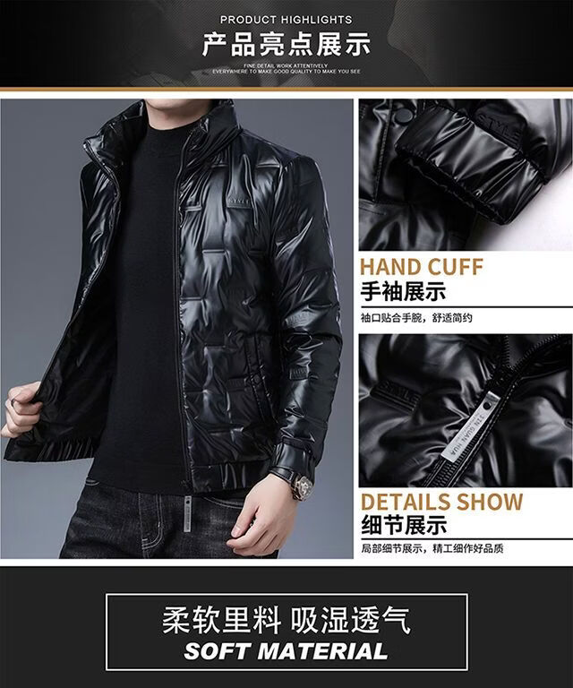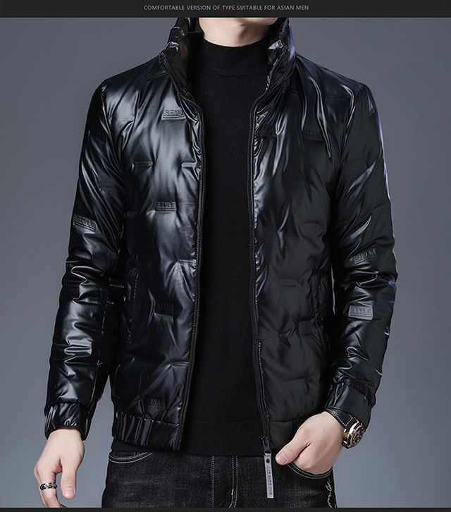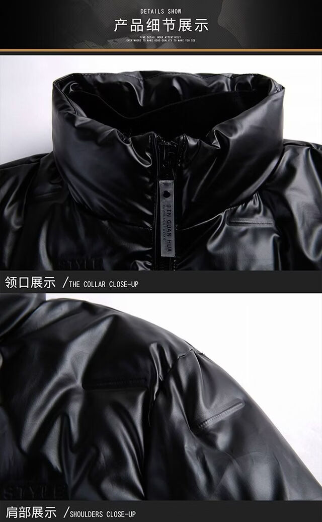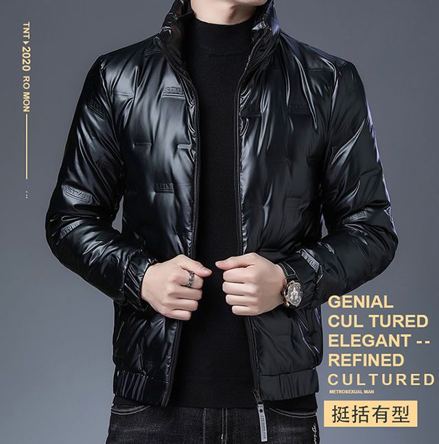 Hengyuanxiang glossy thickened winter down jacket men's short style new youth warm men's jacket BOSS-SW05-black-stand-up collar glossy 3XL 190/104A recommended 190-210 catties