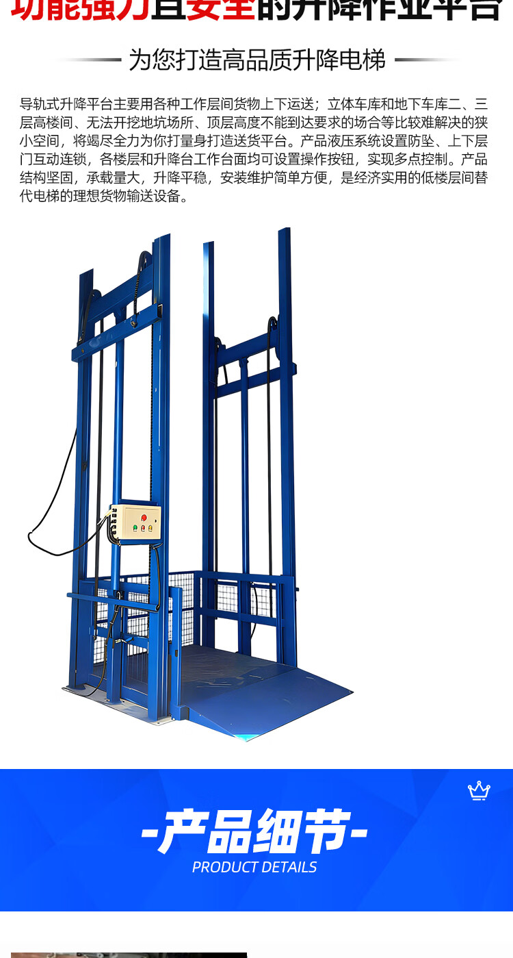 Lifting freight elevator electric hydraulic lifting platform for indoor and outdoor use 1-10 tons guide rail type large capacity lifting freight elevator other sizes customized (contact customer service)