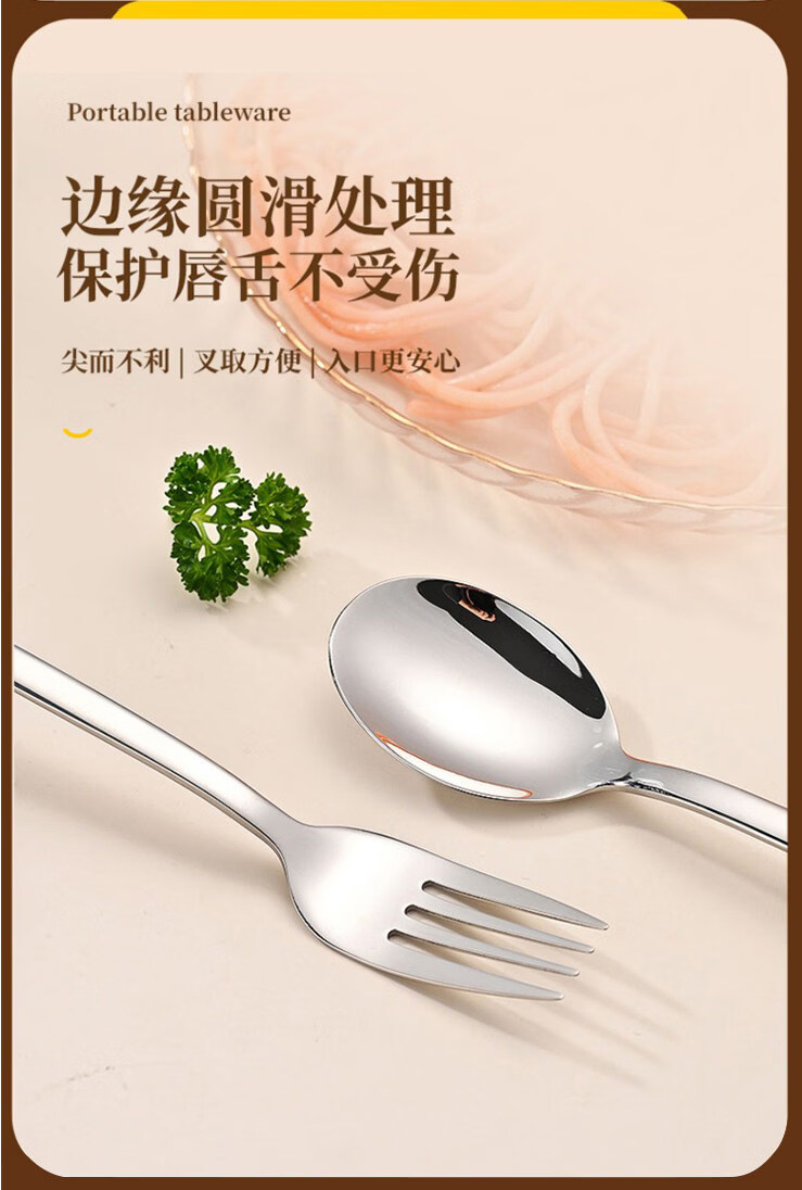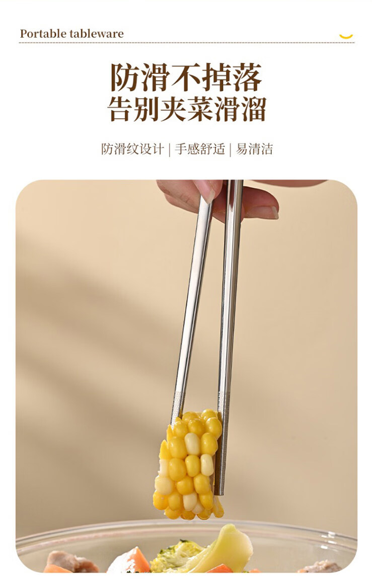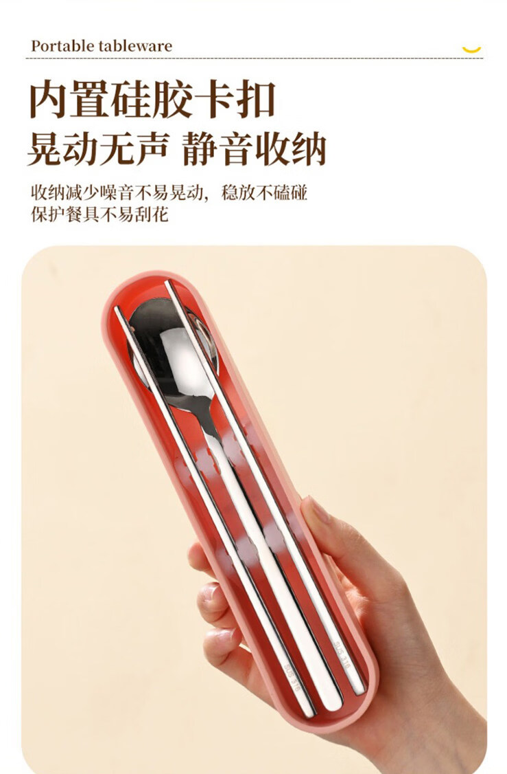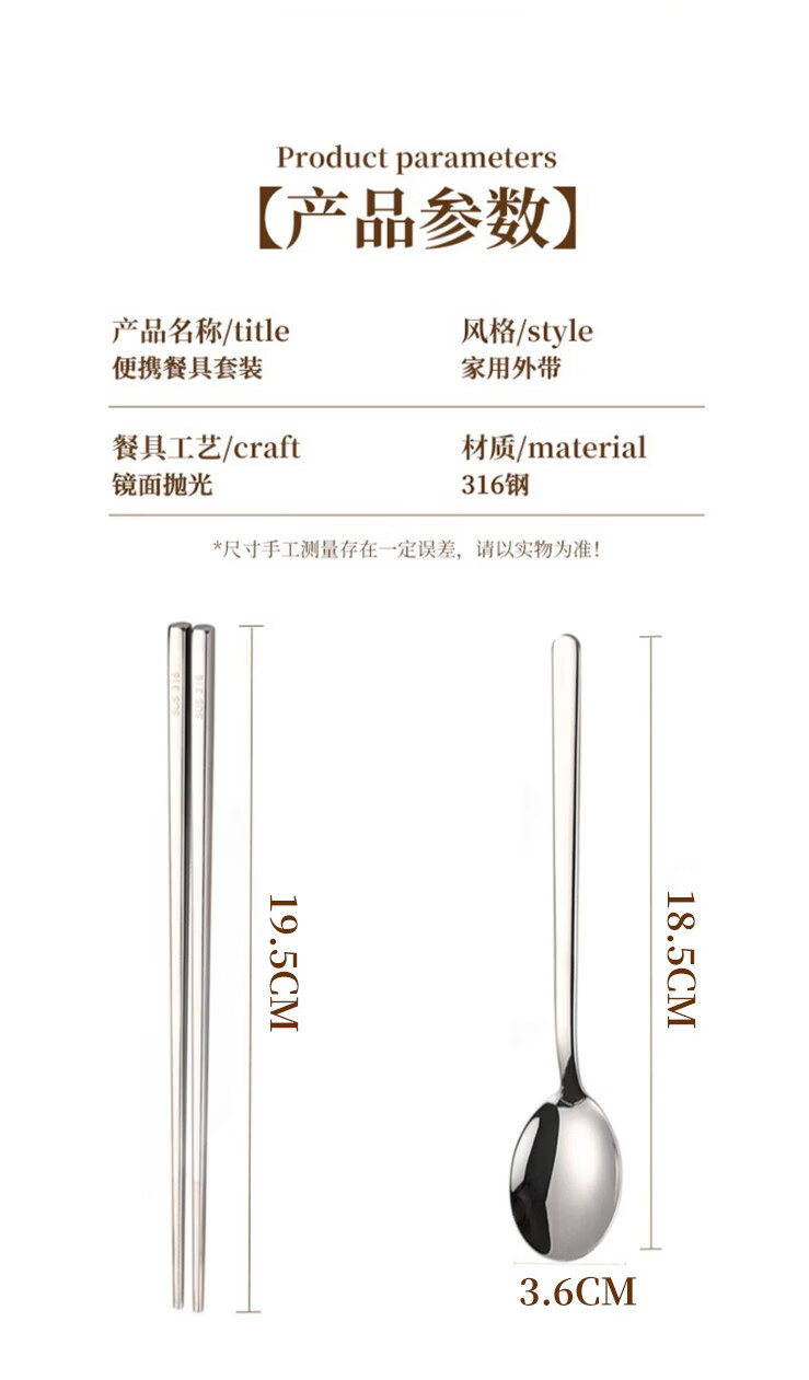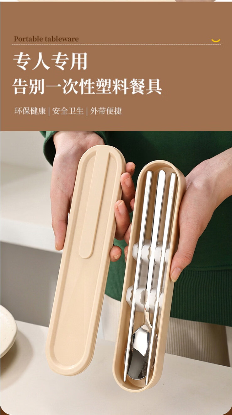 Tuojin Japan imported quality German 316L stainless steel chopsticks and spoons three-piece set single portable tableware 316L chopsticks, spoons and forks three-piece set light blue with storage box