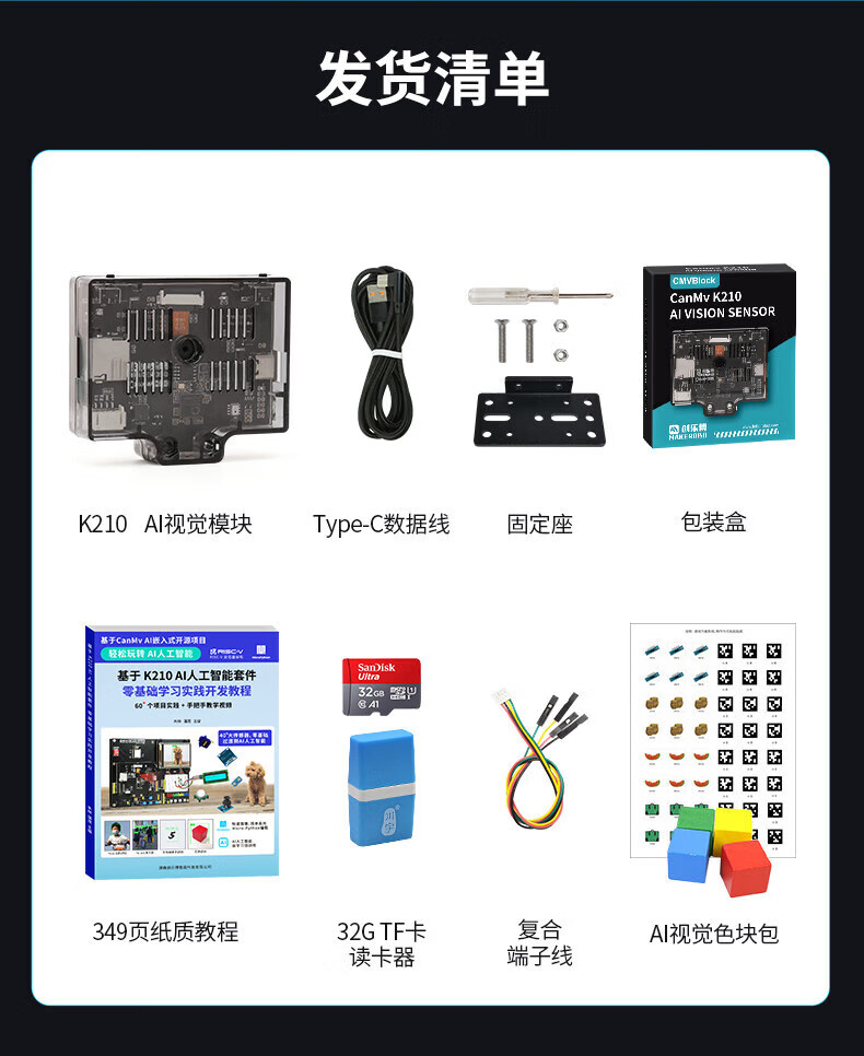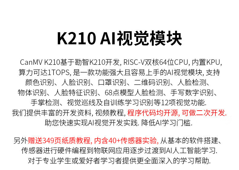 CanMv K210 camera AI vision module development board AI vision recognition face color recognition K210 vision module