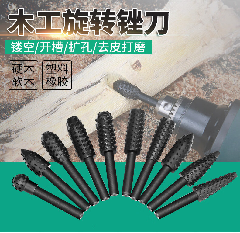Xianchi carving tools electric full set electric carving knife wood carving root carving grinding milling cutter tungsten steel rotary file head grinding a45 steel ten-piece set