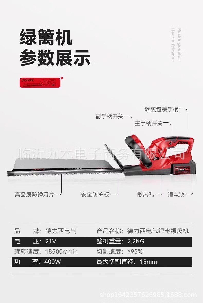 Sanqihu Electric Electric Hedge Trimmer Rechargeable Flower Pruning Shears Tea Garden Lawn Trimmer One Generation Single Blade 10 Sections 4.0Ah Two Batteries and One Charge
