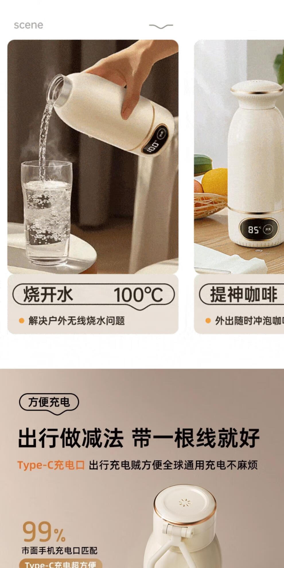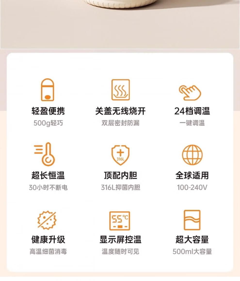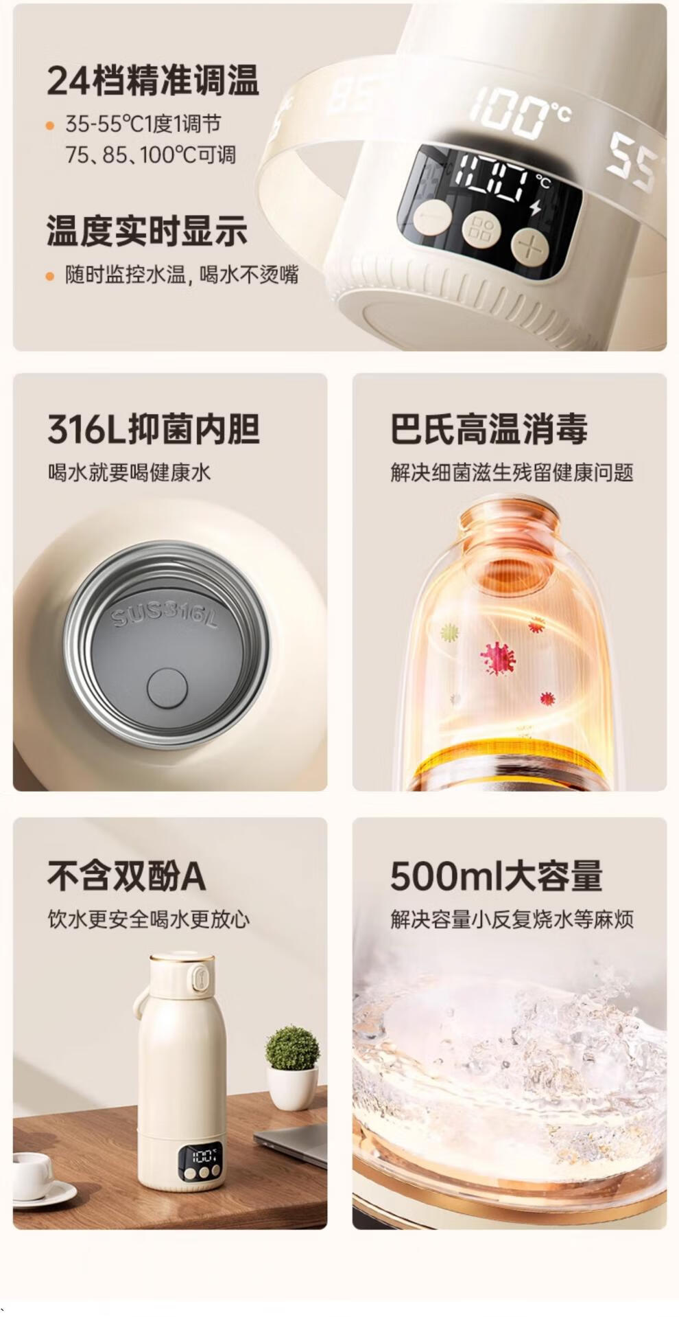 Fat Donglai same style portable hot water kettle boiling cup travel kettle 100 degree small thermal insulation constant temperature 1ml 14000mAh wireless boiler 1003500ml