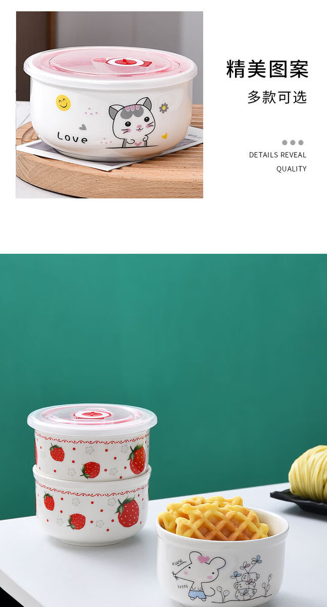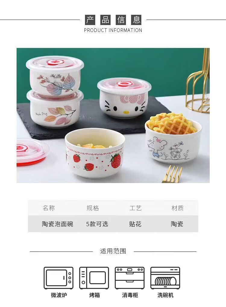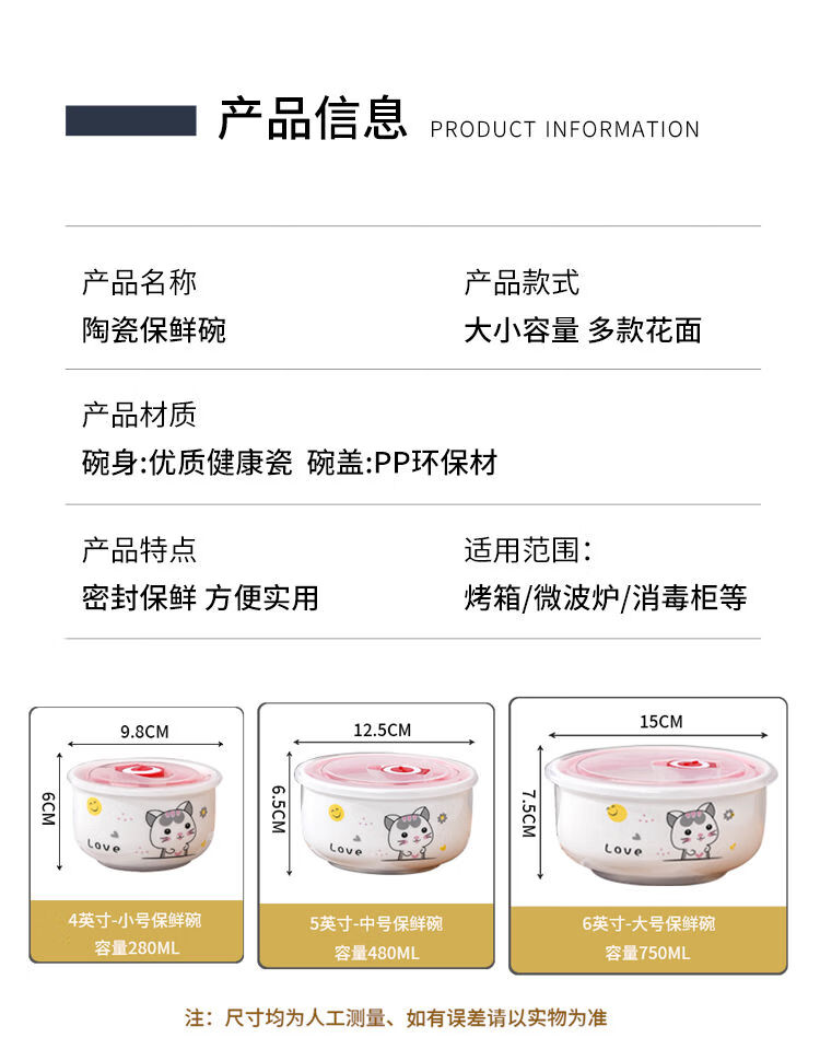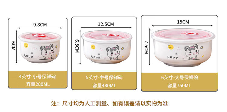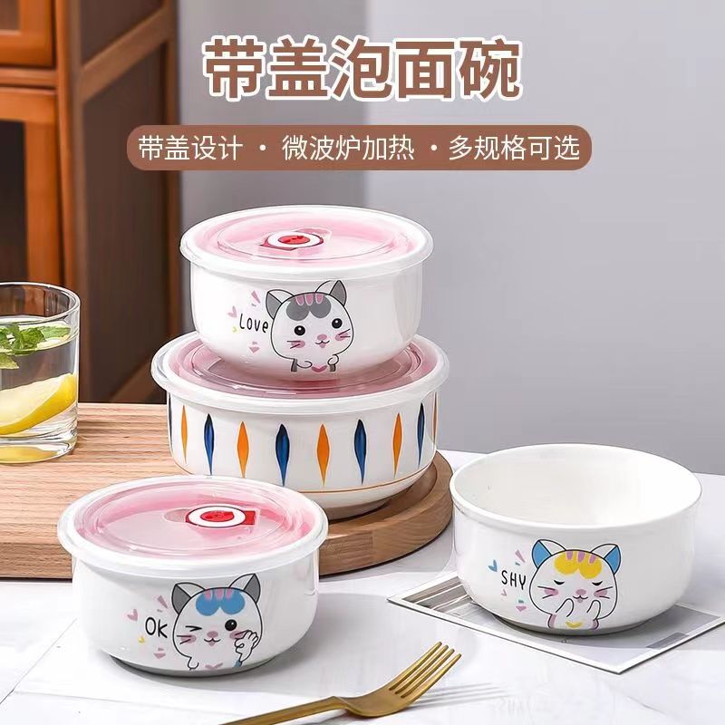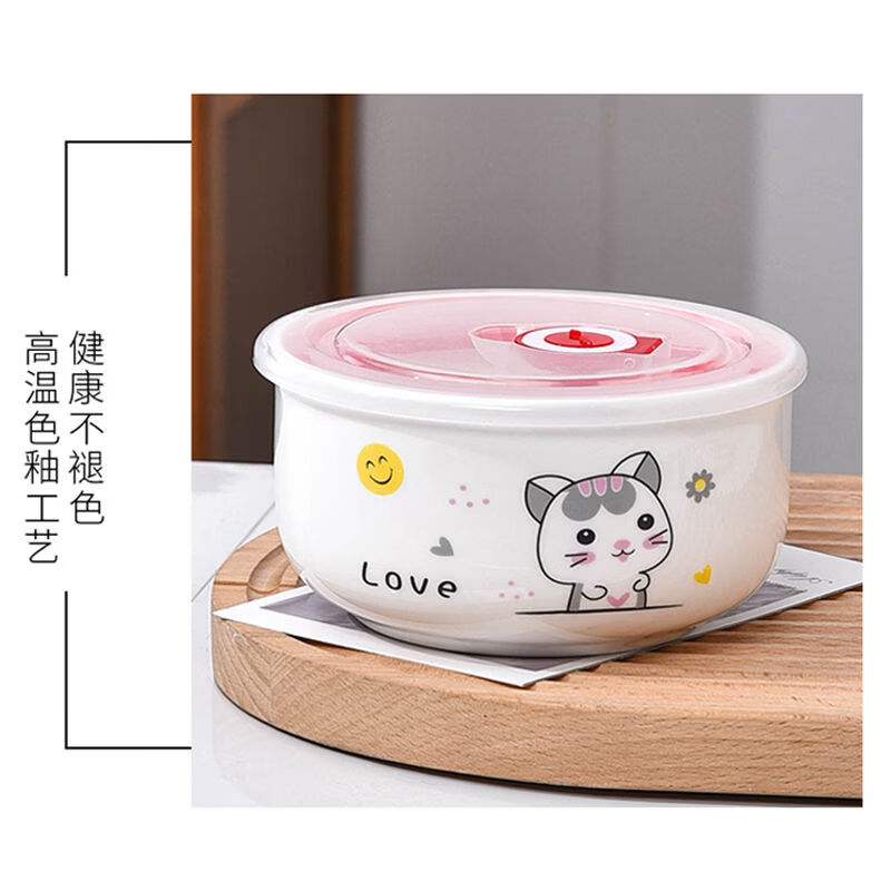 Wing Fantasy Fresh-keeping Bowl Instant Noodle Bowl Refrigerator Storage Box Microwave Oven Sealed Lunch Box with Lid K Cat Small One
