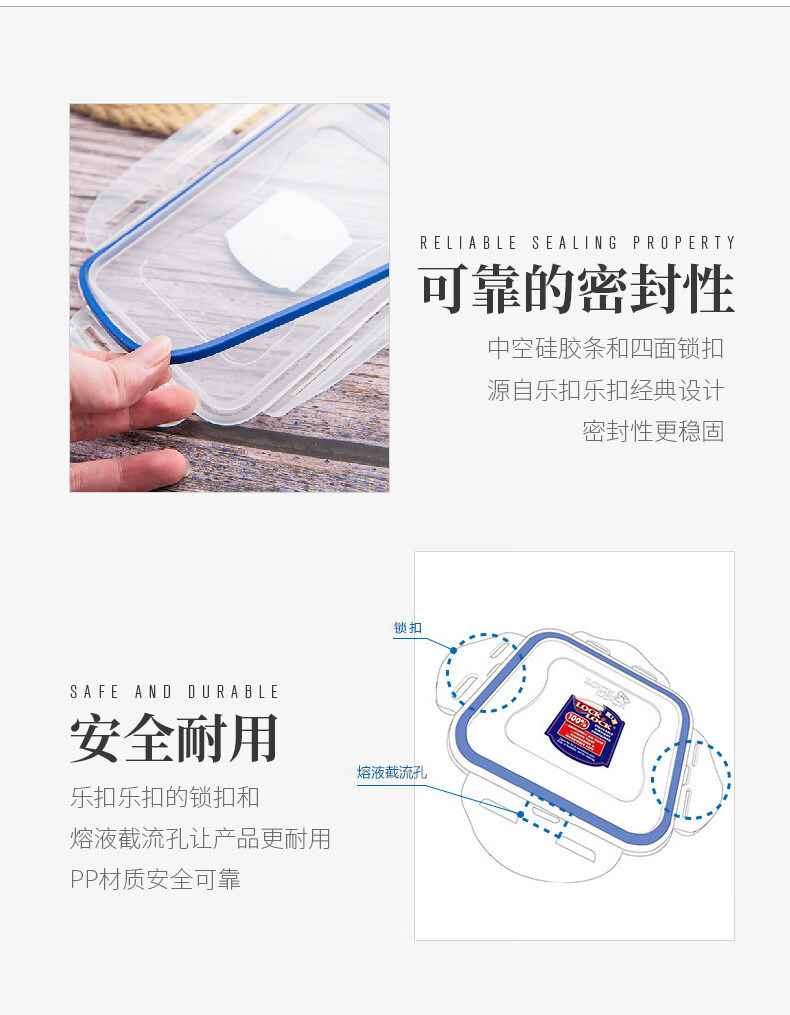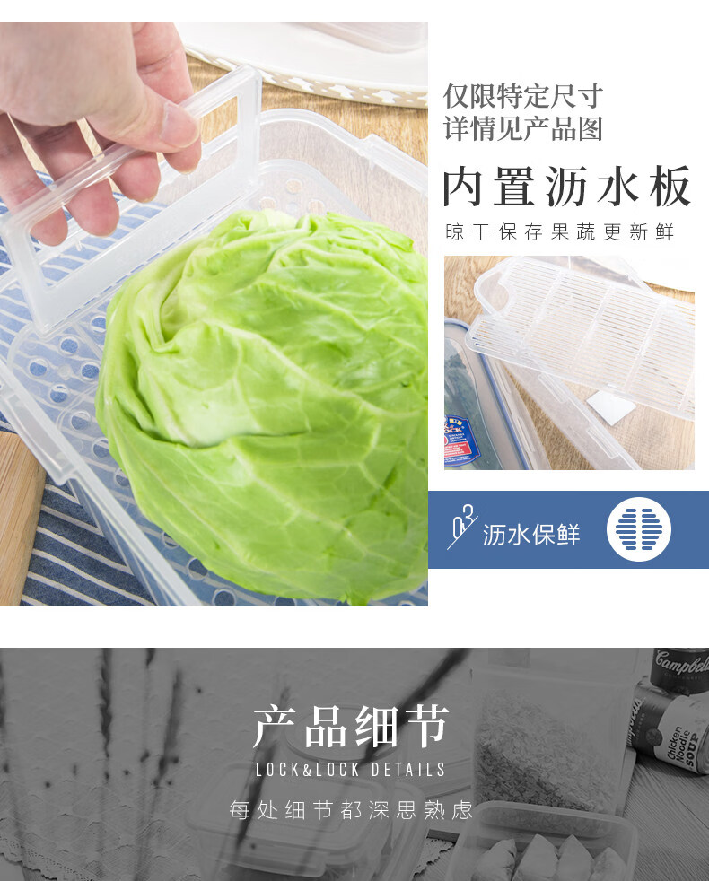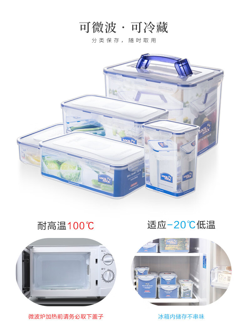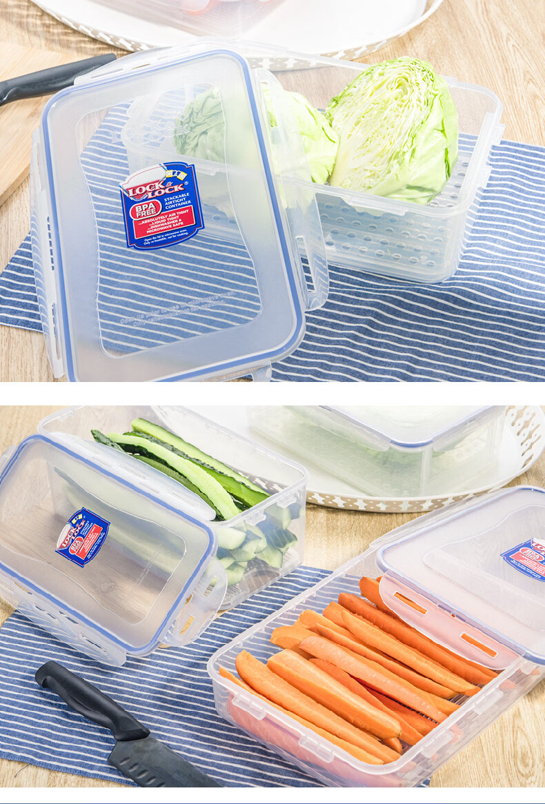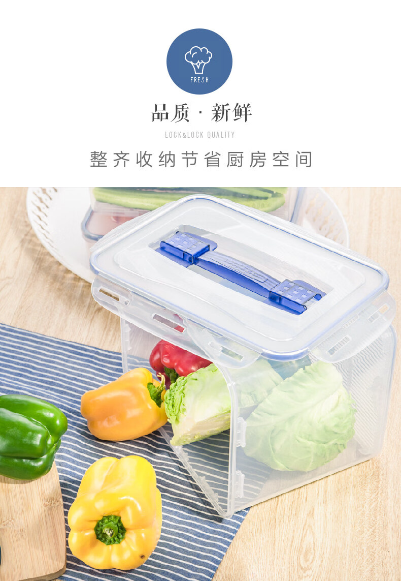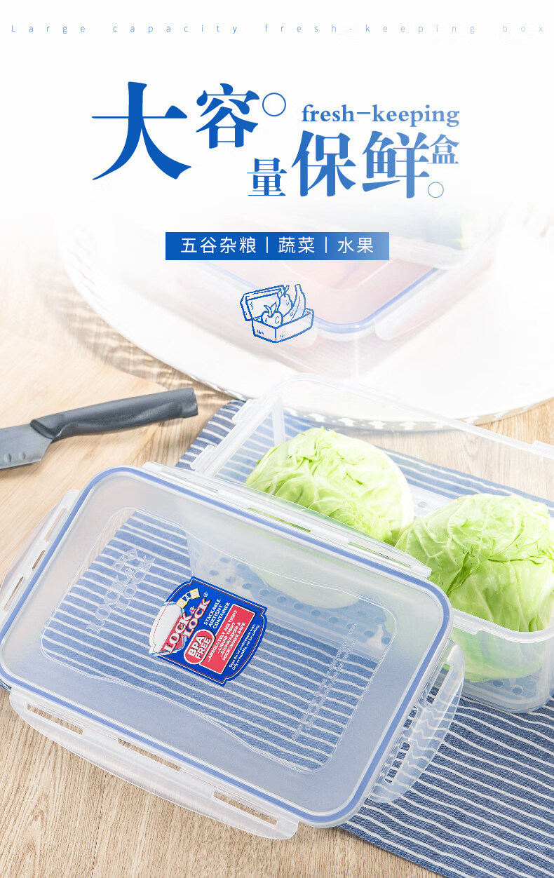 Locknlock food-grade large-capacity crisper sealed transparent storage box rectangular 2000ml