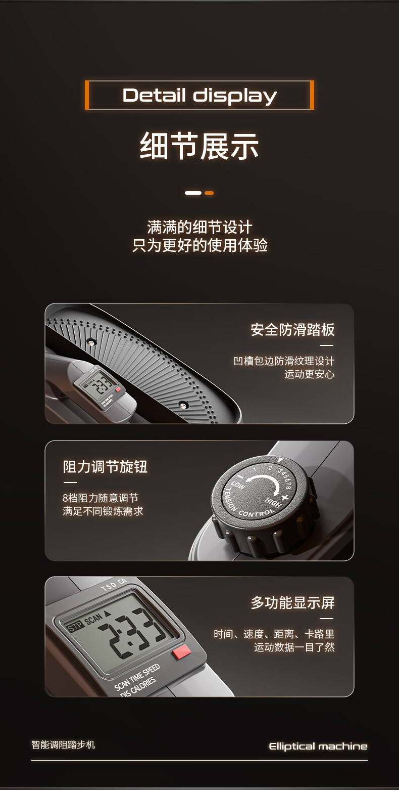 He Jiagong Mini Elliptical Machine Home Fitness Small Space Mini Stroller Silent Sports Equipment Stepper Model-Elliptical Machine Fashion Armrest Model-Pearl White