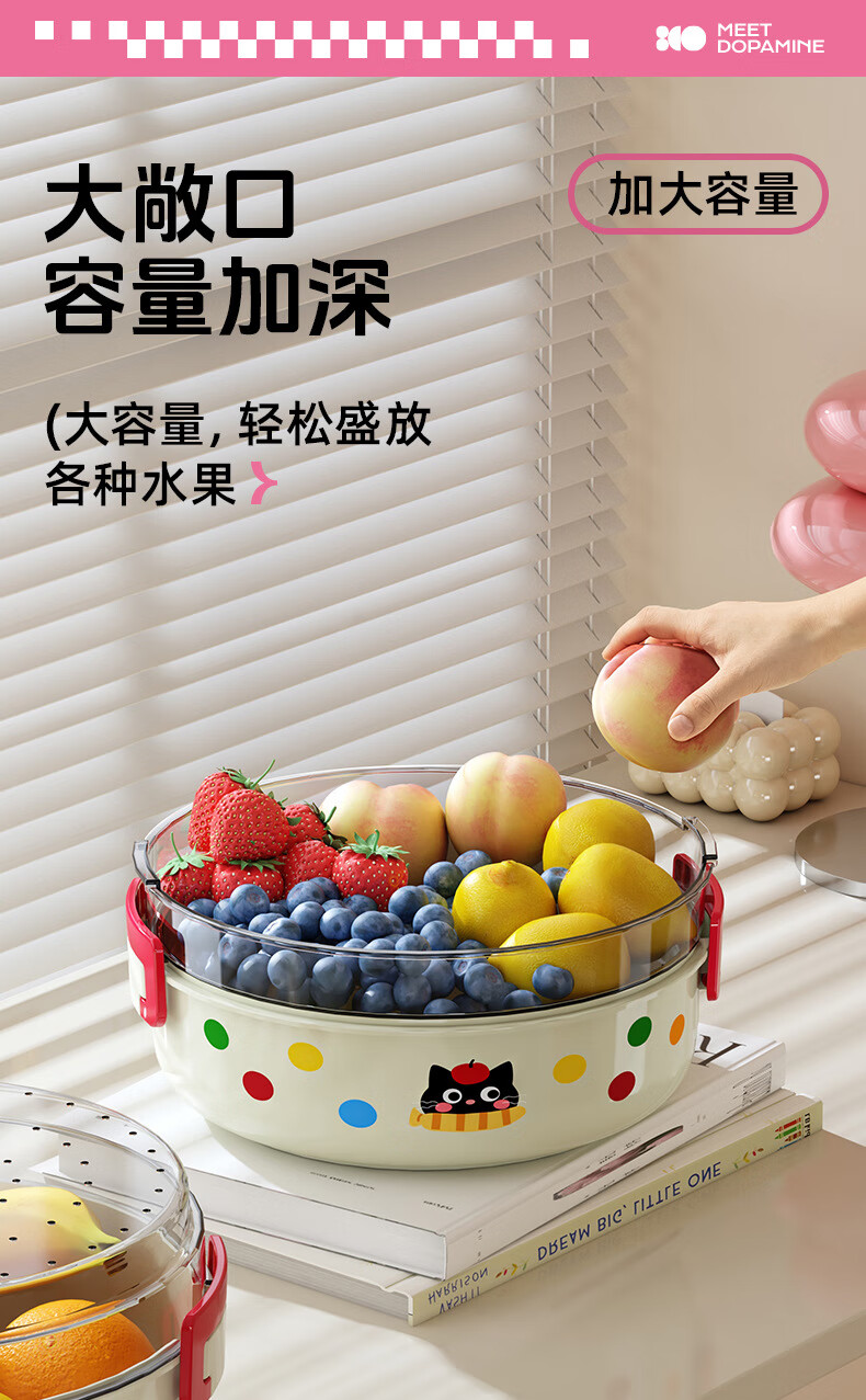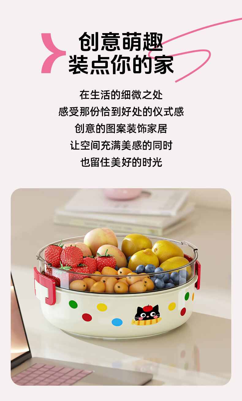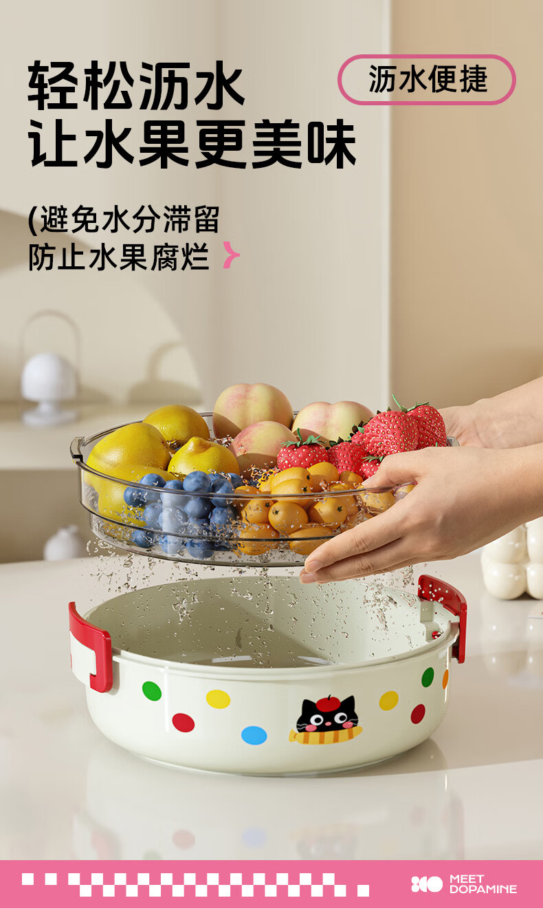 Hualeji Kitchen Cat Drain Basket Fruit Tray Multifunctional Living Room Tea House High-Looking Storage Washed Fruits and Vegetables Cream Cat