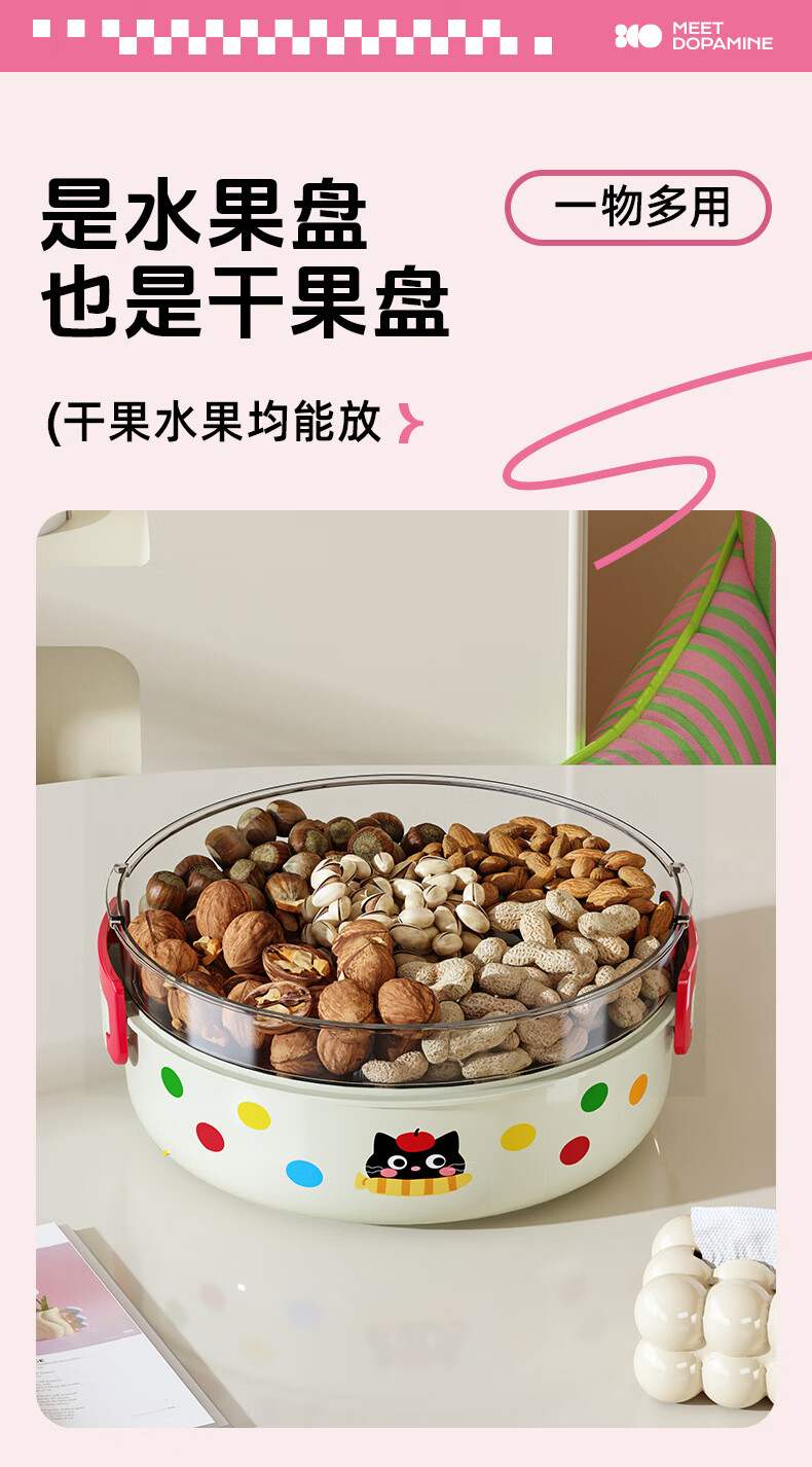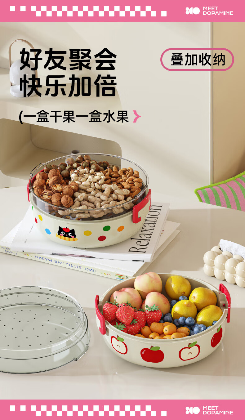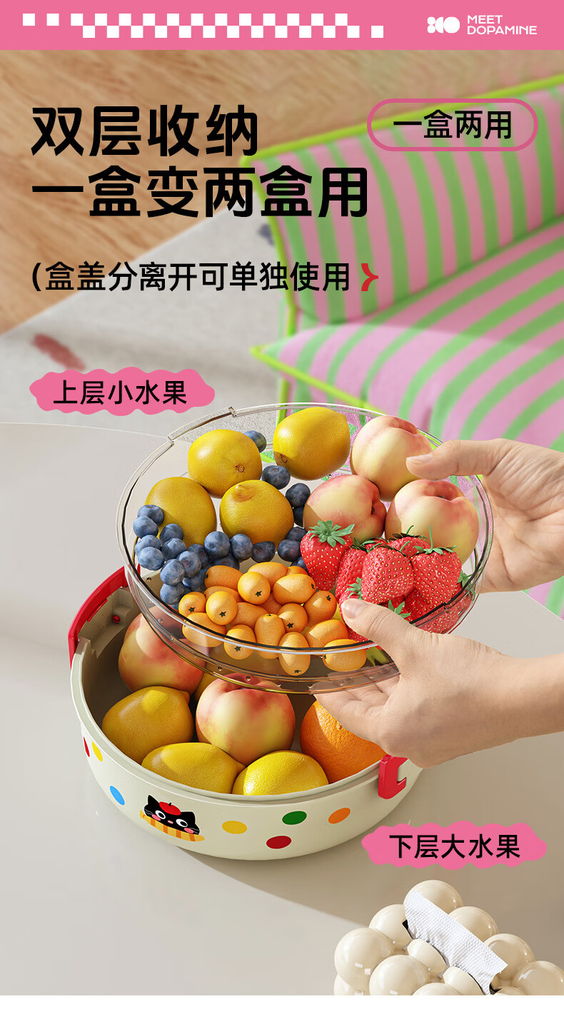 Hualeji Kitchen Cat Drain Basket Fruit Tray Multifunctional Living Room Tea House High-Looking Storage Washed Fruits and Vegetables Cream Cat
