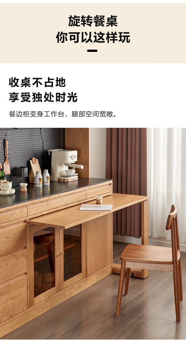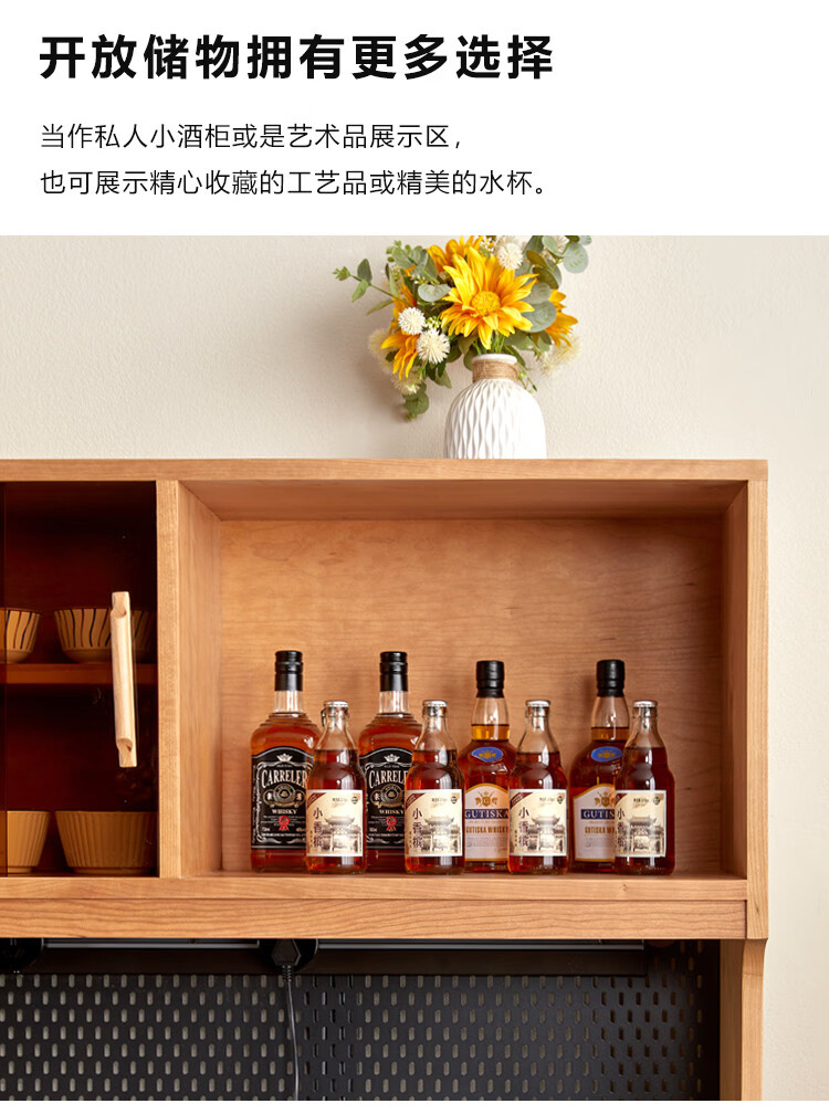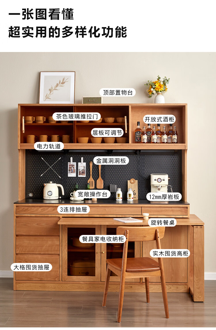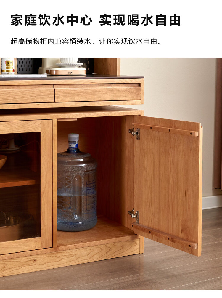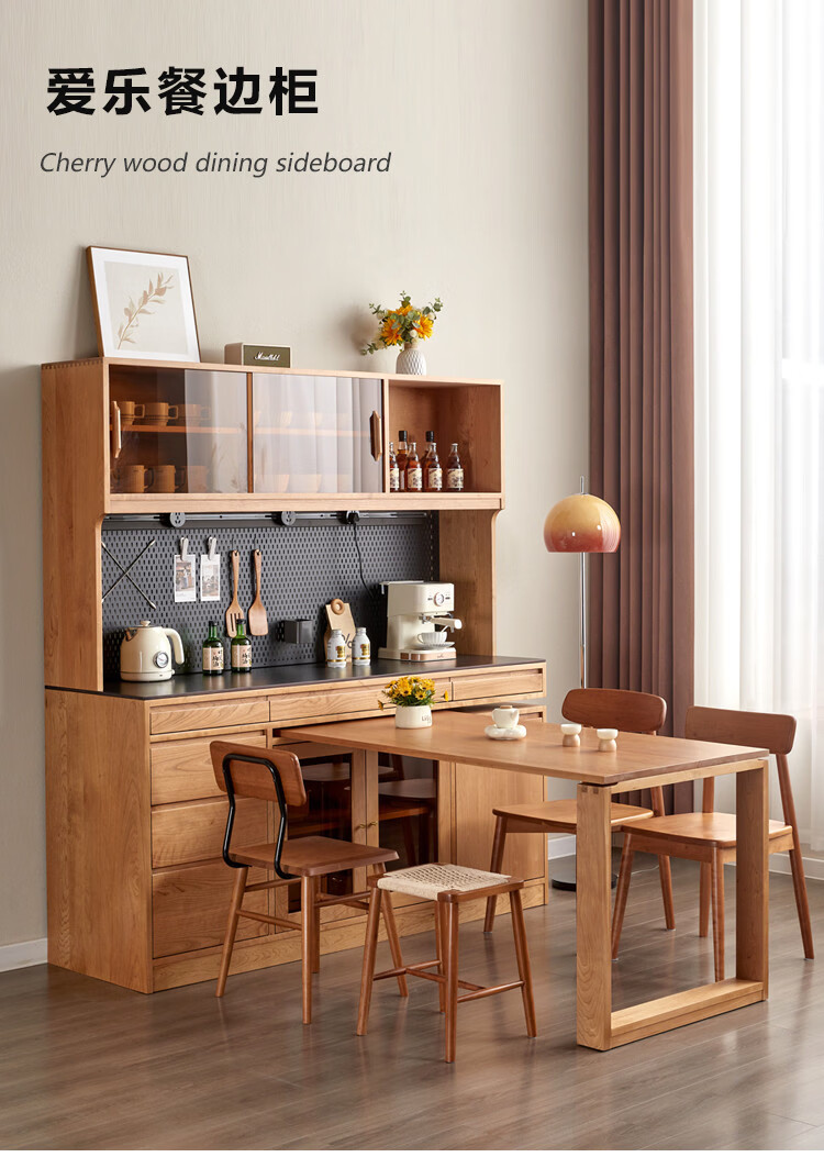 Zhong Zhanggui Nordic cherry wood sideboard dining table integrated solid wood living room wall high wine cabinet small apartment kitchen storage cabinet North American cherry wood 1.2 meters (left-hand rotation) 23 doors