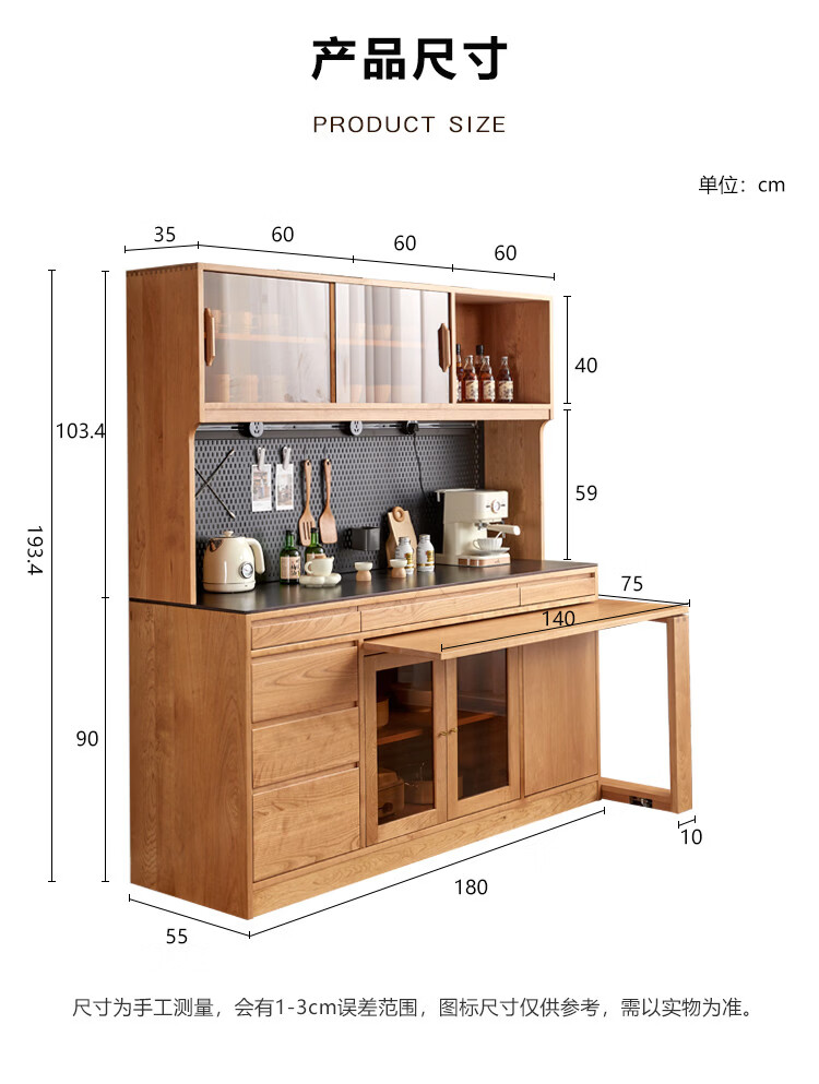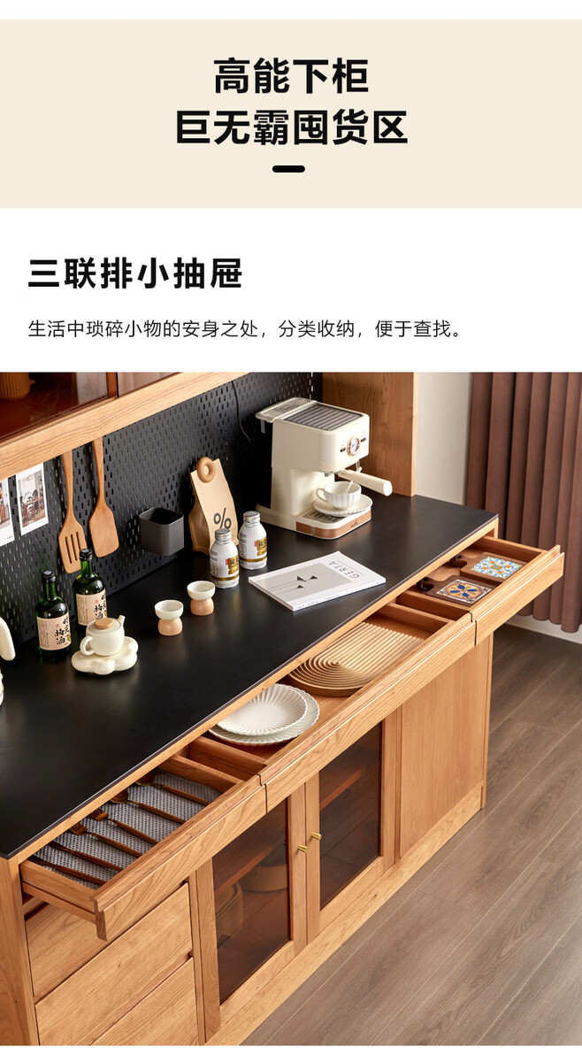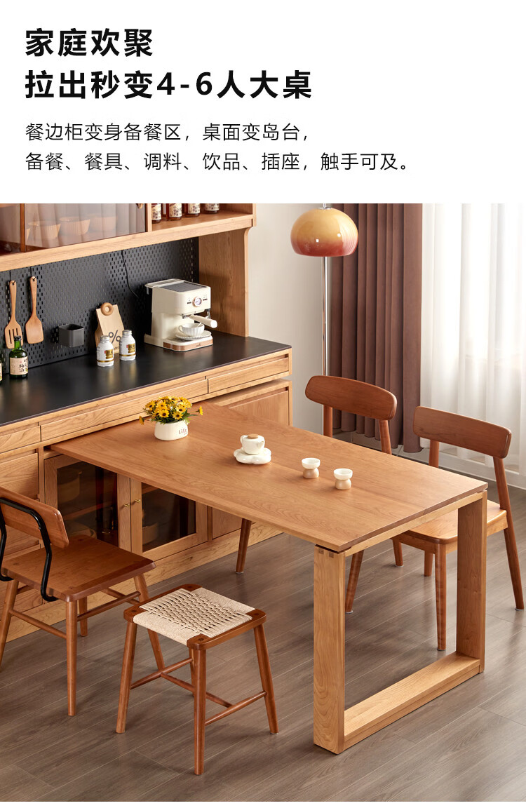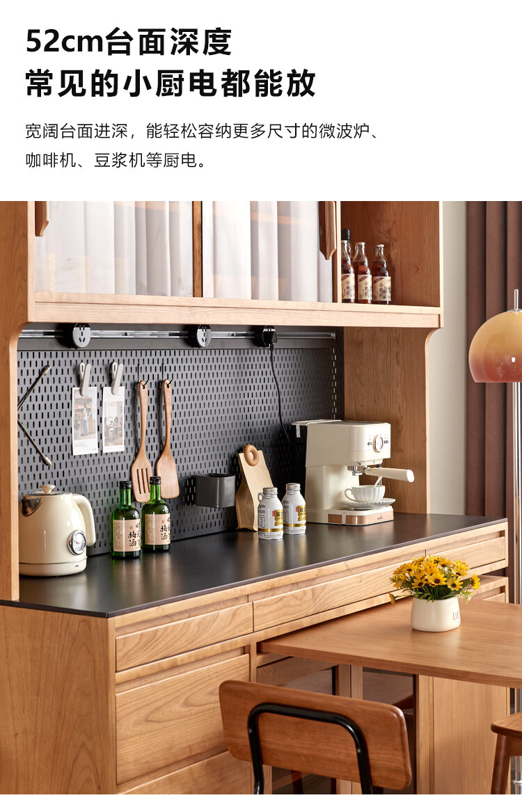 Zhong Zhanggui Nordic cherry wood sideboard dining table integrated solid wood living room wall high wine cabinet small apartment kitchen storage cabinet North American cherry wood 1.2 meters (left-hand rotation) 23 doors