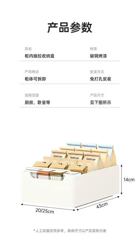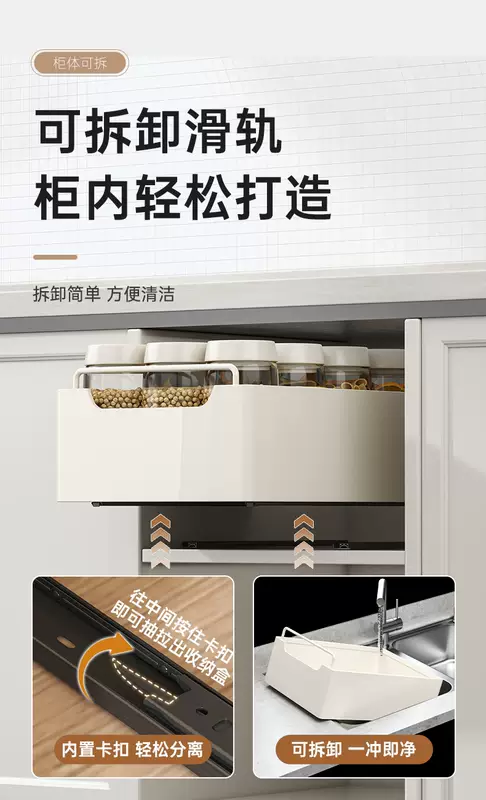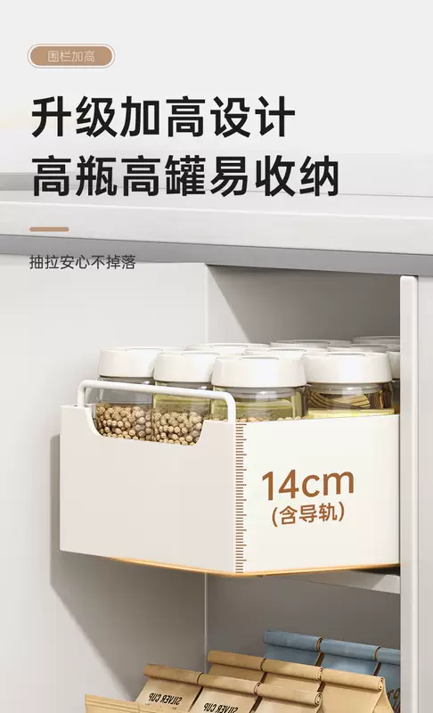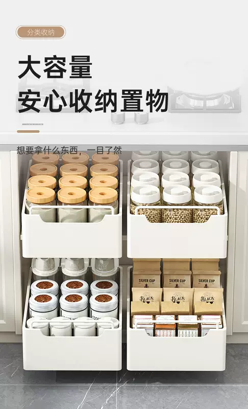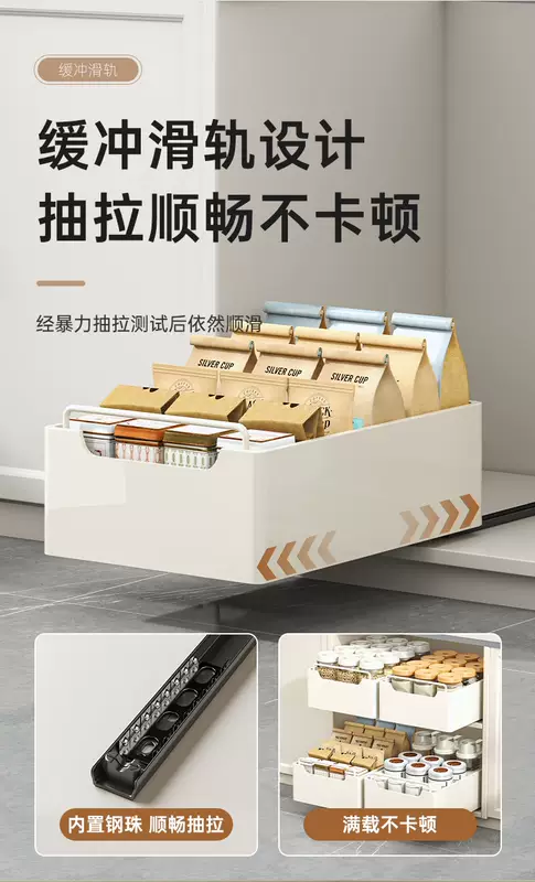 Yusenyi kitchen pull-out storage rack inside the cabinet drawer-type deep cabinet storage box under the sink narrow gap spice box storage basket milky white (heightened) 25 wide 43 deep pull-out storage box