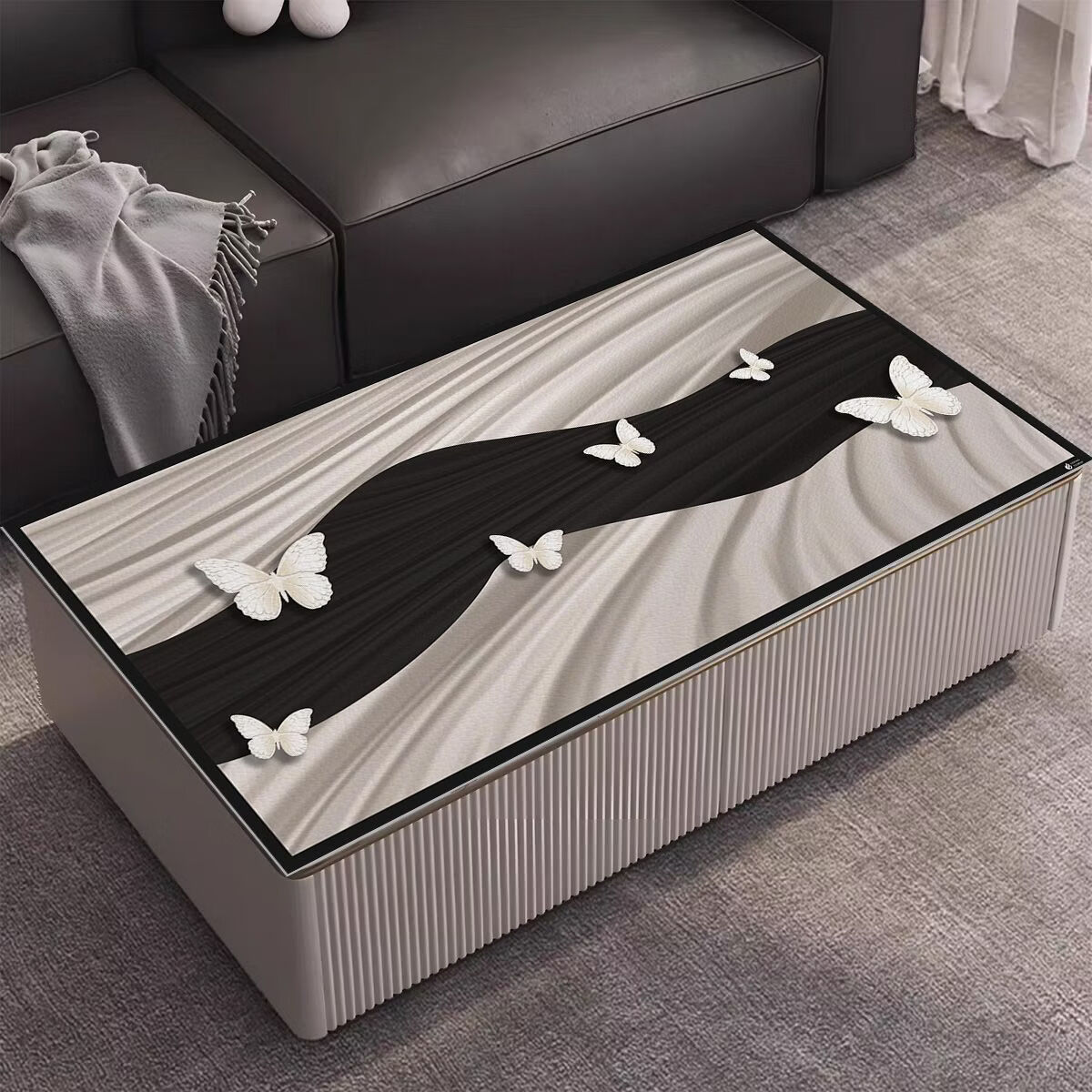 Fantasy light luxury simple high-end popular dining table mat coffee table mat desk mat table mat PVC waterproof and oil-proof 80x160cm Default hair Zhongtong Monet Butterfly Shadow