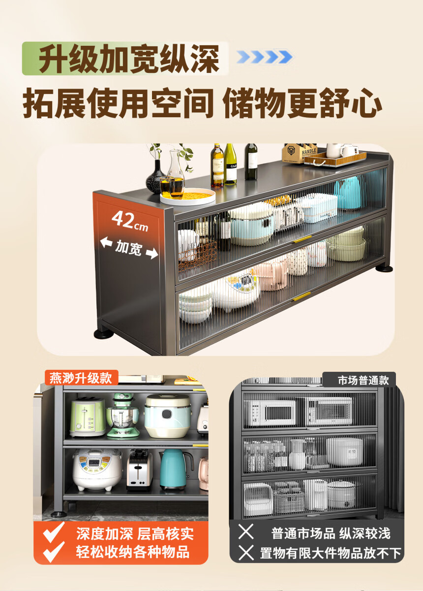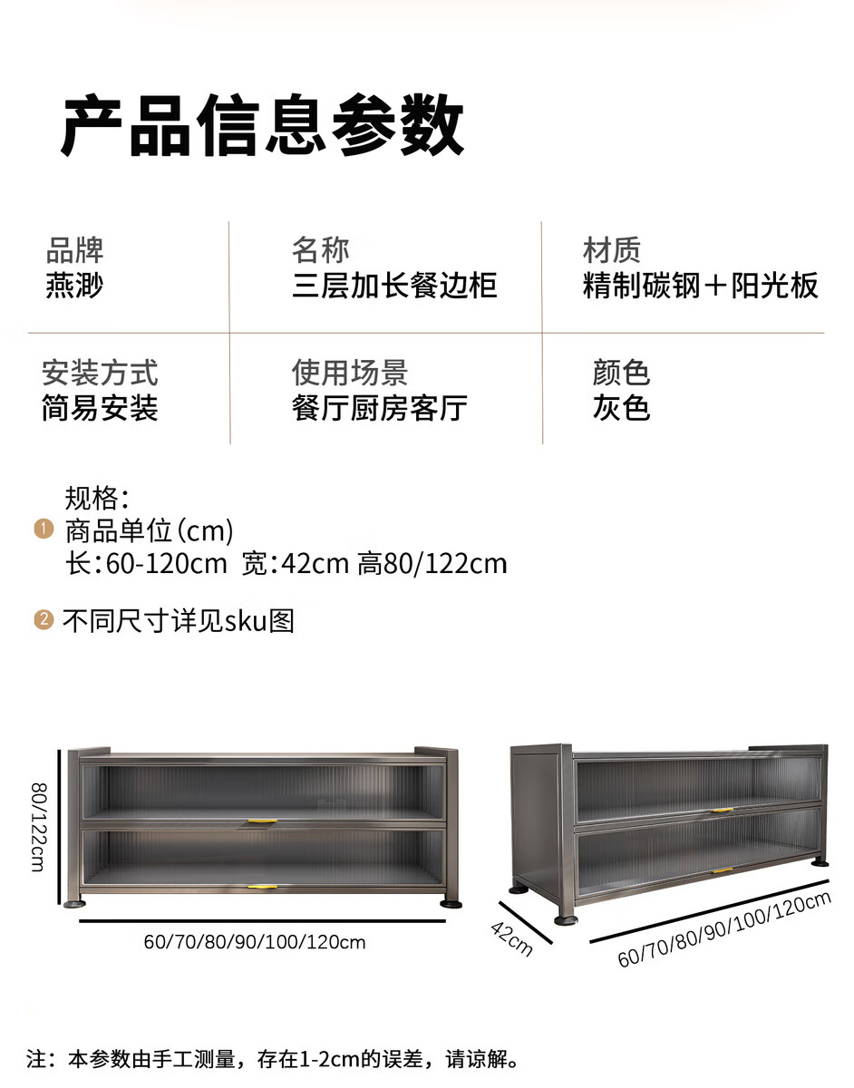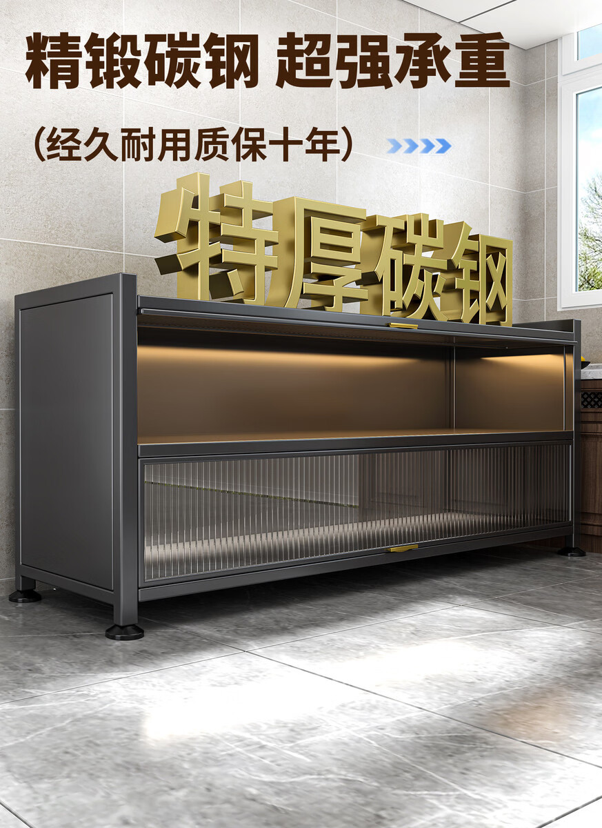 Yong Huan's new kitchen rack floor-standing cabinet multi-layer spice rack with countertop microwave storage rack multi-functional cupboard carbon steel countertop gray three-layer length 120x width 42x height 80 thickened