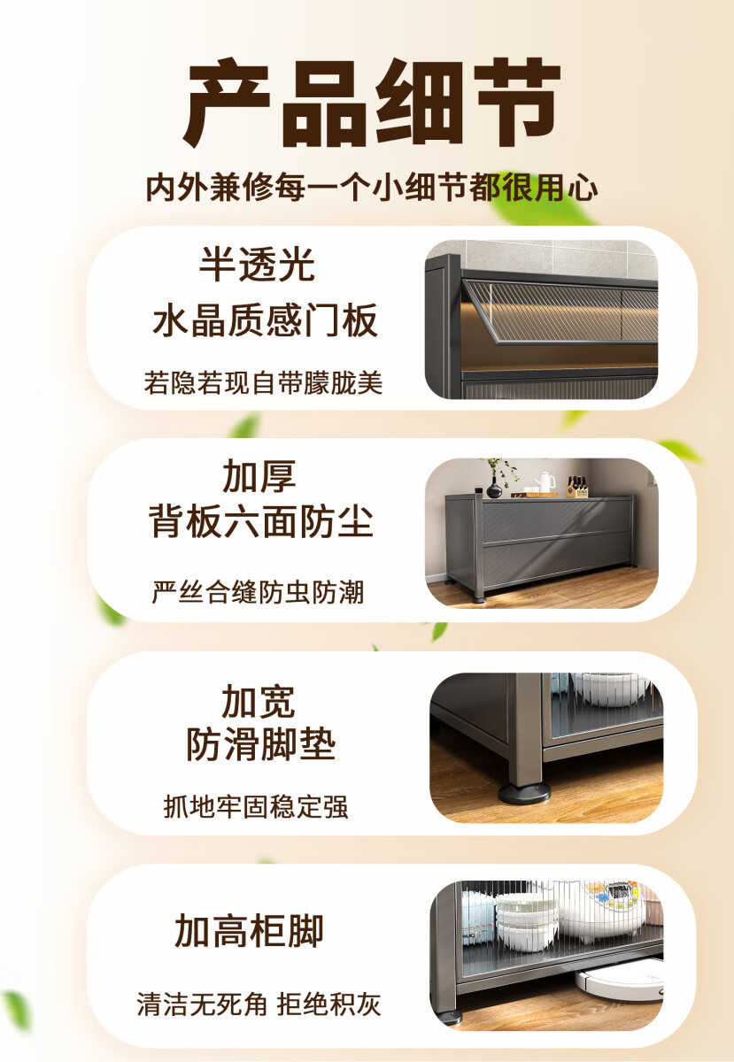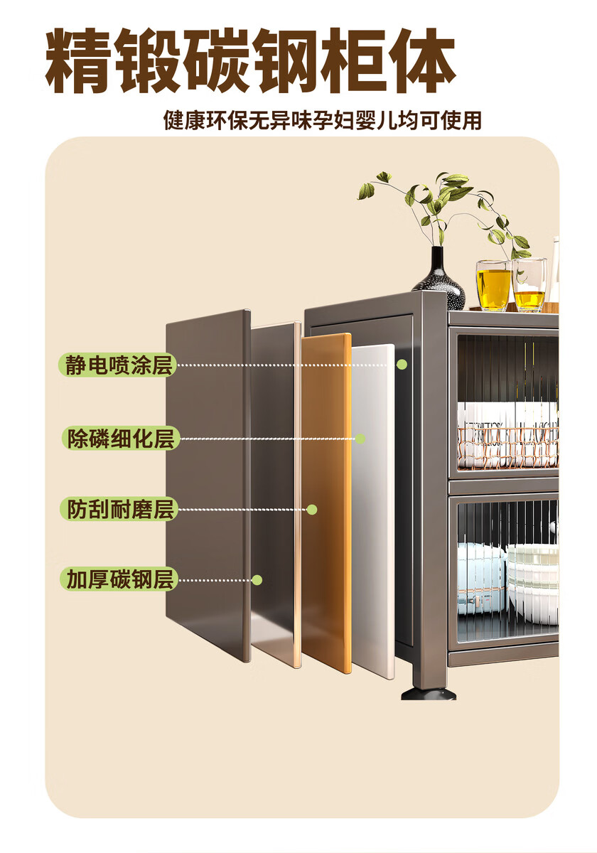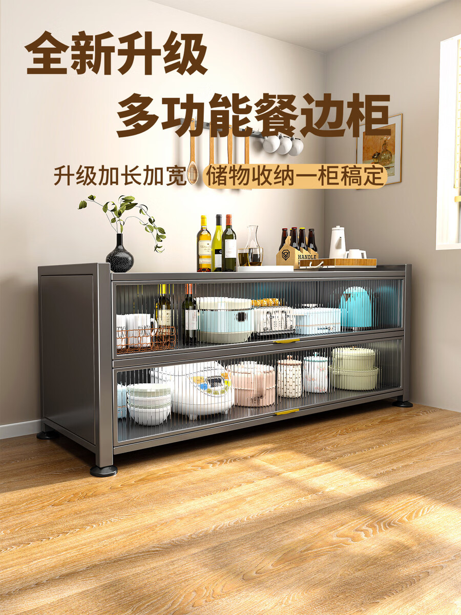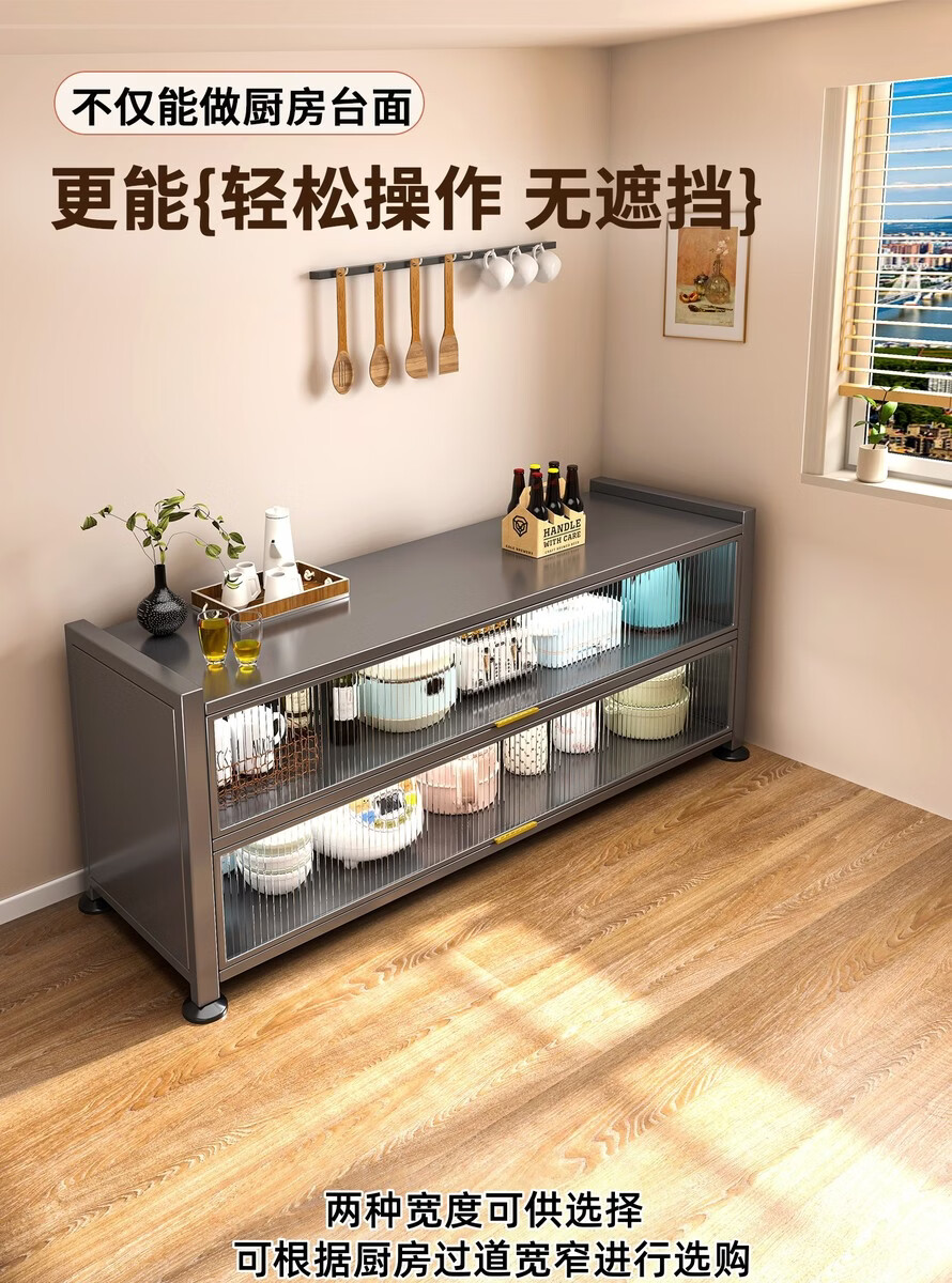Yong Huan's new kitchen rack floor-standing cabinet multi-layer spice rack with countertop microwave storage rack multi-functional cupboard carbon steel countertop gray three-layer length 120x width 42x height 80 thickened