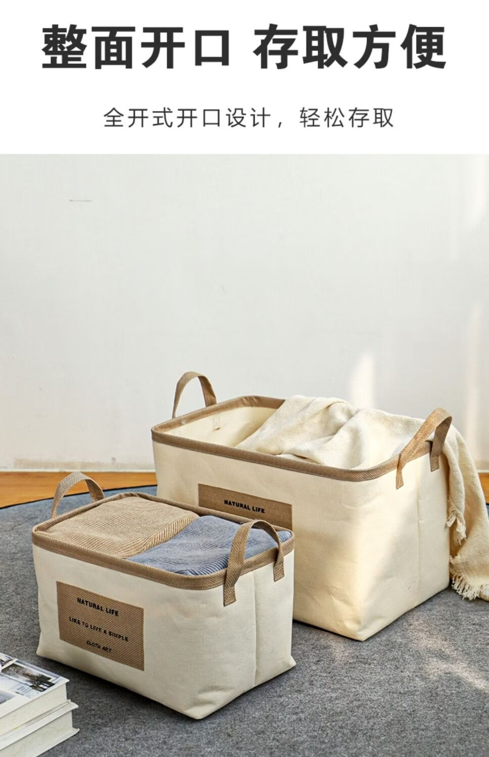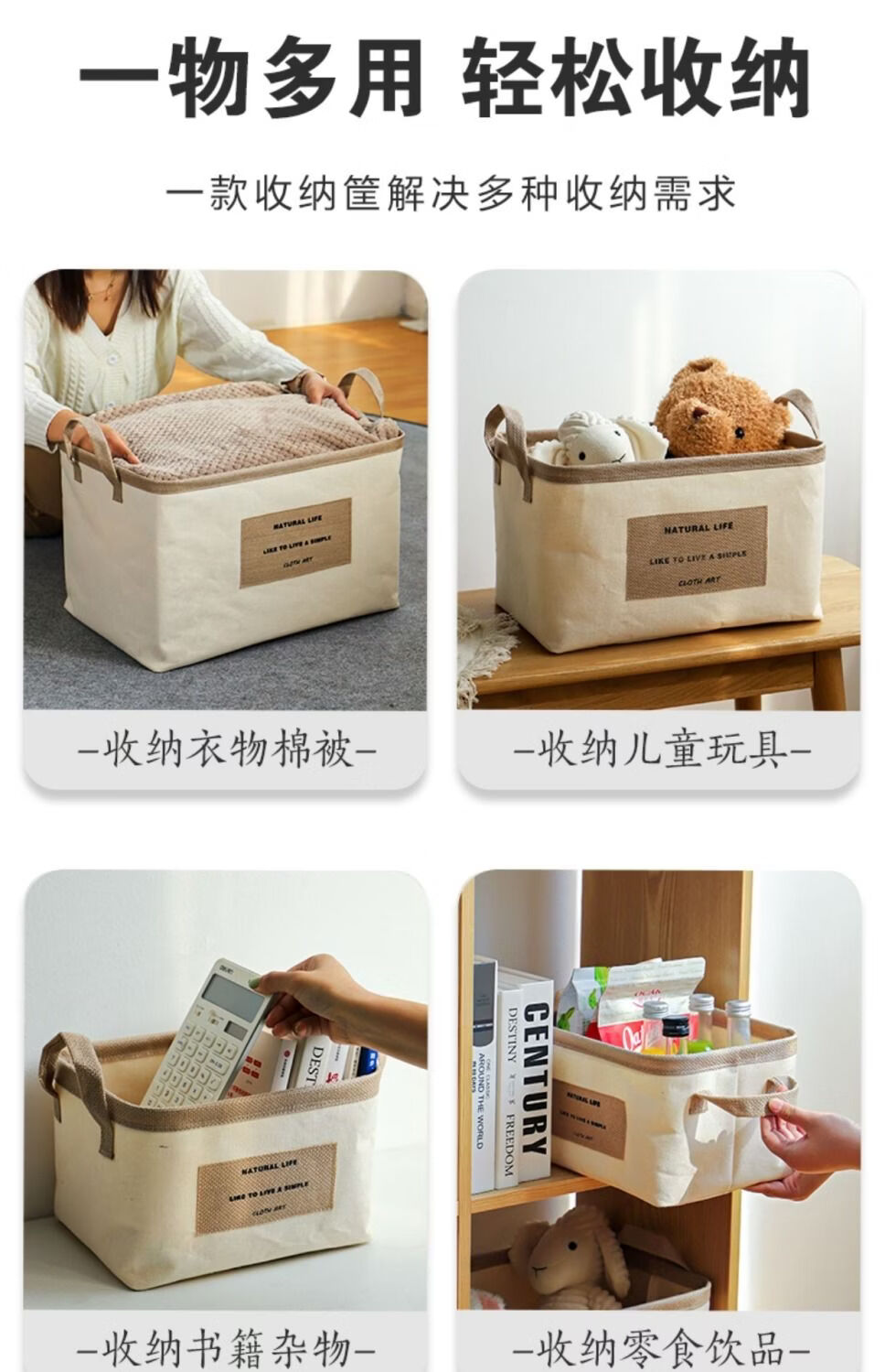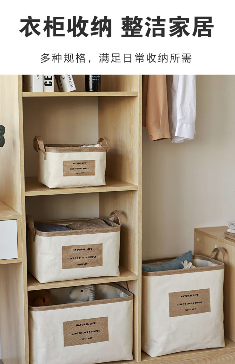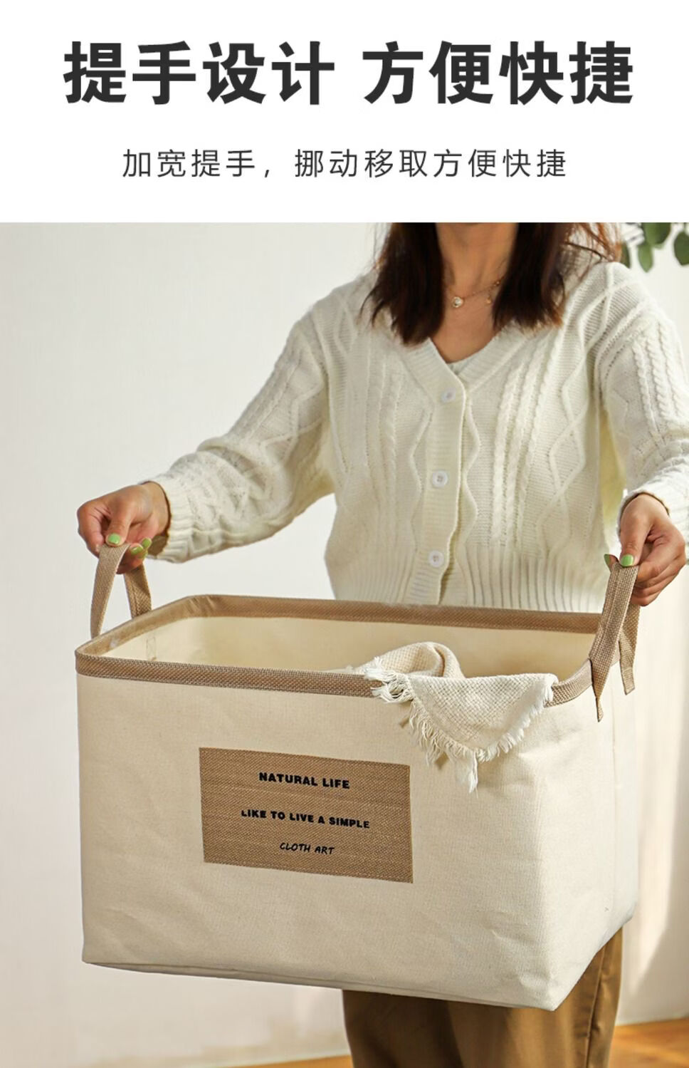 Fantasy clothes storage box foldable large cotton and linen fabric desktop snack toy clothing storage basket box home small cotton and linen splicing basket foldable
