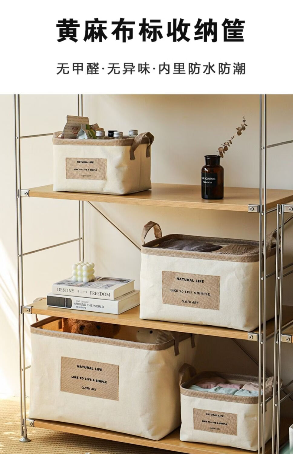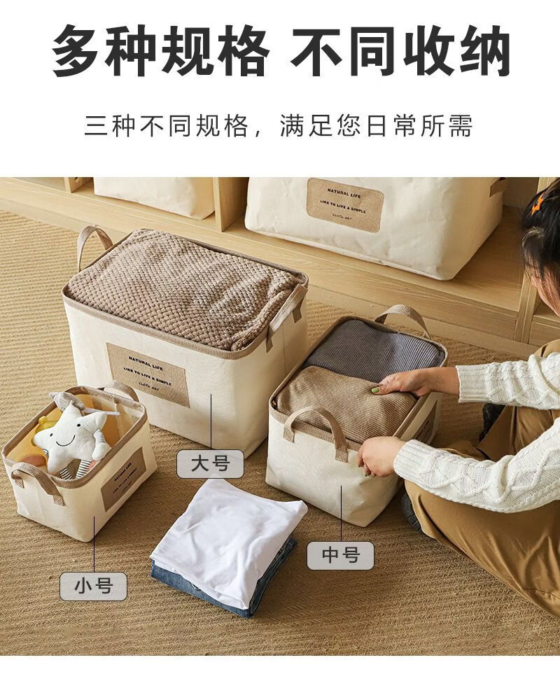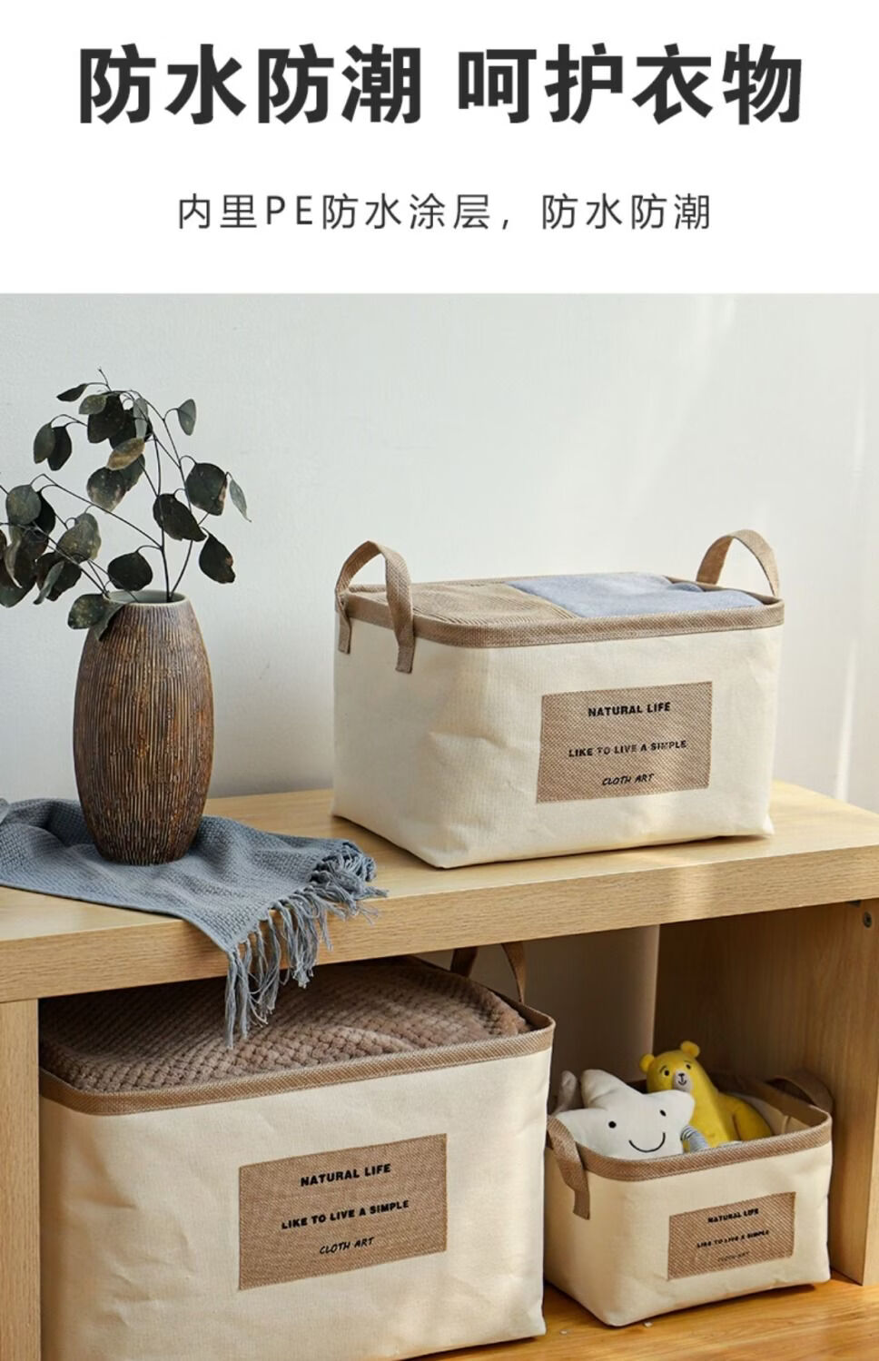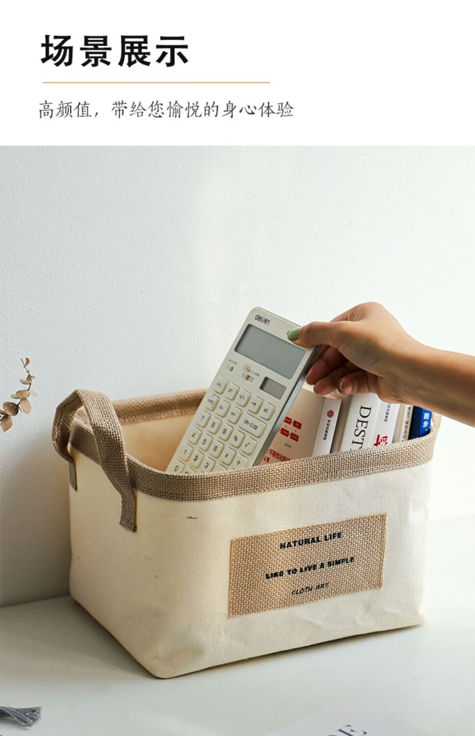 Fantasy clothes storage box foldable large cotton and linen fabric desktop snack toy clothing storage basket box home small cotton and linen splicing basket foldable