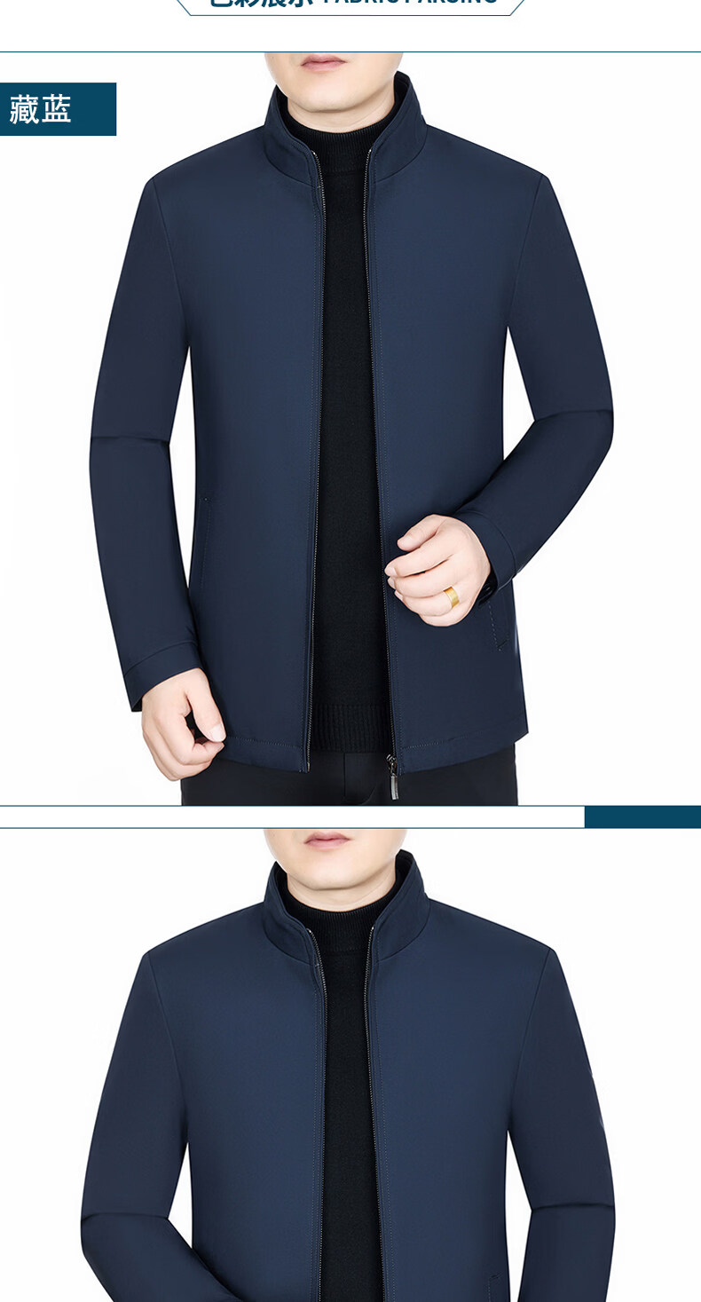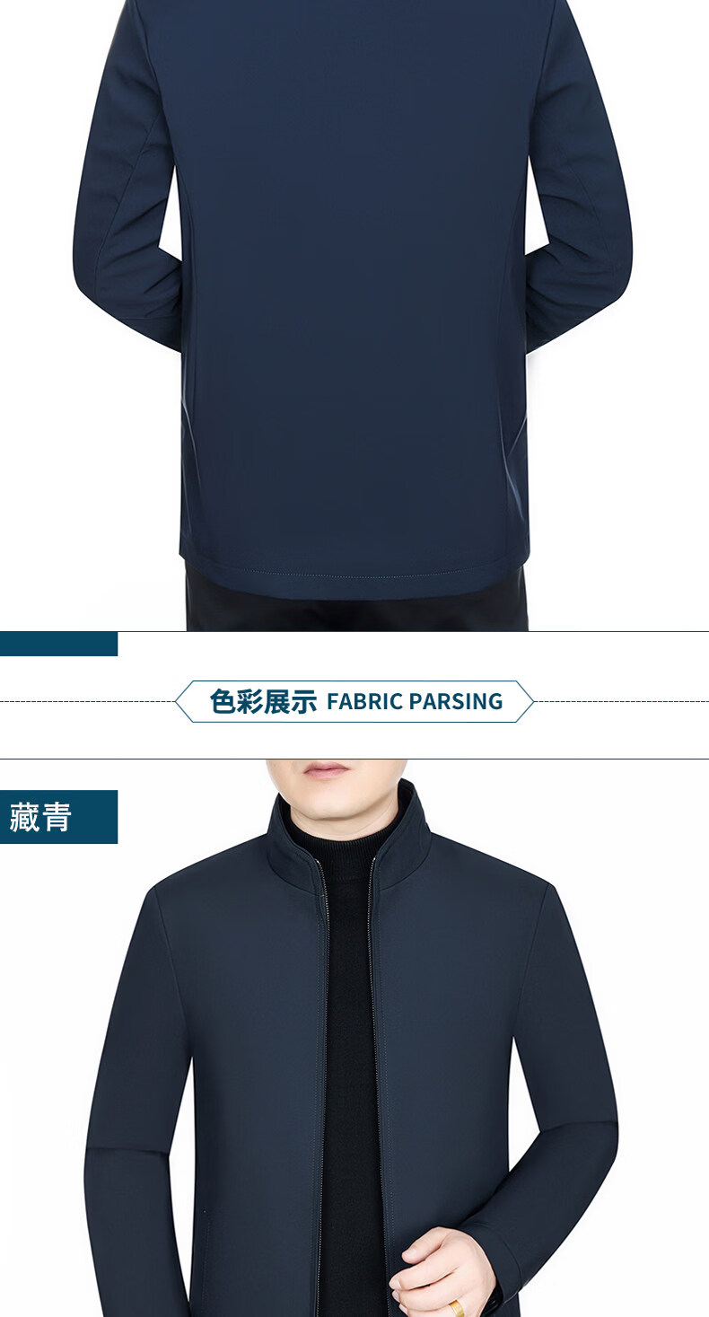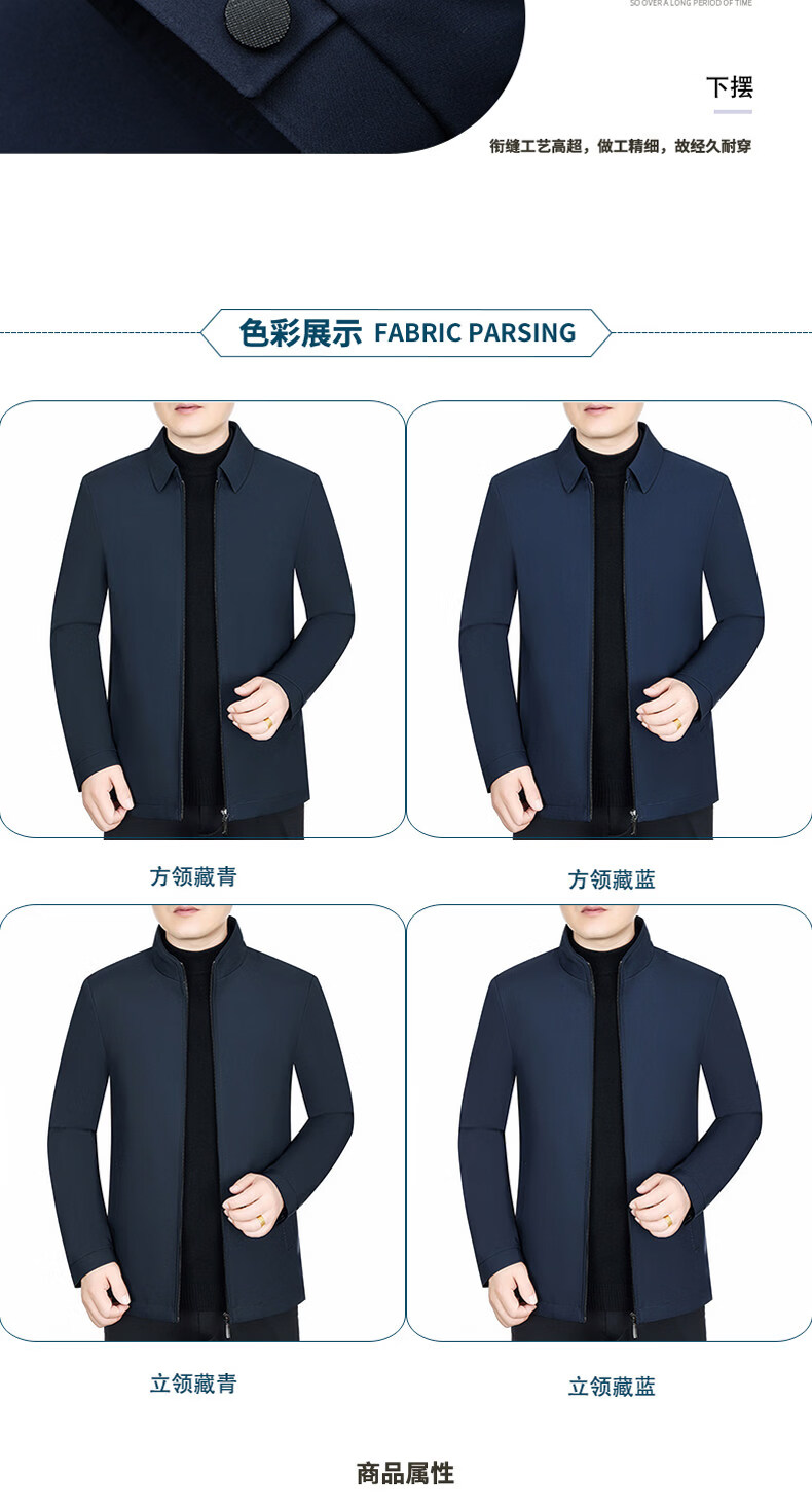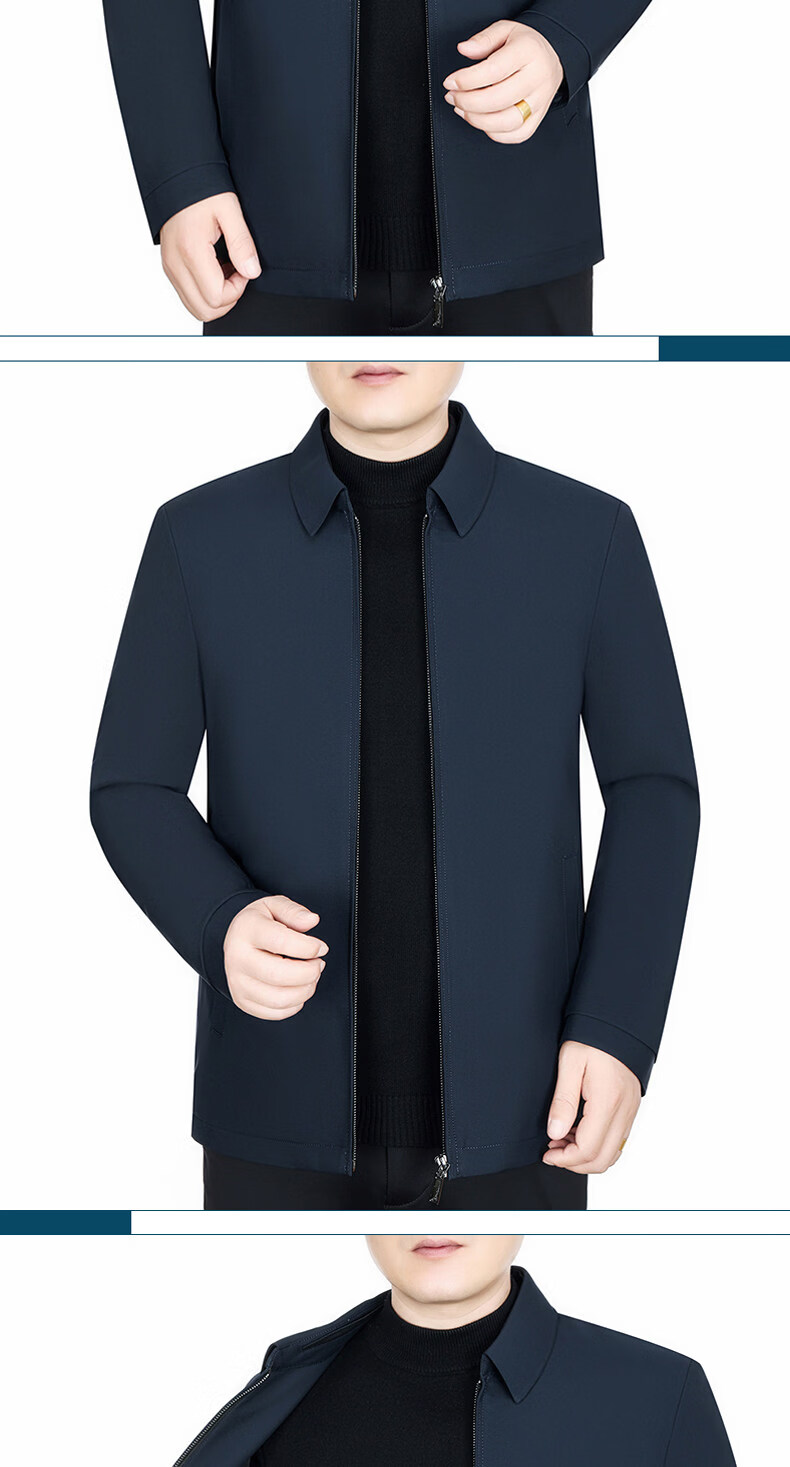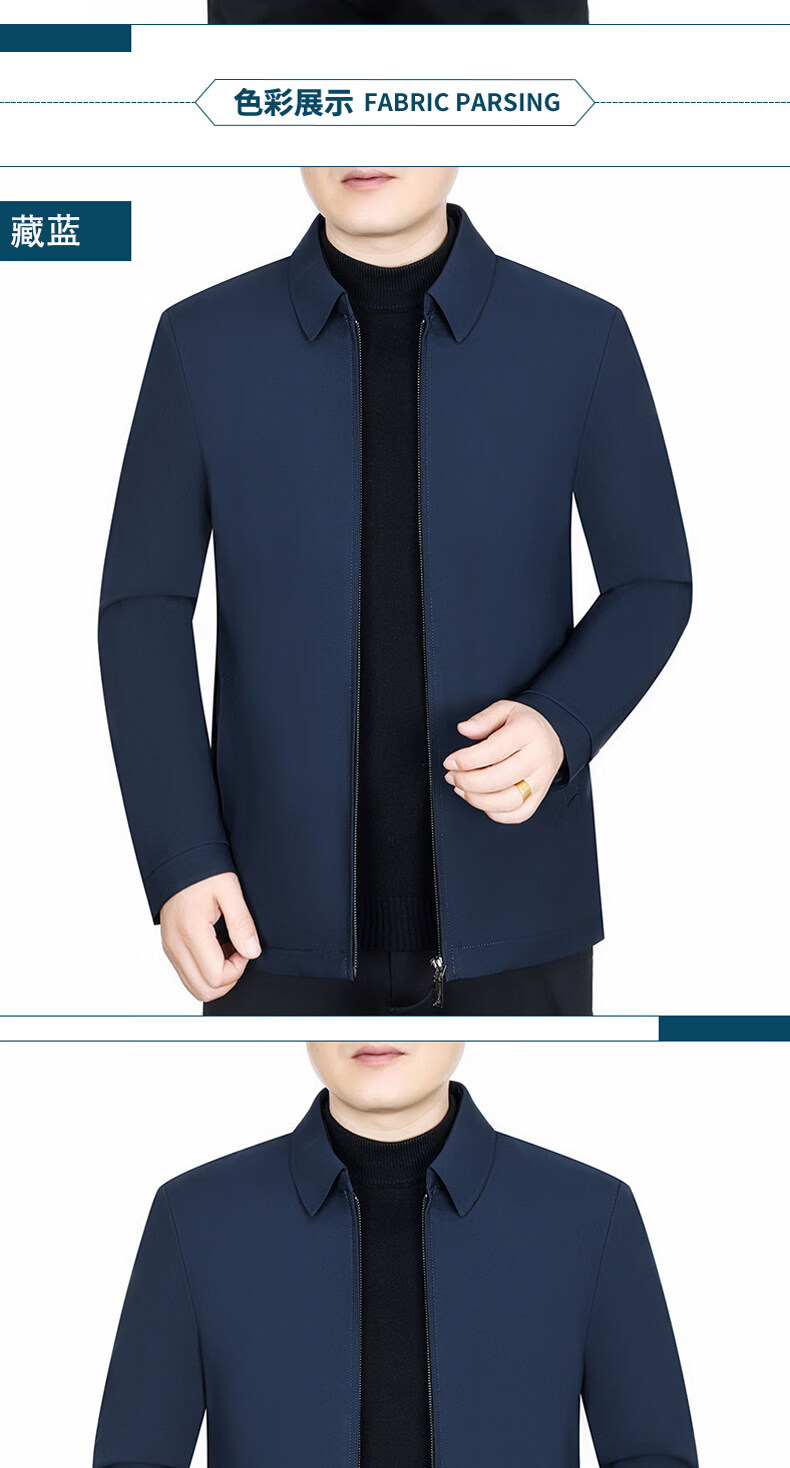 JEEP SPIRIT men's jacket stand collar cotton coat autumn and winter velvet thickened cotton coat casual jacket middle-aged dad wear navy blue lapel style 3XL 190/104A 170-185 catties