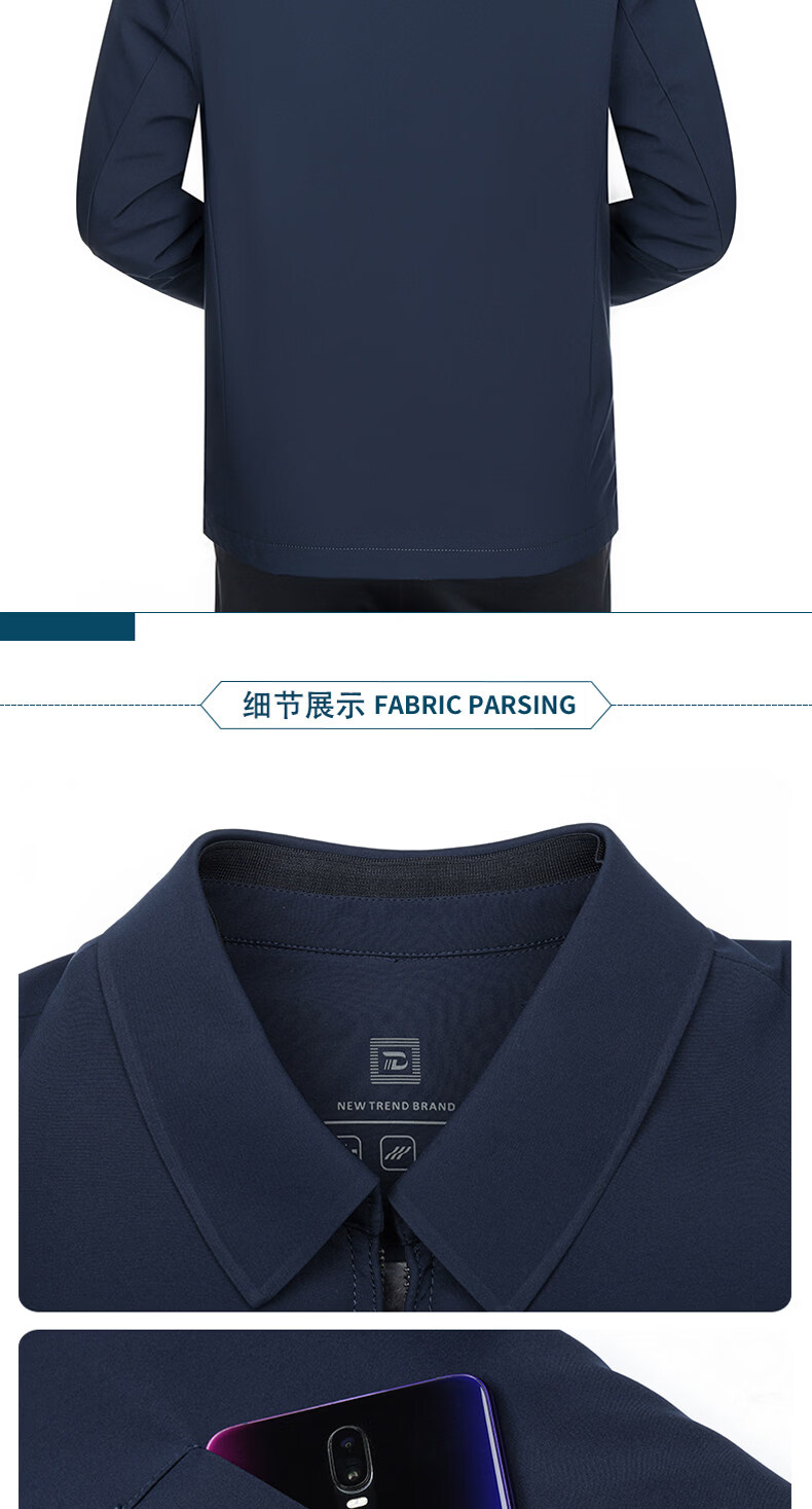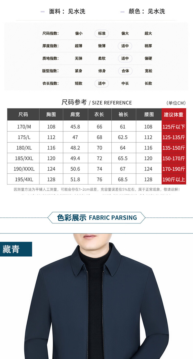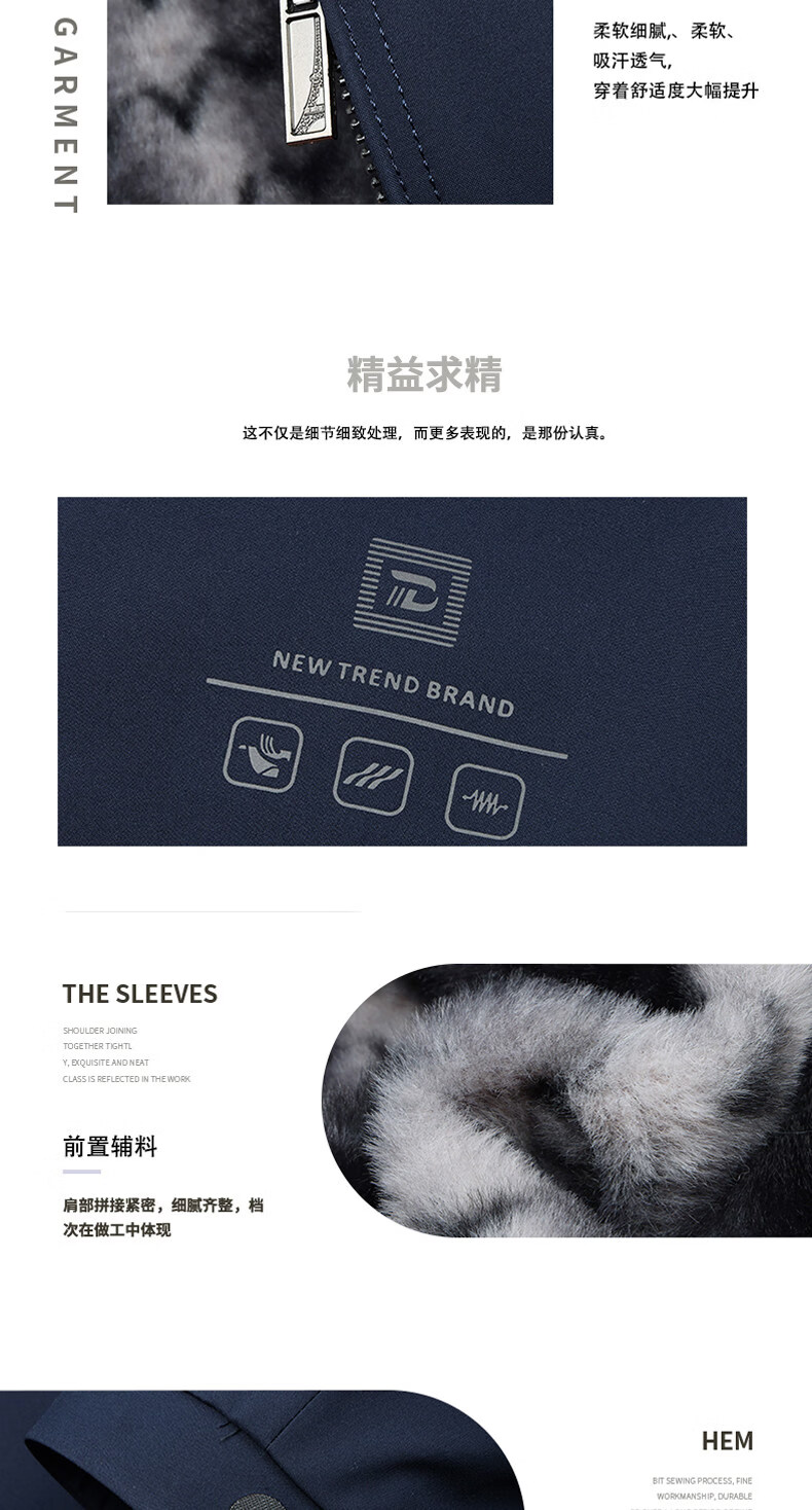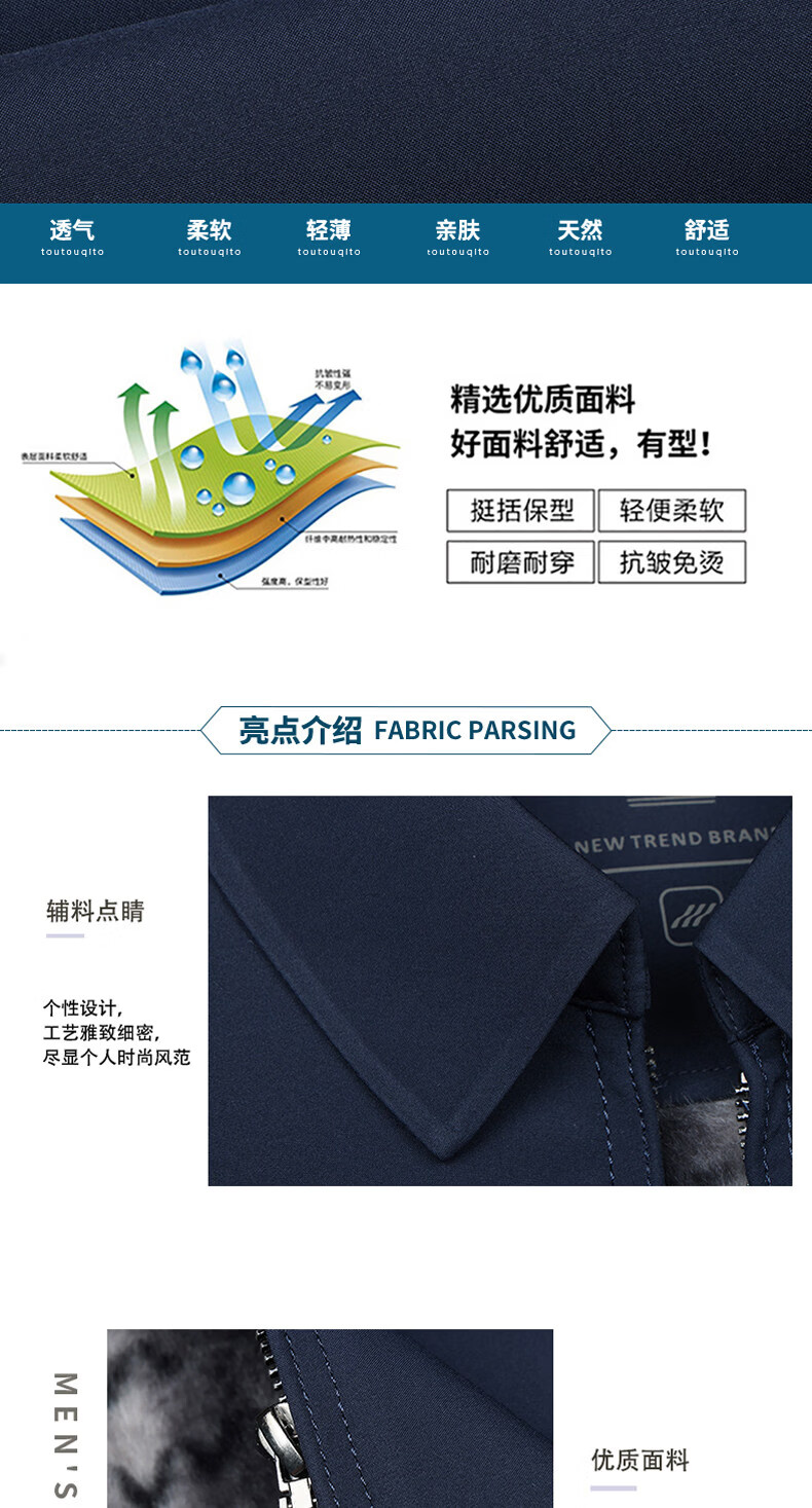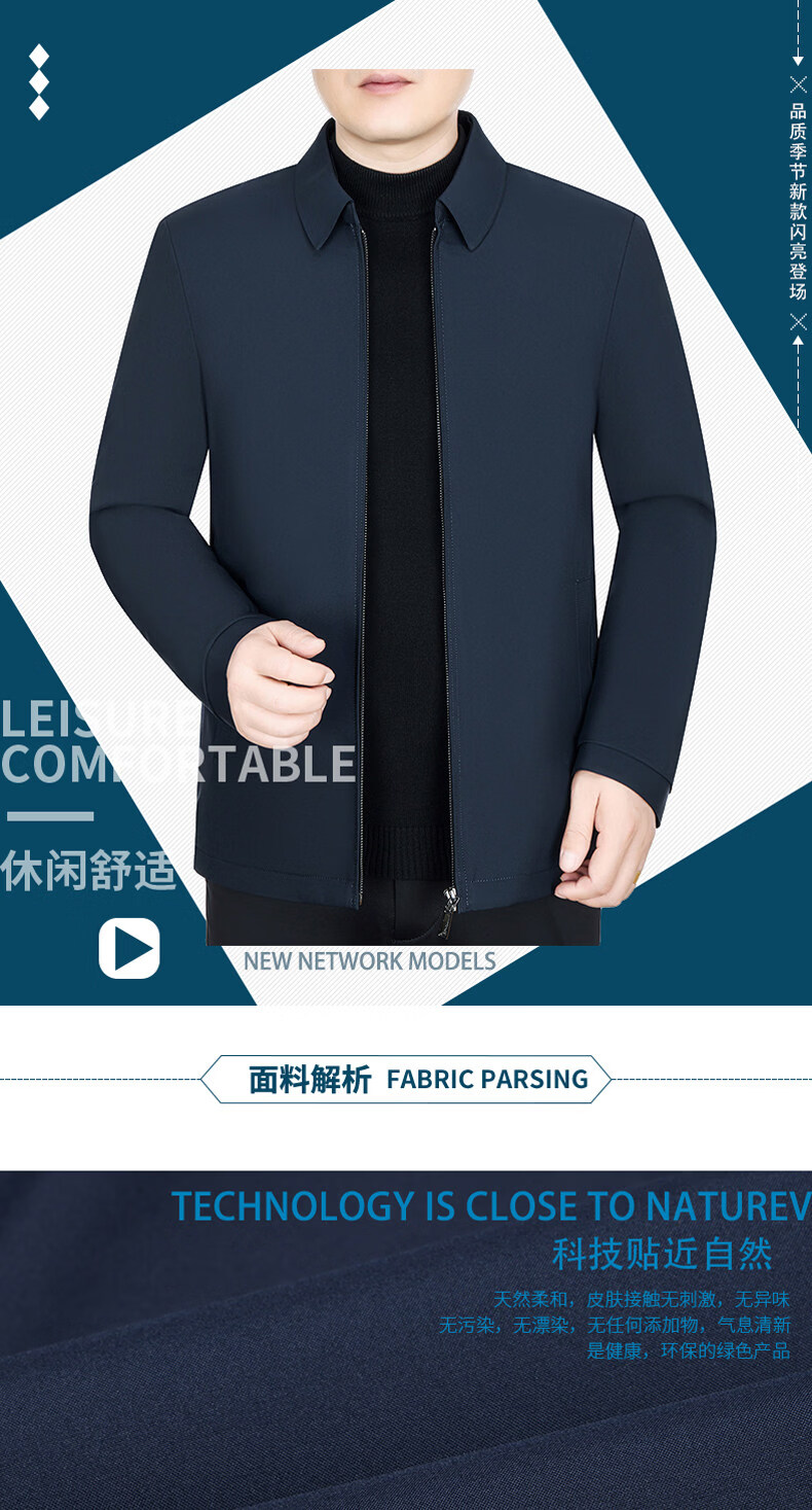 JEEP SPIRIT men's jacket stand collar cotton coat autumn and winter velvet thickened cotton coat casual jacket middle-aged dad wear navy blue lapel style 3XL 190/104A 170-185 catties