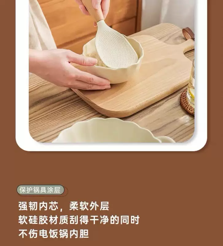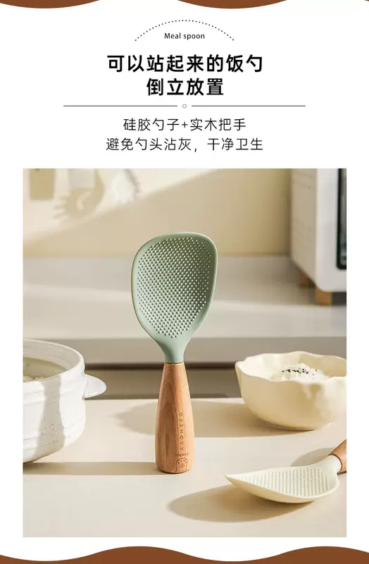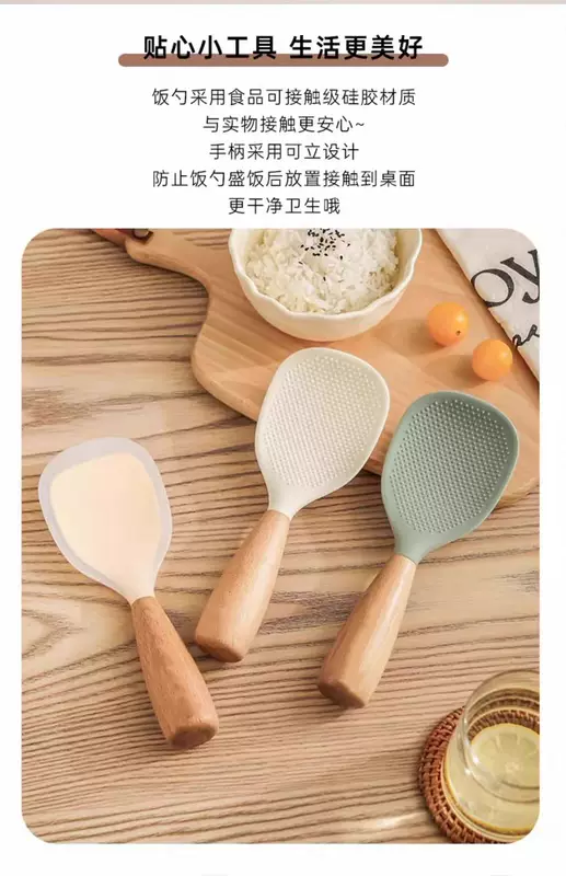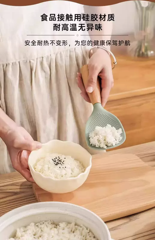 Yusenyi silicone rice spoon food-grade household non-damaging pot rice cooker rice-resistant high-temperature beech wood stand-up rice shovel spoon stand-up rice spoon (food grade silicone) translucent yellow