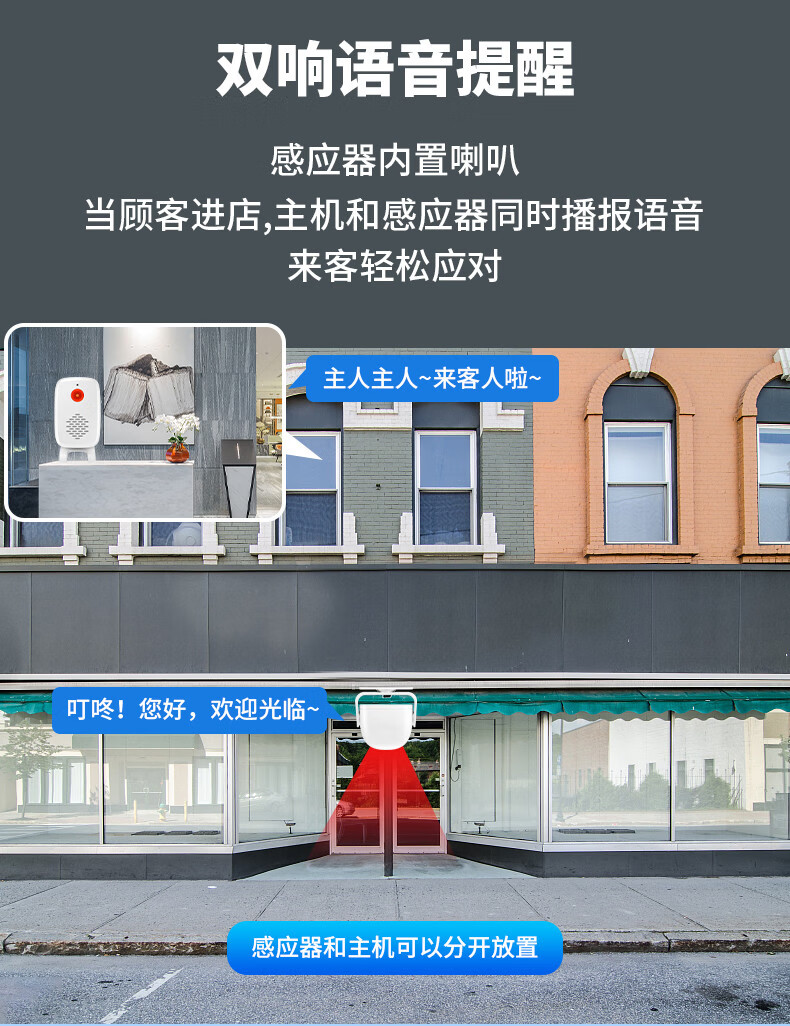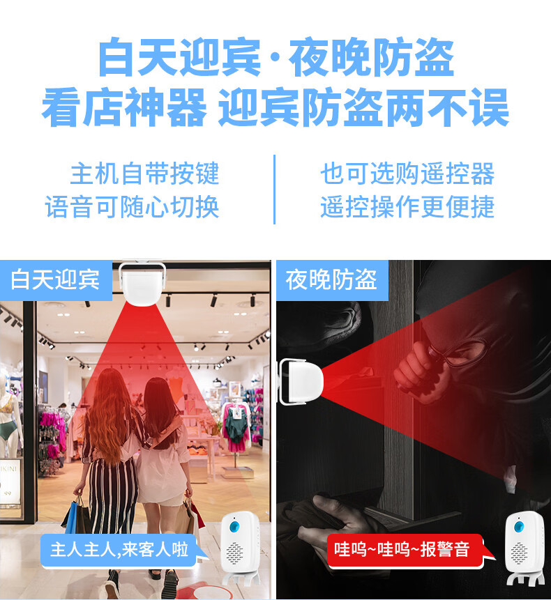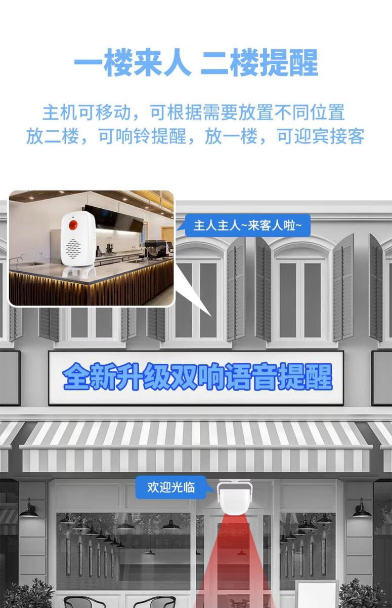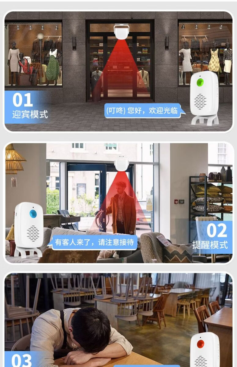 Sanqihu door welcome sensor split doorbell welcome store supermarket entrance voice prompt alarm F rechargeable model 2 bell host 1 sensor (comes with remote control)
