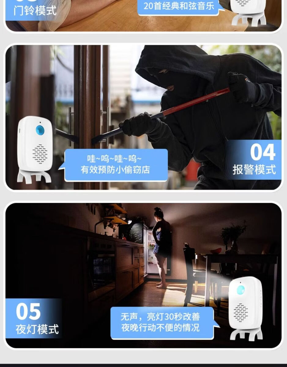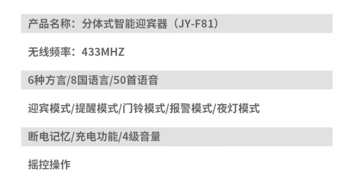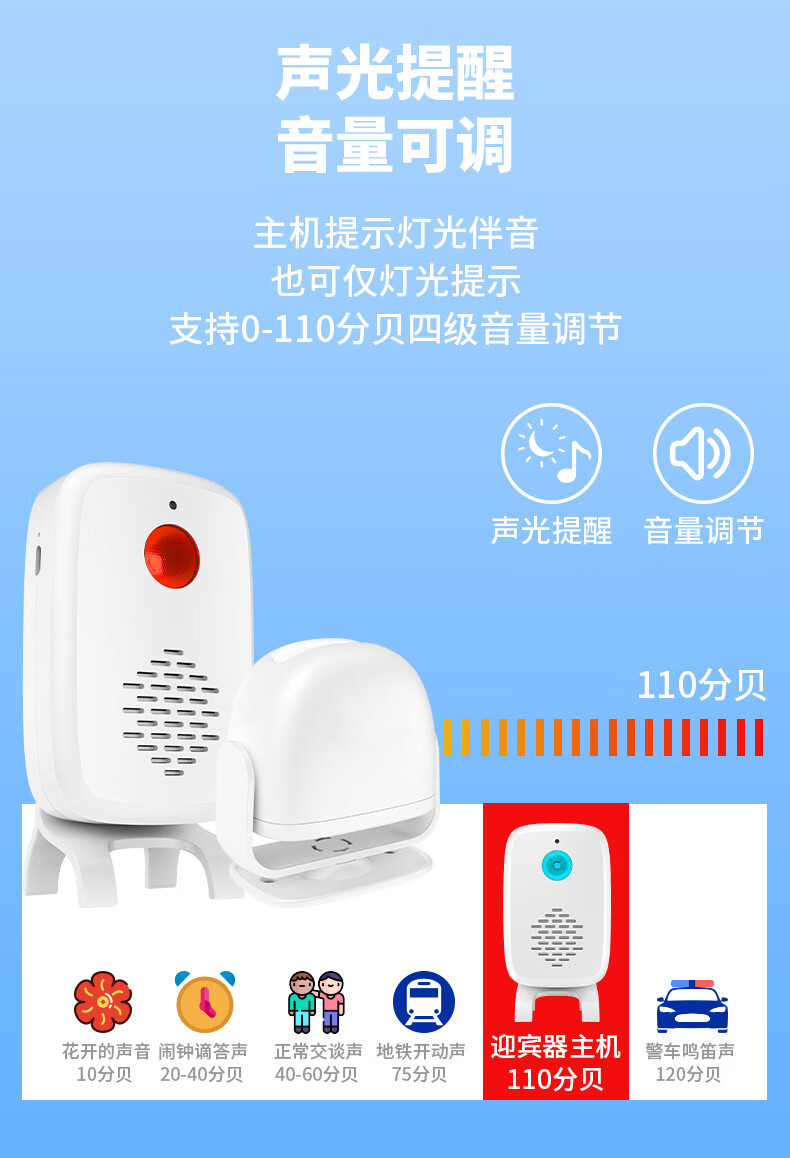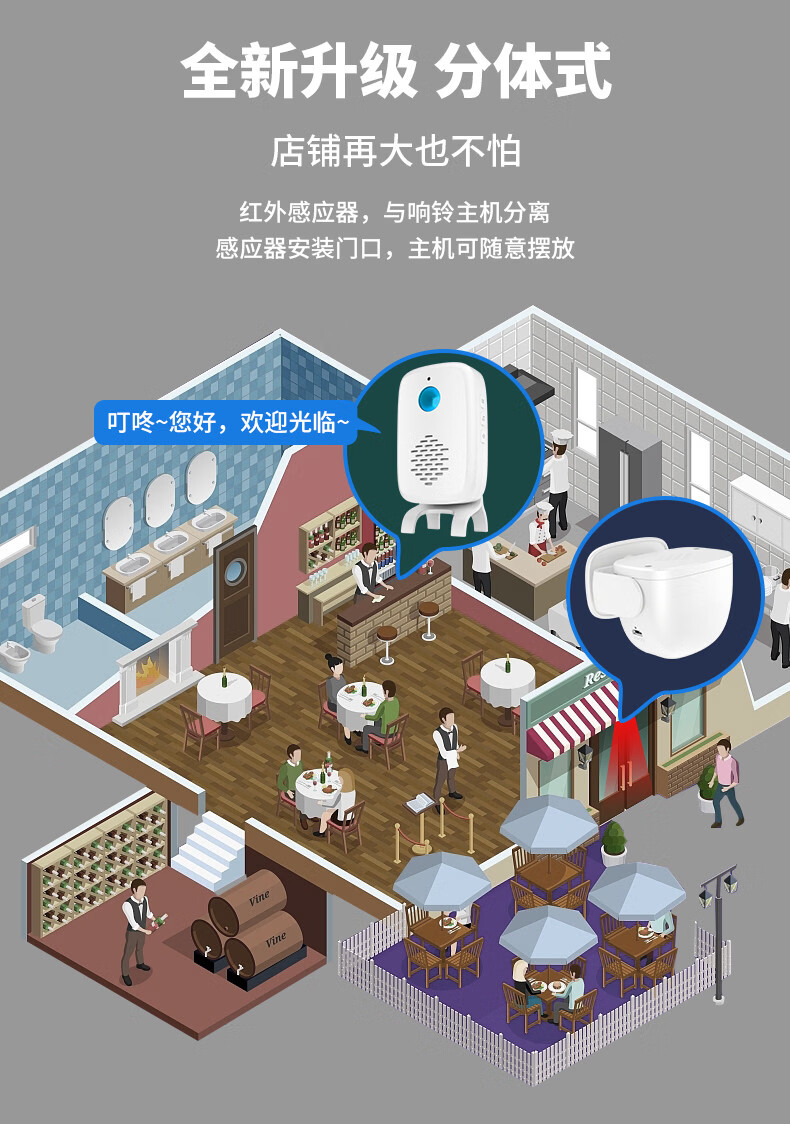 Sanqihu door welcome sensor split doorbell welcome store supermarket entrance voice prompt alarm F rechargeable model 2 bell host 1 sensor (comes with remote control)
