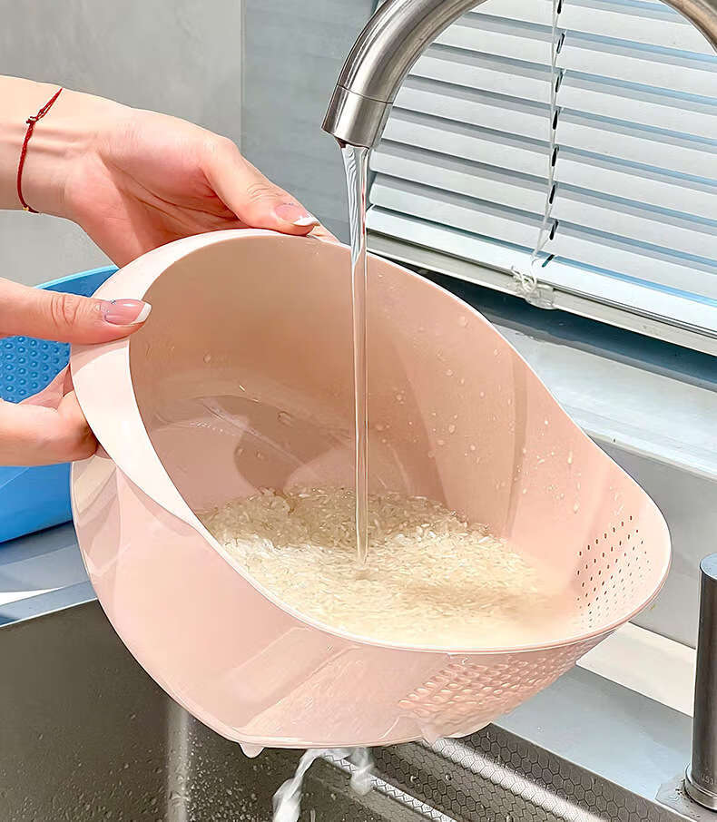 Yusenyi Kitchen Large Rice Basin Washing Vegetables and Fruits Household Water Filter Rice Washing Tool Pink