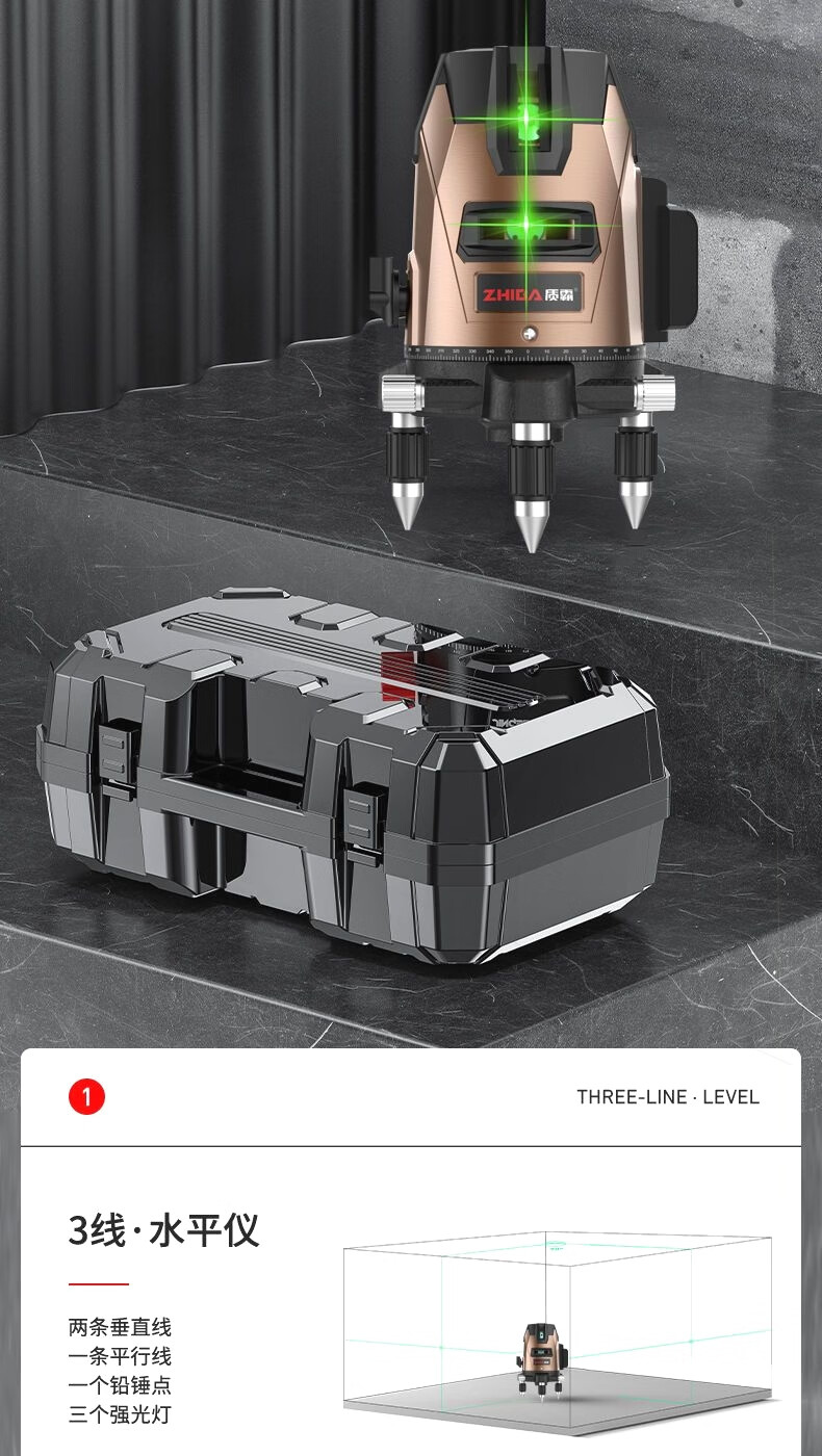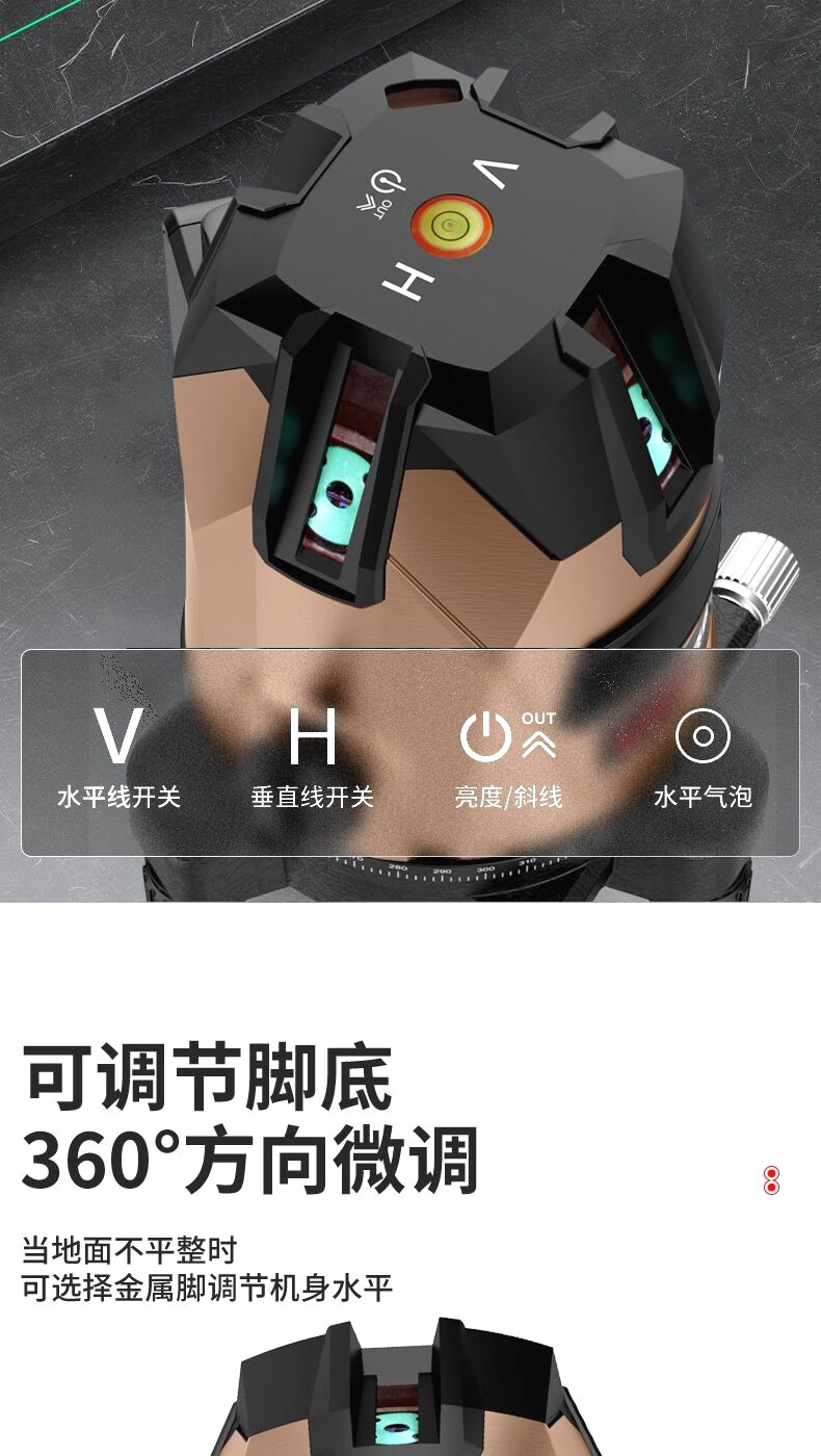 RSRDDY level meter green light 3 lines 5 lines laser high precision automatic leveling water meter strong light green light 3 lines with enhanced point digital display + tripod