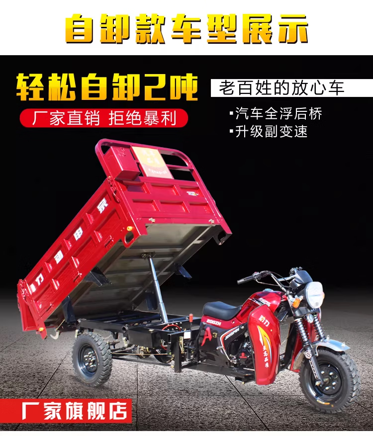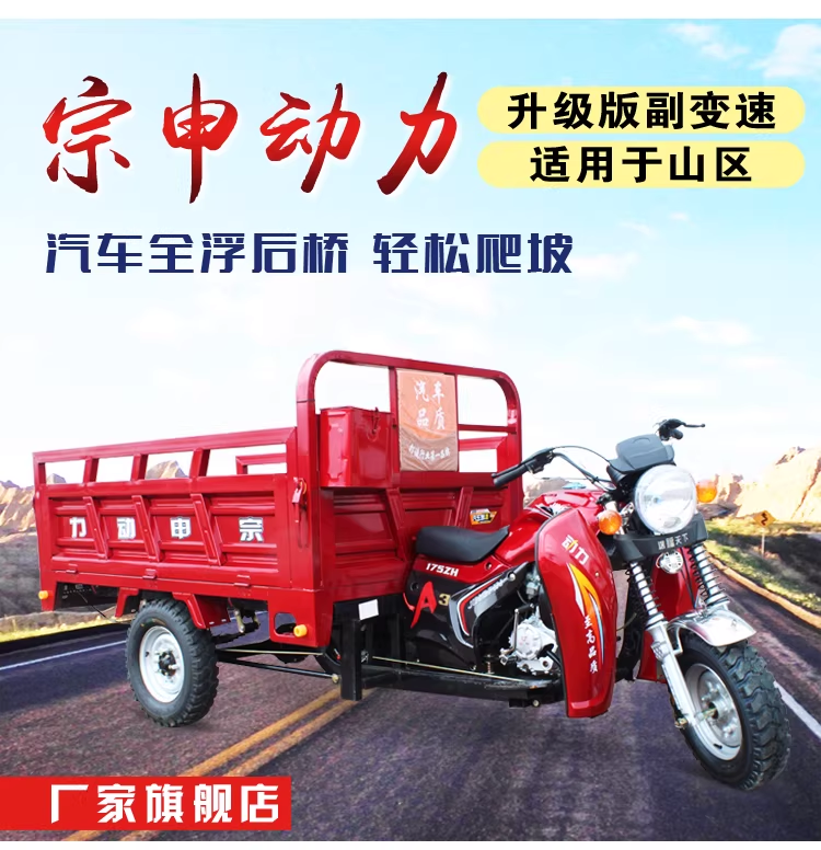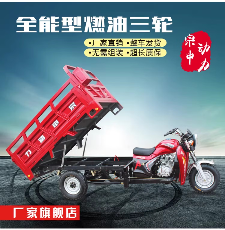 Zongshen three-wheeled new model Zongshen three-wheeled motorcycle fuel three-wheeled motorcycle gasoline tricycle agricultural dump truck 175 air-cooled length 2m wide 1.3m 12