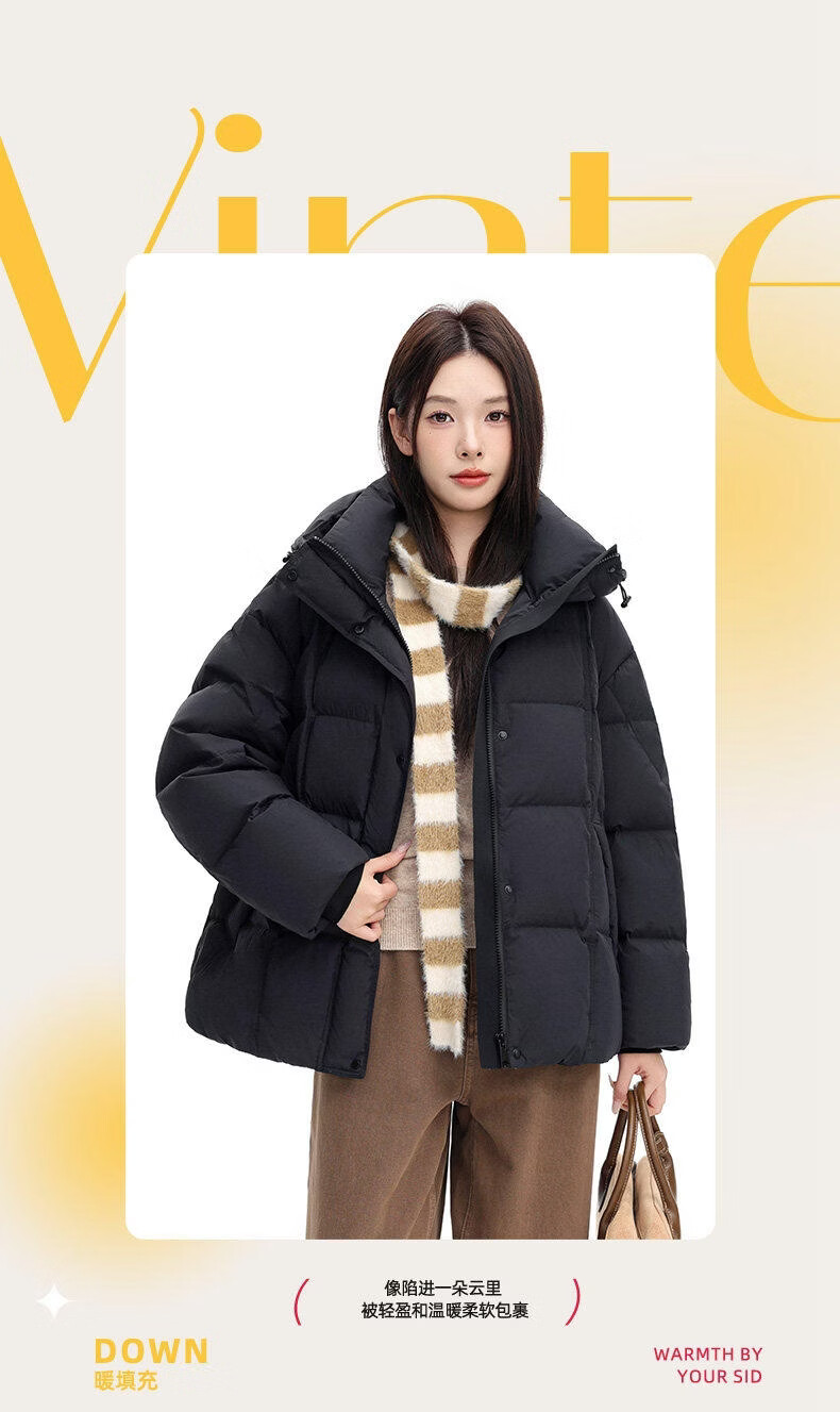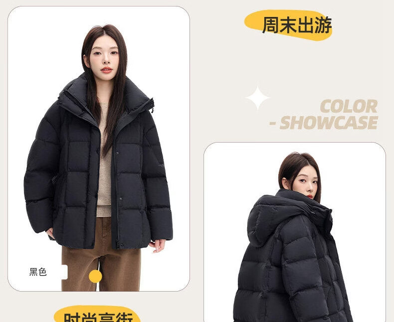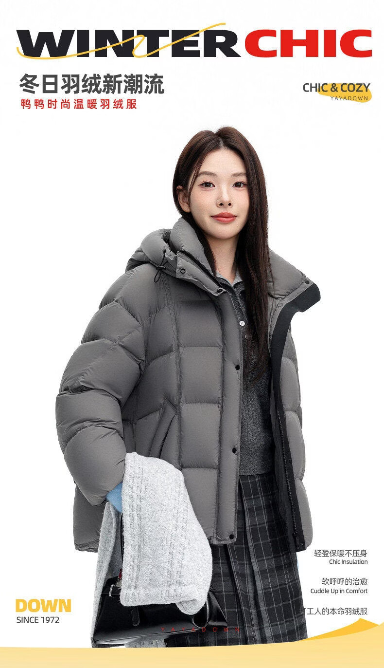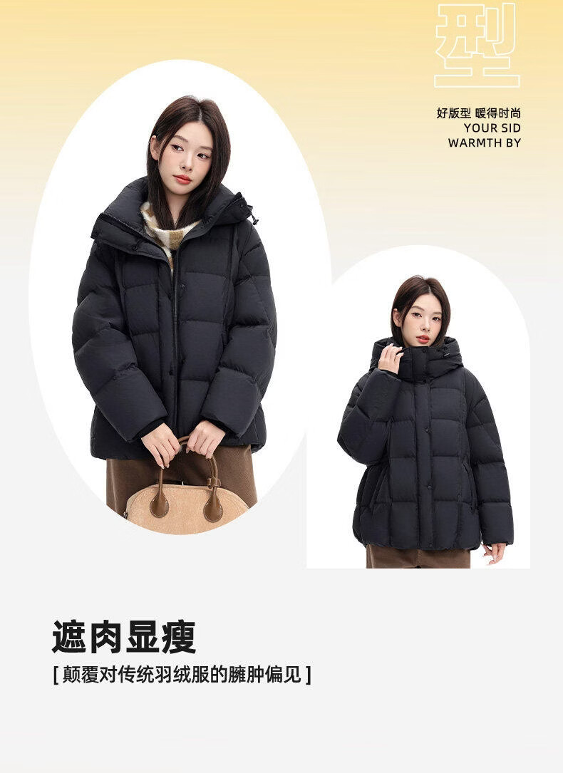 YAYA official authentic down jacket for women 2026 new fashion cloud-like puff hooded thickened 90 duck down warm jacket black L (165)