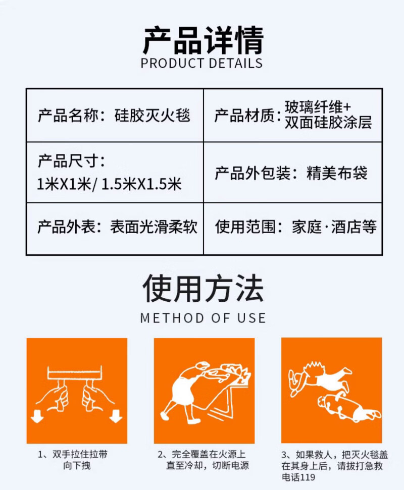 Fire Speech Same Style Commercial Equipment Catering National Standard Certification Home Kitchen Fire Blanket 1 Meter 1 Meter Silicone Fire Blanket