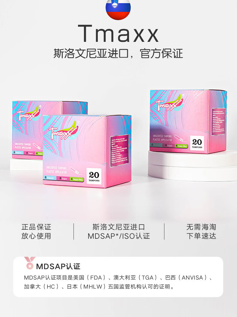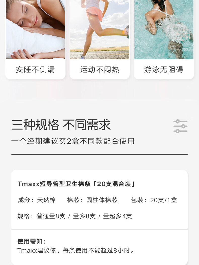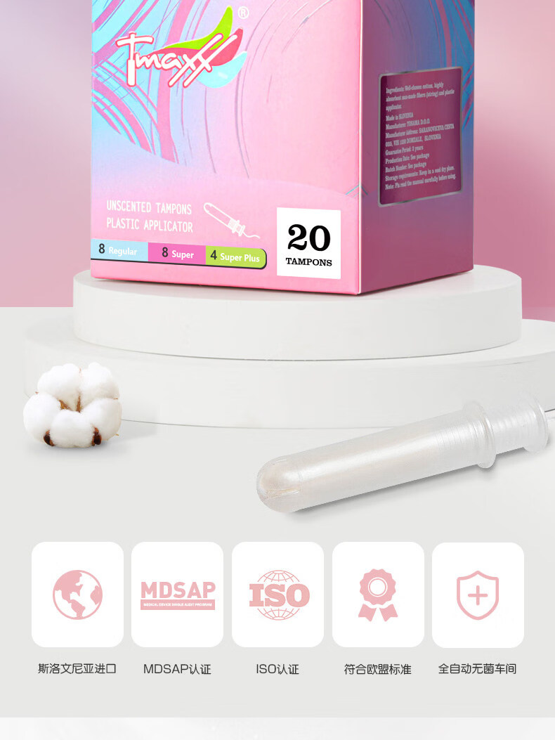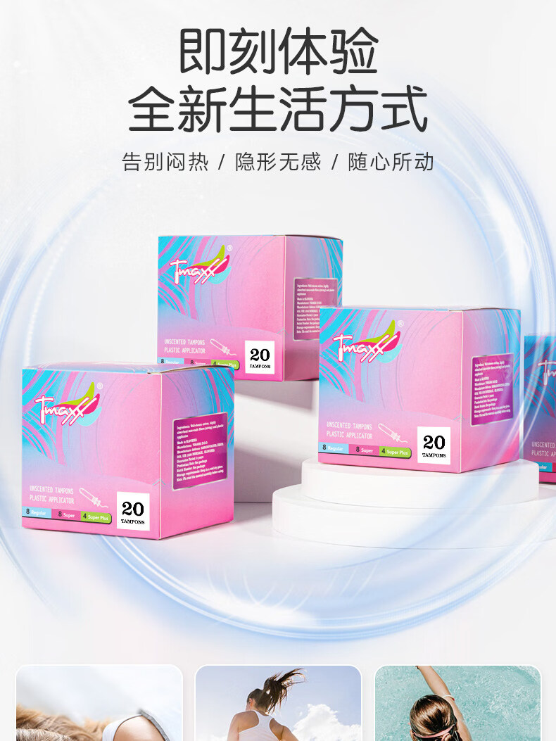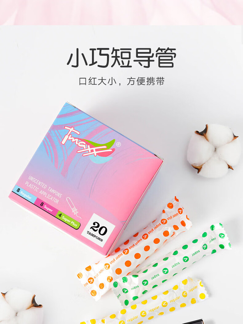 Houjiantang compact short catheter tampon stick for menstrual swimming, extra large pack of 20 pcs, 2 boxes