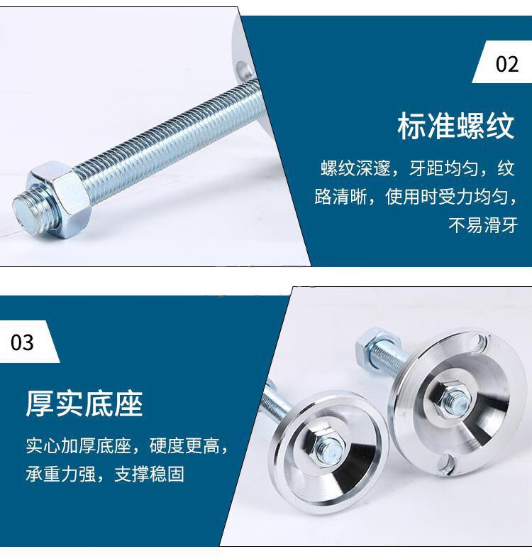 Junmo heavy-duty foot cup m16 carbon steel support fixed foot m12 bolt screw m20 galvanized mechanical adjustable machine foot 40 screws 10*50