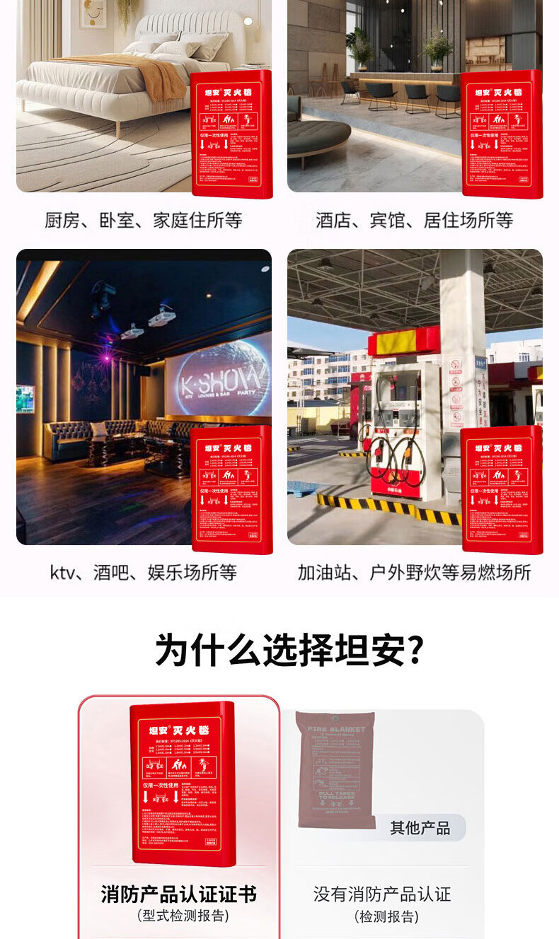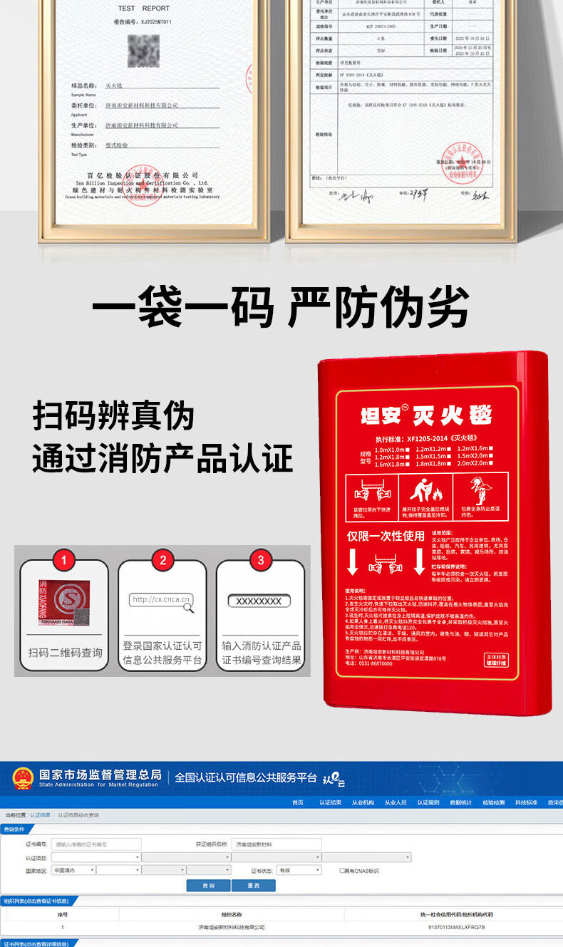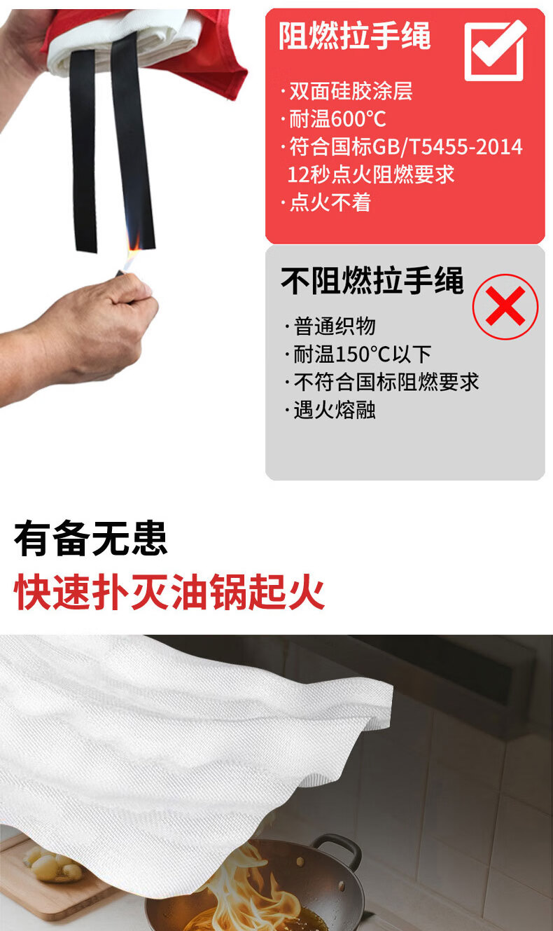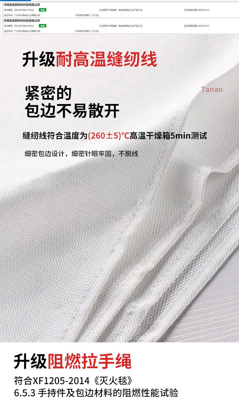 Tan'an Fire Blanket National Fire Certification Fire Blanket Household National Standard Fire Blanket Kitchen Fire Escape Blanket Fire Equipment 1.2M*1.8M Bag 1090g Fire Certification Product