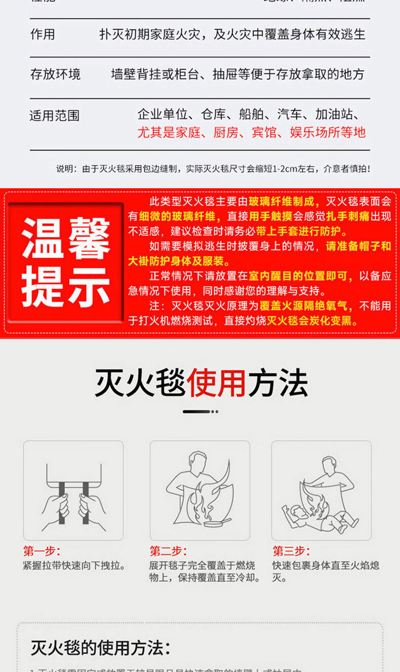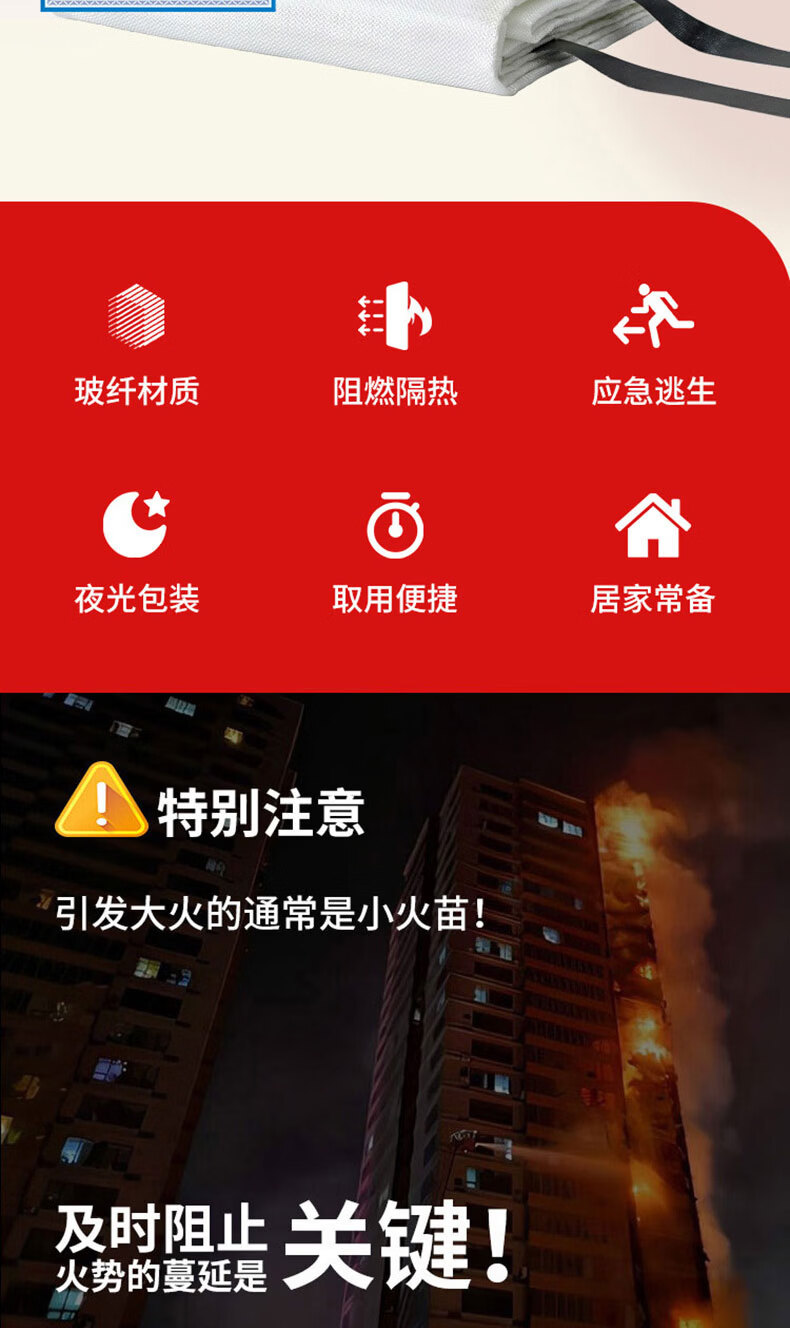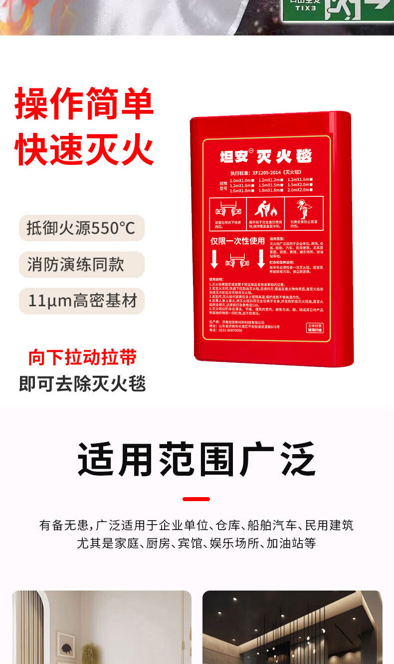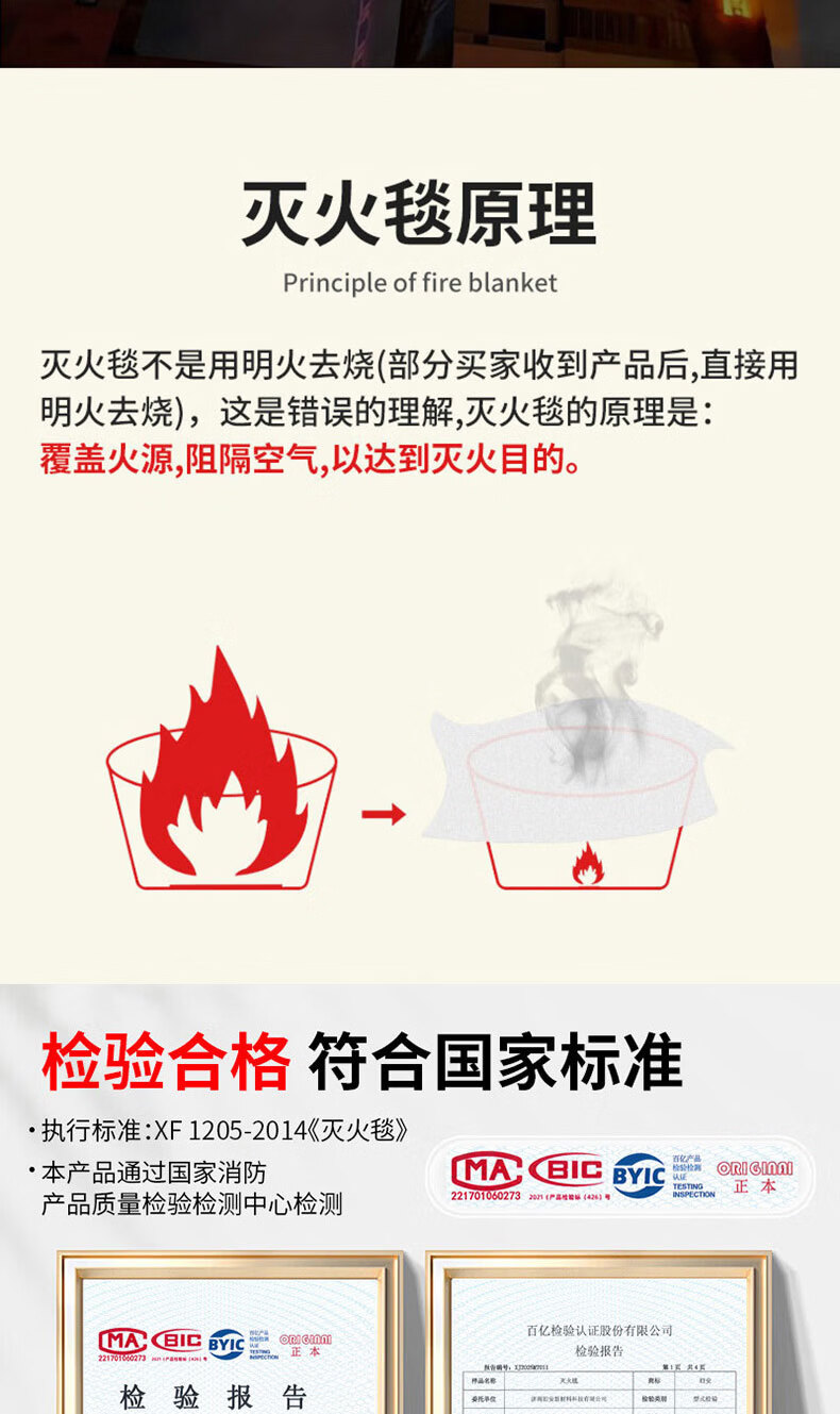 Tan'an Fire Blanket National Fire Certification Fire Blanket Household National Standard Fire Blanket Kitchen Fire Escape Blanket Fire Equipment 1.2M*1.8M Bag 1090g Fire Certification Product
